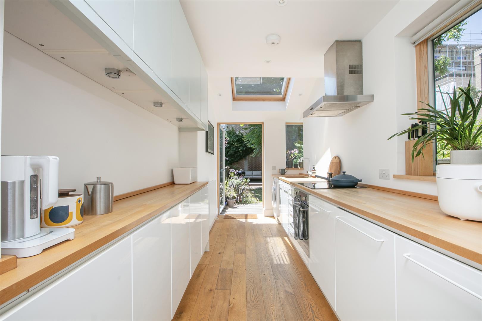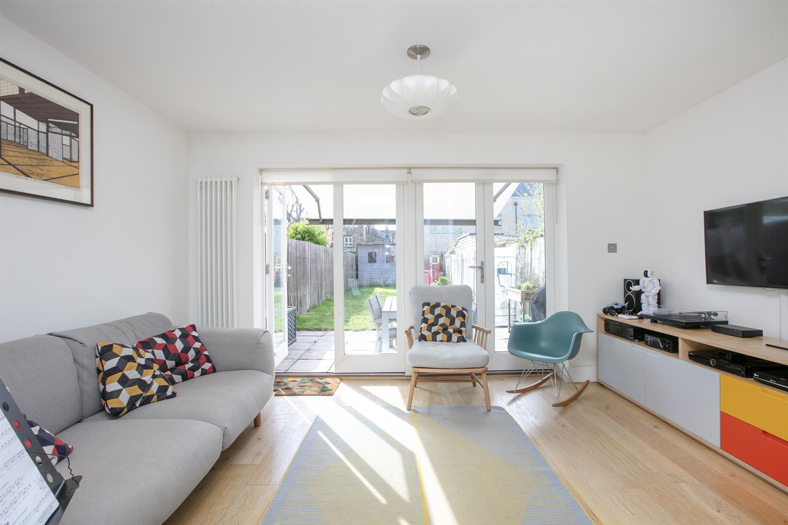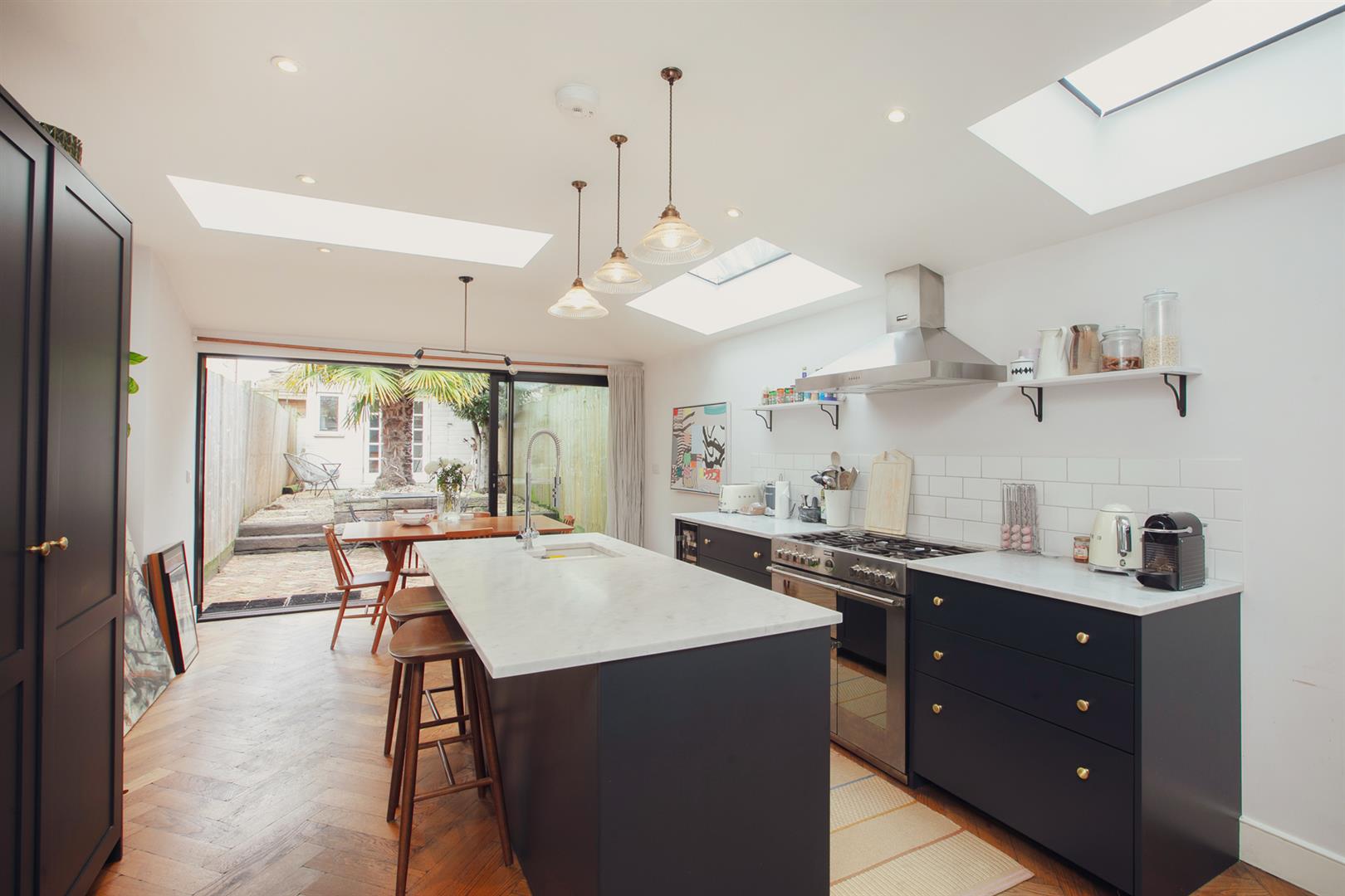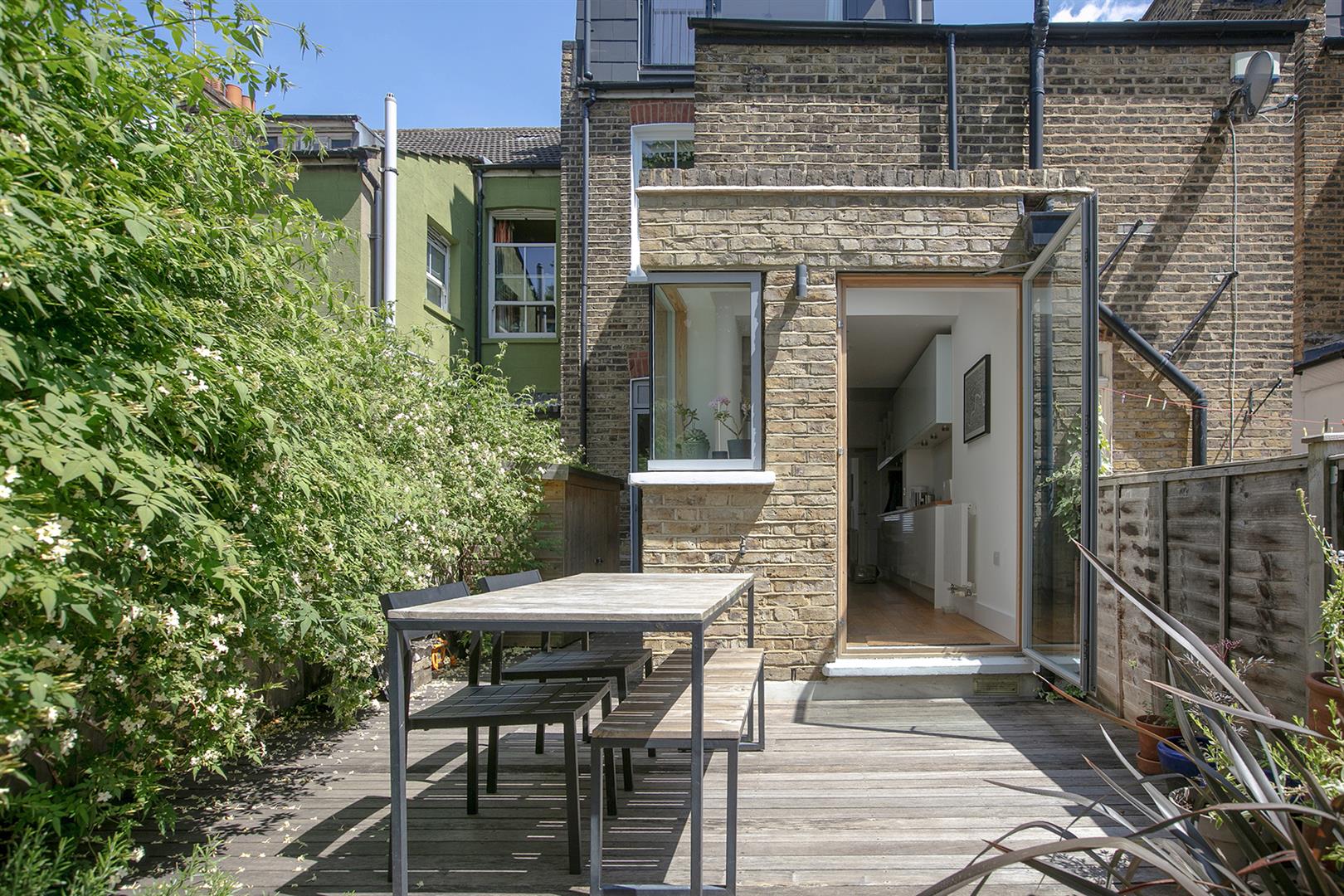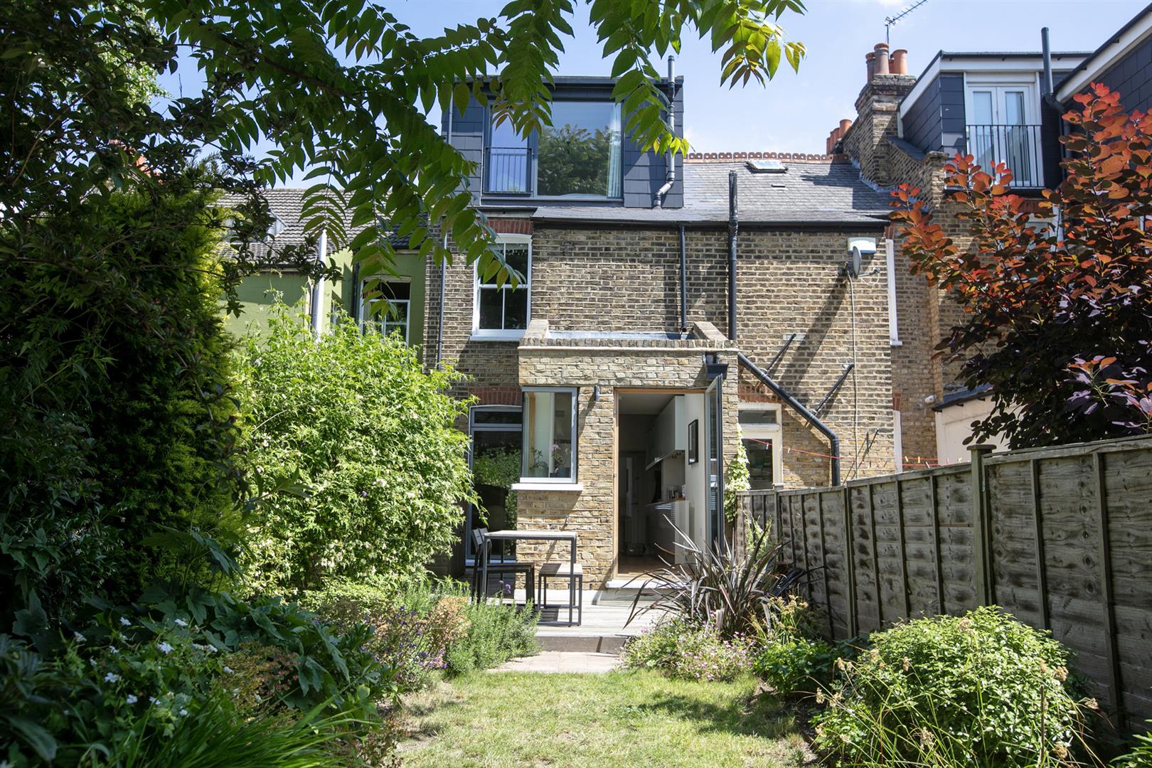 Step inside and you're greeted by a hallway with stunning stained glass, original floor tiles, and fancy old cornicing that instantly sets the tone. Just off the hall is a bright and welcoming living room, complete with a large bay window, with new double glazed timber-framed sash windows and an eye-catching fireplace that's full of vintage charm. The heart of the home is the open-plan kitchen and dining area. It's bright, sociable, and stylish - designed for real-life living. The kitchen has loads of storage, all the integrated appliances you need, and space to cook up a storm while still chatting with friends or keeping an eye on the kids. A glass door opens out onto a peaceful decked patio, ideal for lazy weekend breakfasts or evening drinks in the garden. Another door at the back connects you to the rest of the garden space, which feels like a green retreat right in the city. A striking bespoke contemporary corner-window supplies a further aspect to the garden - it's a real conversation piece. To the rear of the garden you find an additional patio space which ensures you can sit in sun or shade at any time of the day!