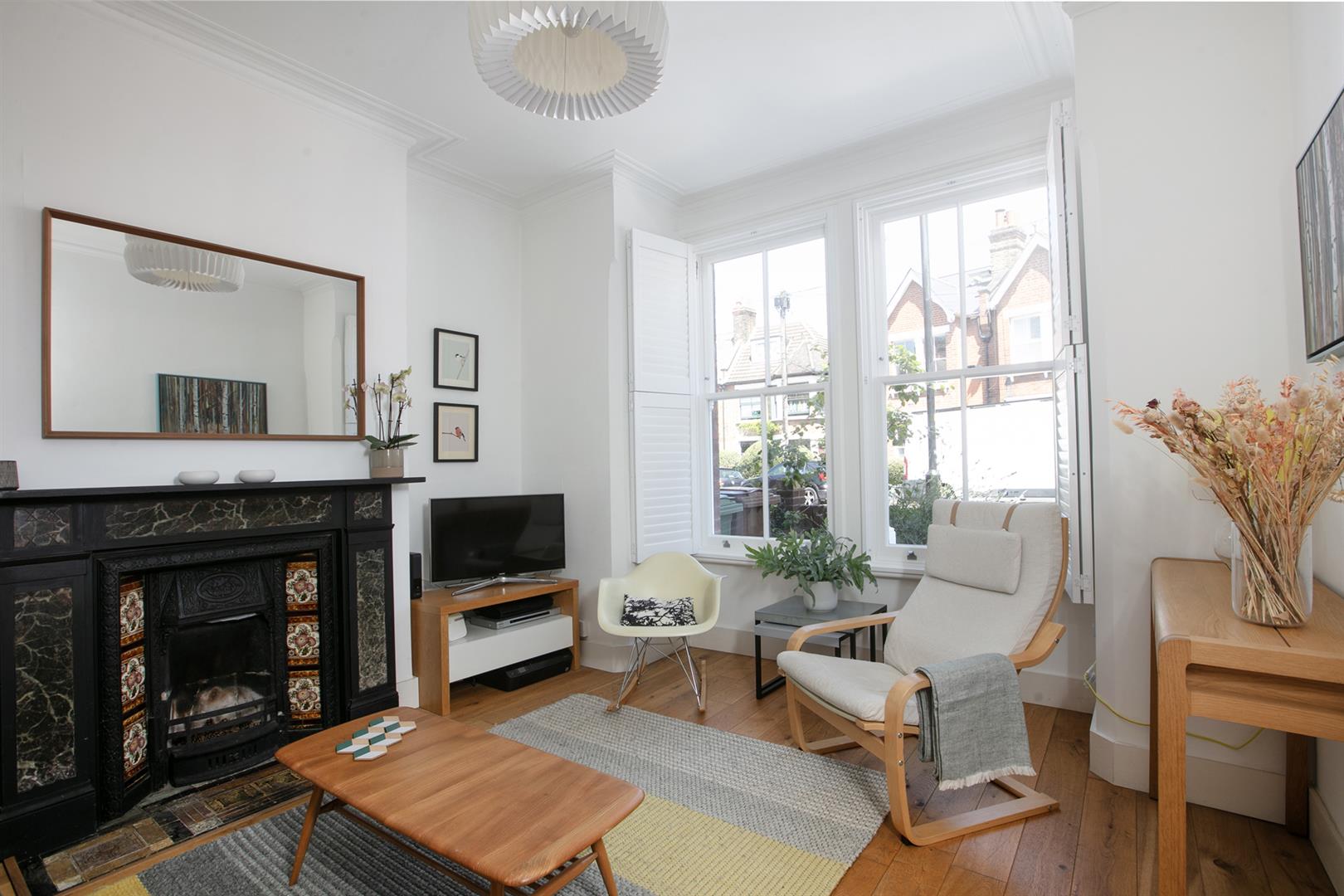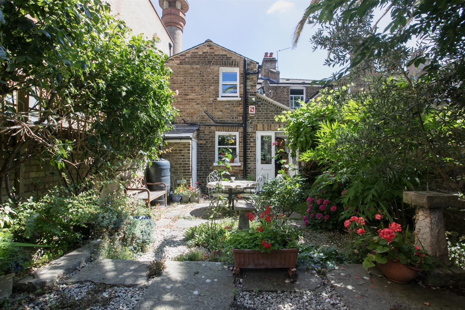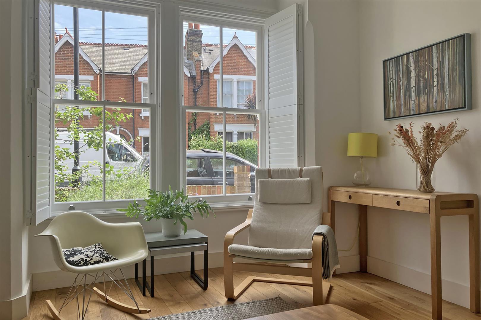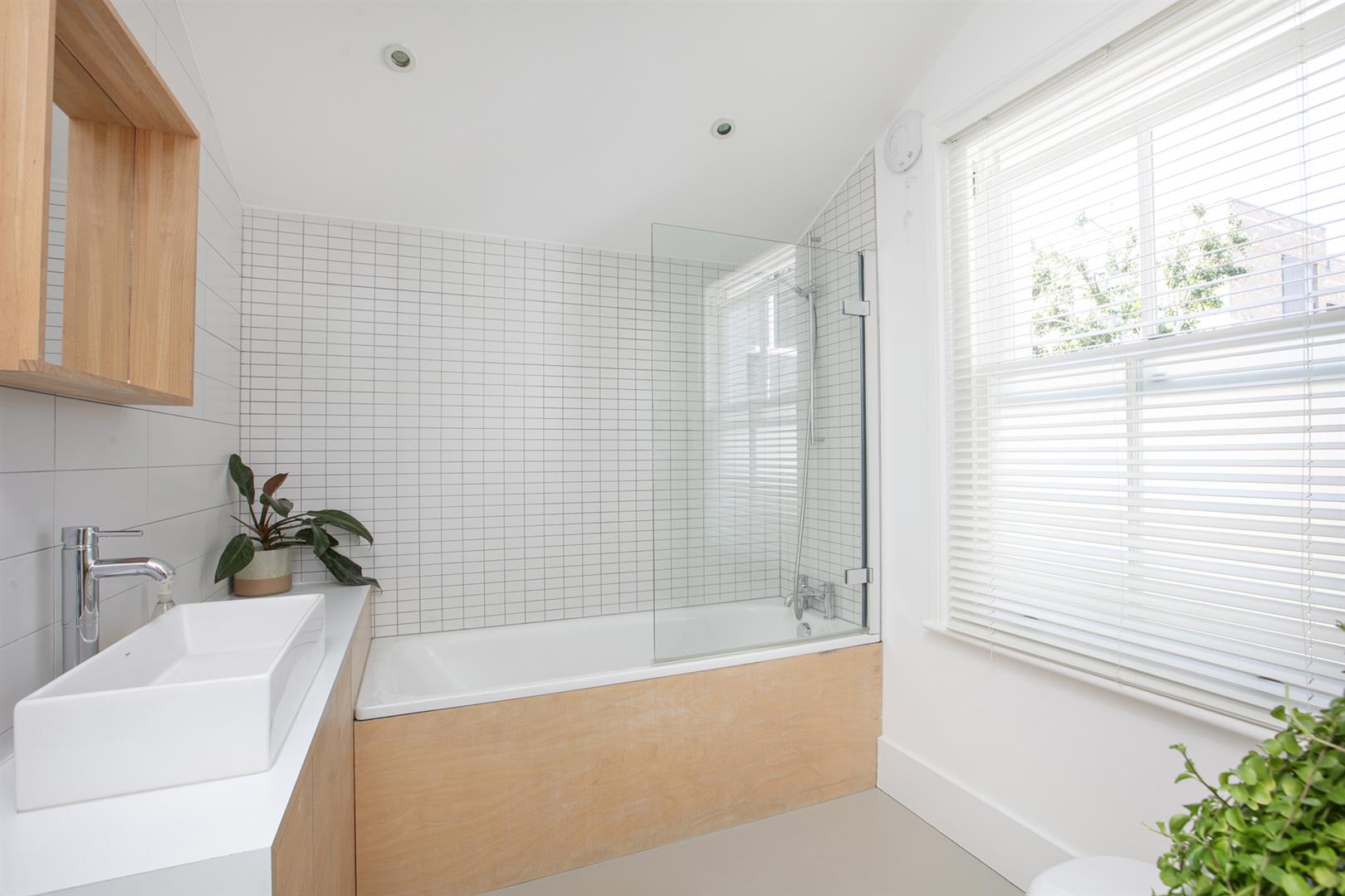 Upstairs on the first floor, you'll find two proper double bedrooms. The main bedroom at the front has big sash windows, built-in storage, and a pretty fireplace. The second bedroom at the back overlooks the garden and also has its own lovely fireplace and storage. The bathroom is just down a little step and has a great mix of vintage touches and modern comfort - including a wood-panelled bath and lovely tiling. It's also worth a mention that the property benefits from new double-glazed timber-framed sash windows throughout.