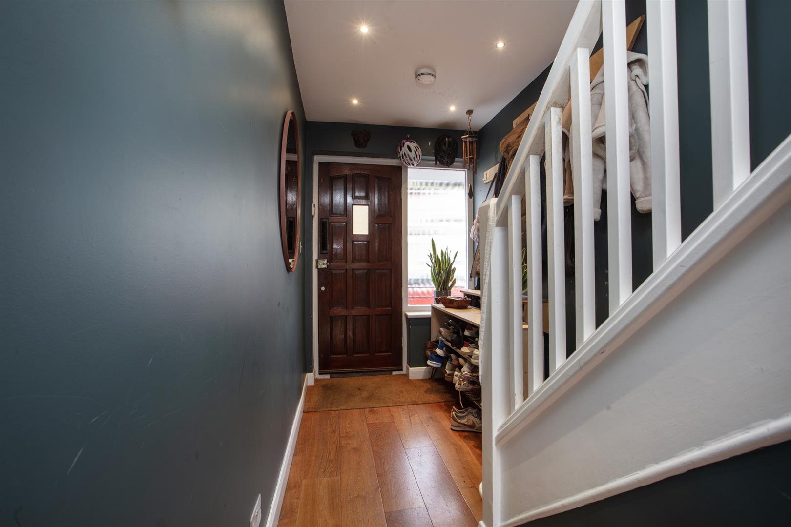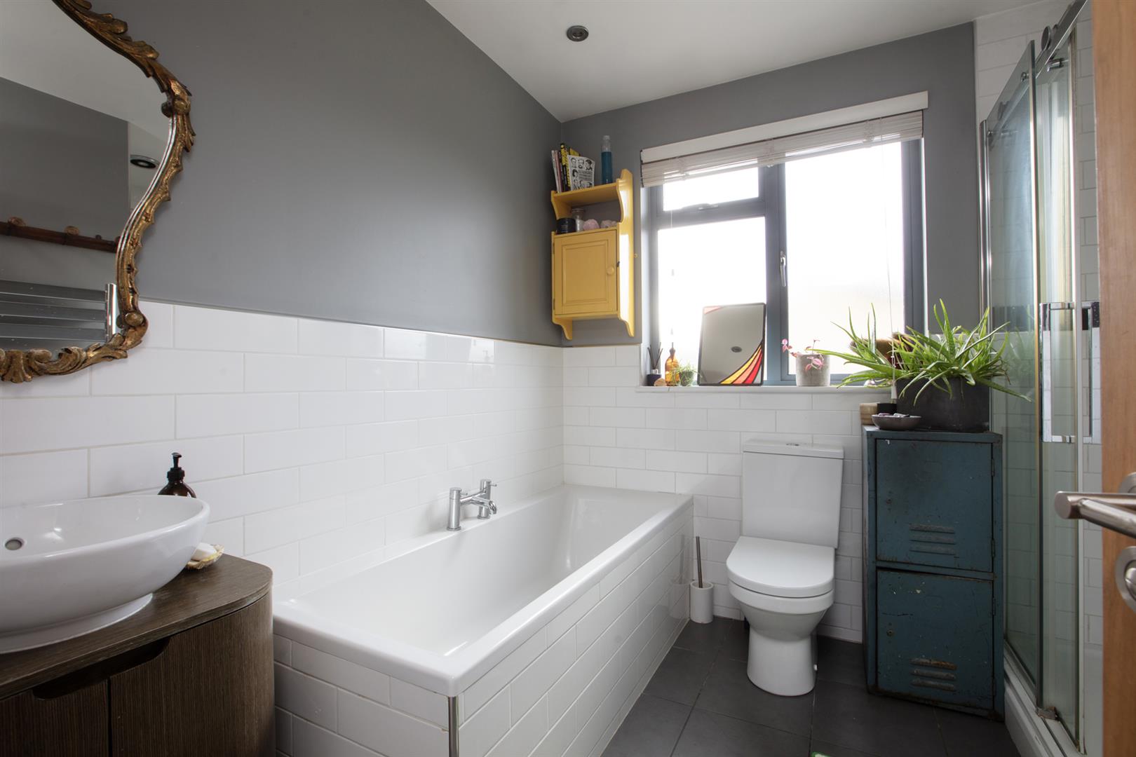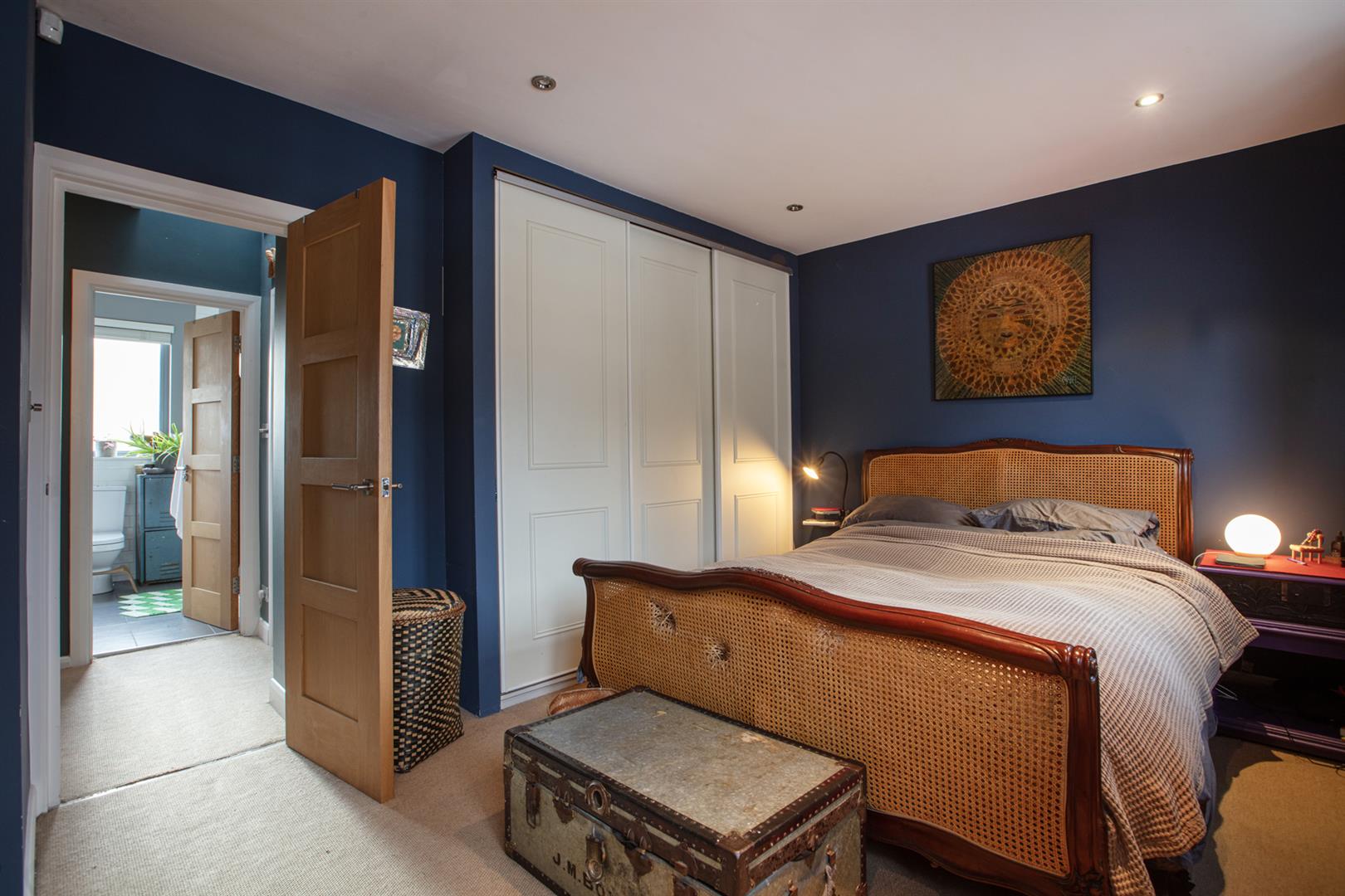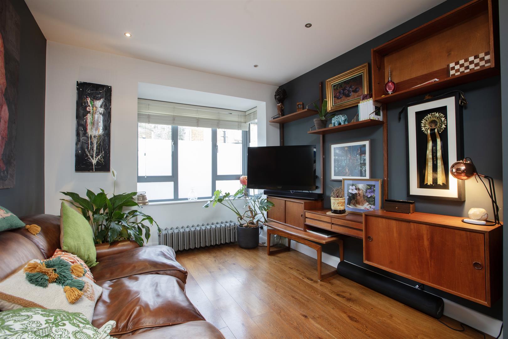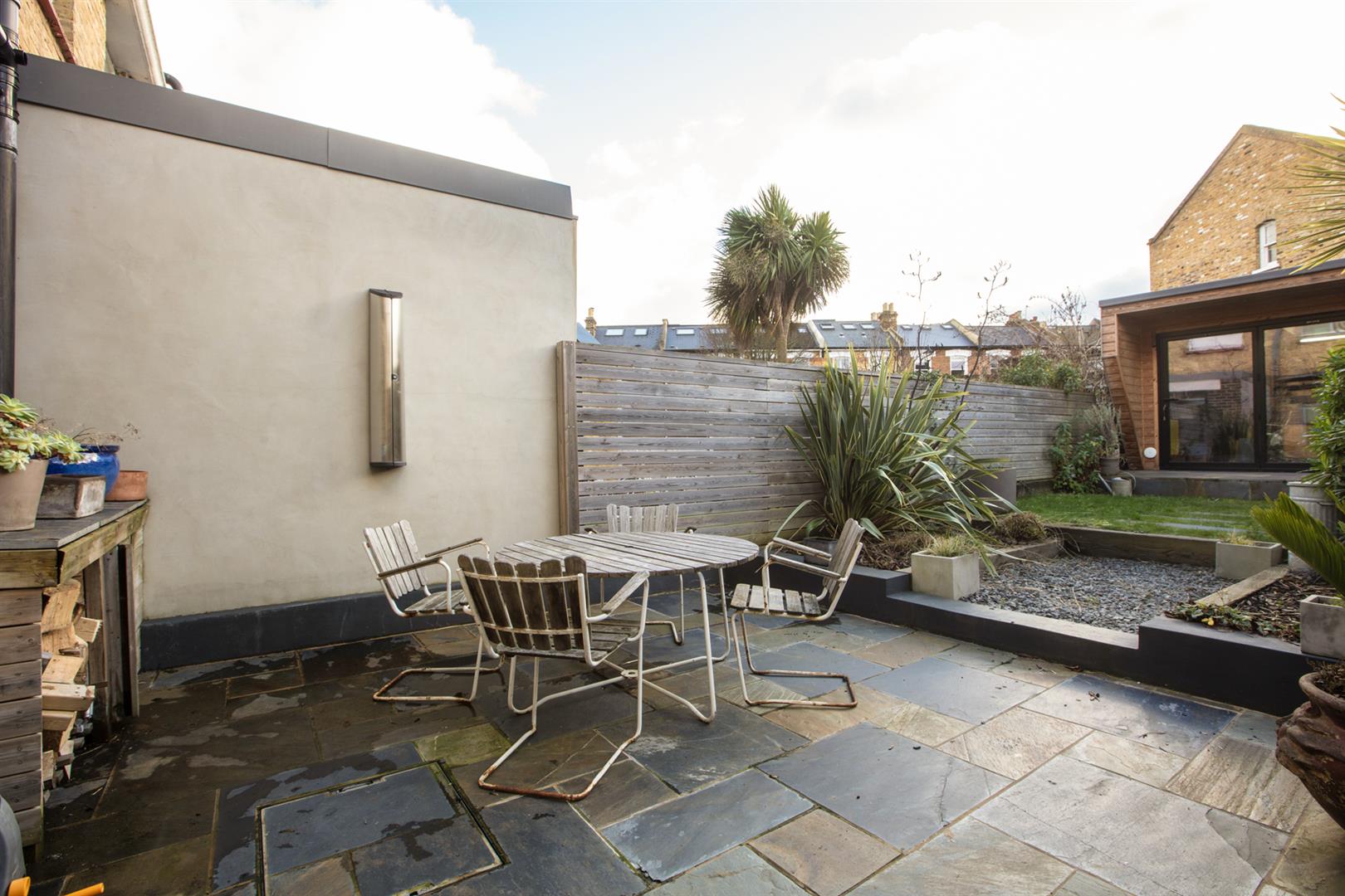 The smart exterior sits behind a mature tree and bears the name next to the contemporary door. Enter to the hall to find handsome wooden floors and neutral walls. The stairs is painted white and has a Sisal runner. Head right to meet the lounging area with square bay, cast iron school house radiators and a beautiful multi fuel stove. This runs uninterrupted to the dining area and kitchen which spans the full width of the house. Quartz counters, cream cabinets and a rather impressive five ring gas range will woo you at first glimpse. There's an integrated dishwasher and space left for an American fridge/freezer. The space wraps round to the rear of the hall offering complete ease of access throughout. Your garden is reached through cool aluminium French doors where you first meet a paved patio. A generous lawn then keeps you company up the garden path to that splendid garden studio which boasts rustic wooden walls and a large skylight and folding glass doors for tonnes of light. The garden soaks in abundant southerly light throughout the day. It's a little micro-climate where the flowers and wildlife thrive.