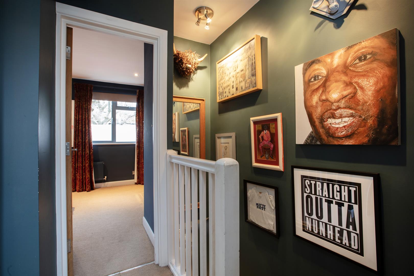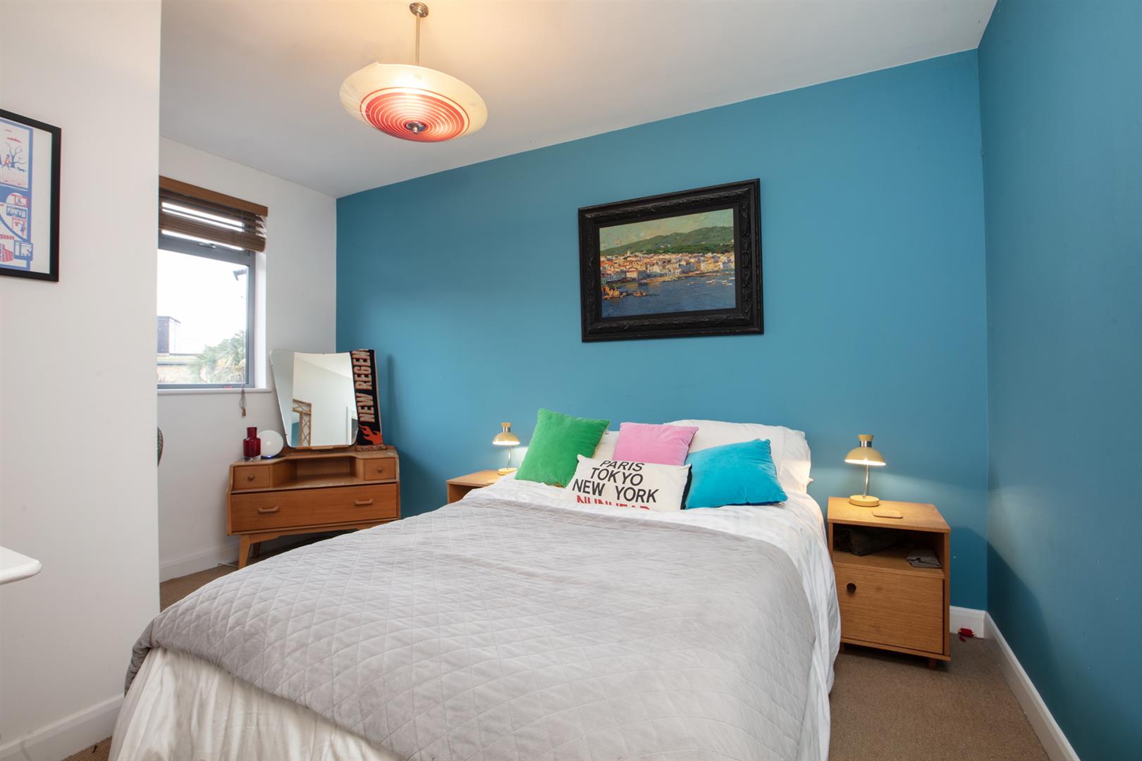 Heading upward from the hall you'll find your boastful master bedroom fronting the street through two windows. Deep sliding wardrobes recess on the rear wall. Your second bedroom enjoys a view over the garden - you really get to appreciate its length from here. Last but not least is an entirely desirable bathroom with double walk-in shower and drencher, extra deep, double ended bath, heated towel rail, circular wash hand basin and a most vibrant floral accent wall. A wall mounted ladder leads you upward from the landing to a large storage loft - great for keeping your beloved tat from sight.