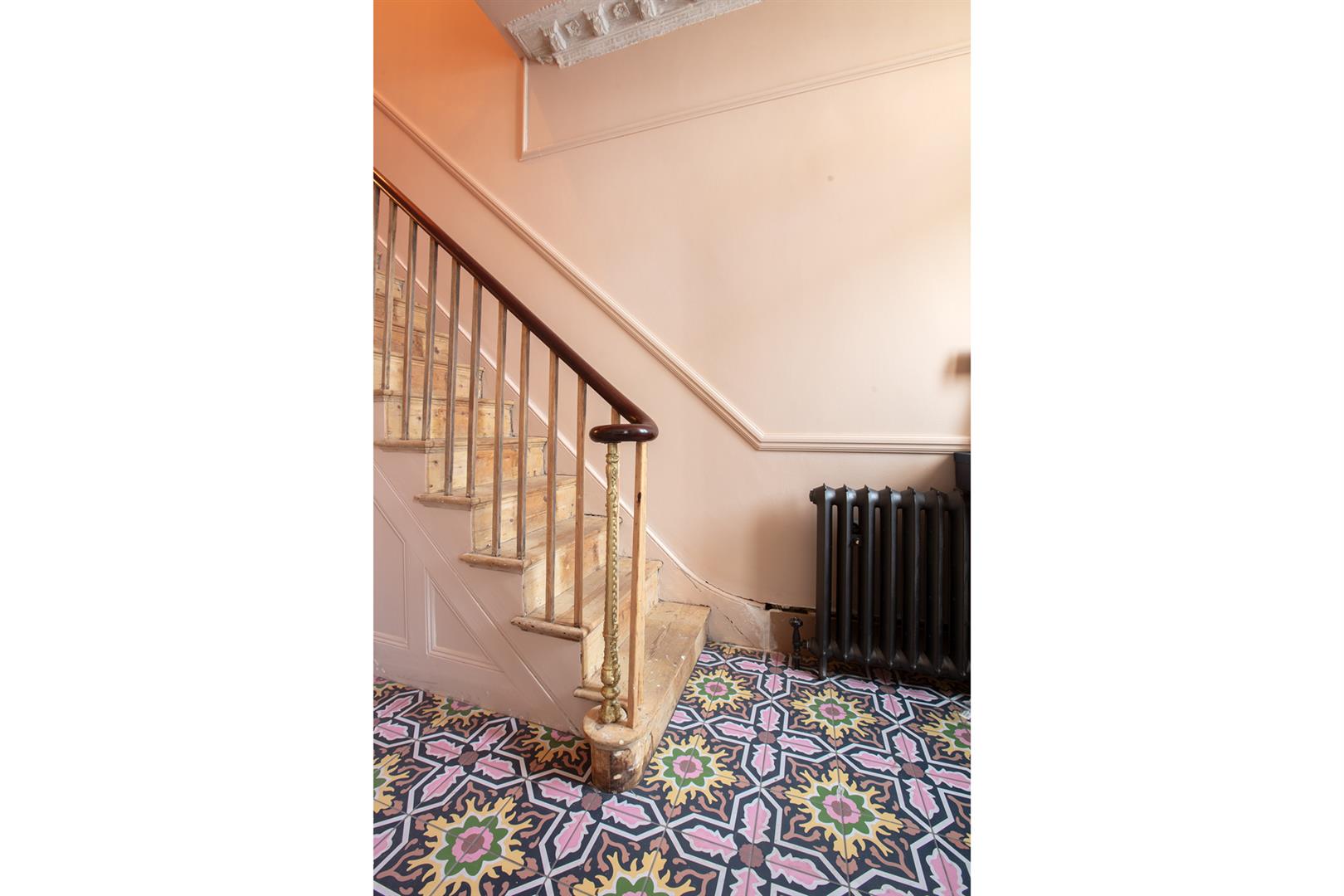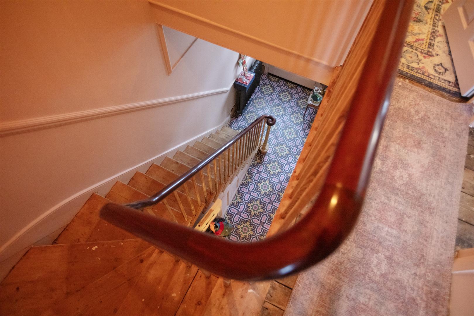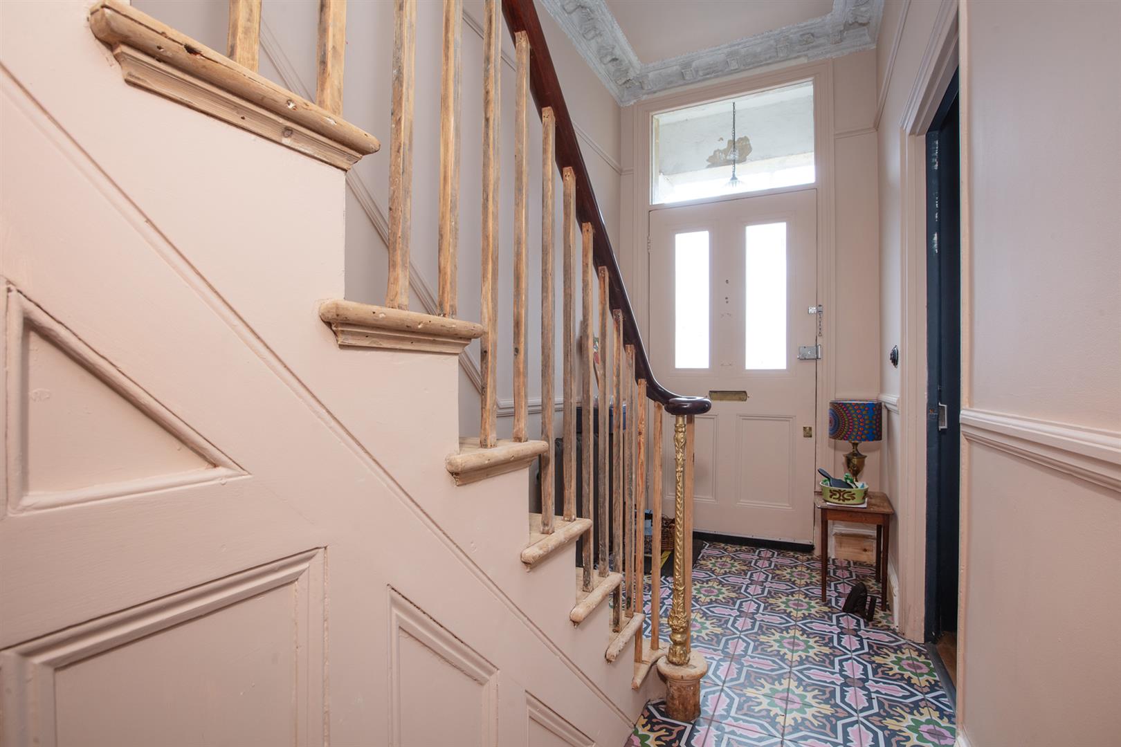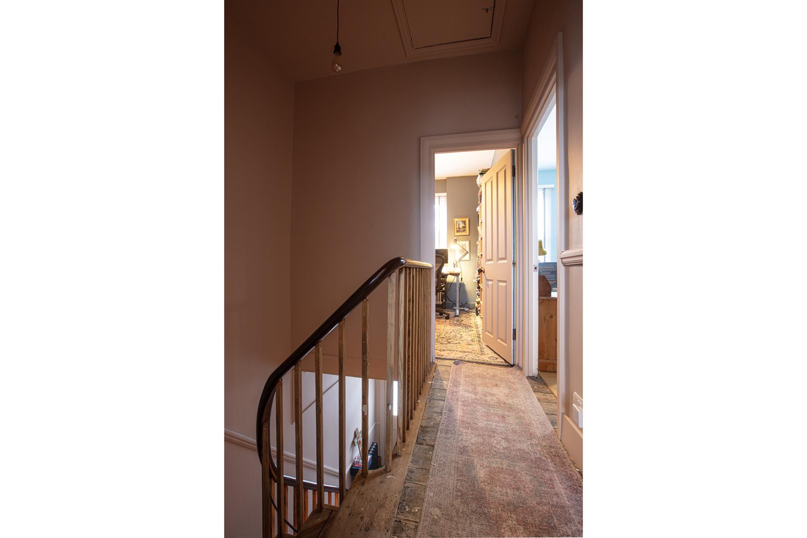 Further along the hall you meet a handy guest wc and access to the storage cellar. The kitchen and dining space runs confidently to include an ample cooking and food-prep area as well as family dining space. This precedes your garden access point. Outside you find a paved bright garden suitable for summer gatherings, veg-growing and sunbathing. Heading upward you'll notice the beautifully maintained original staircase and seductively curling handrail. The upper landing supplies plenty of hanging space for your signature pieces and offers access to all four bedrooms. The master room fronts the street enjoying two double glazed windows and a pucker original feature fireplace. The second and third bedroom each face rear over the garden with dulcet paint shades and styling. A fourth room shares the front spot- great as a work-from-home space. Last but not least comes the family bathroom which boasts Farrow and Ball Babouche and wall tiles to match and a contemporary white suite.