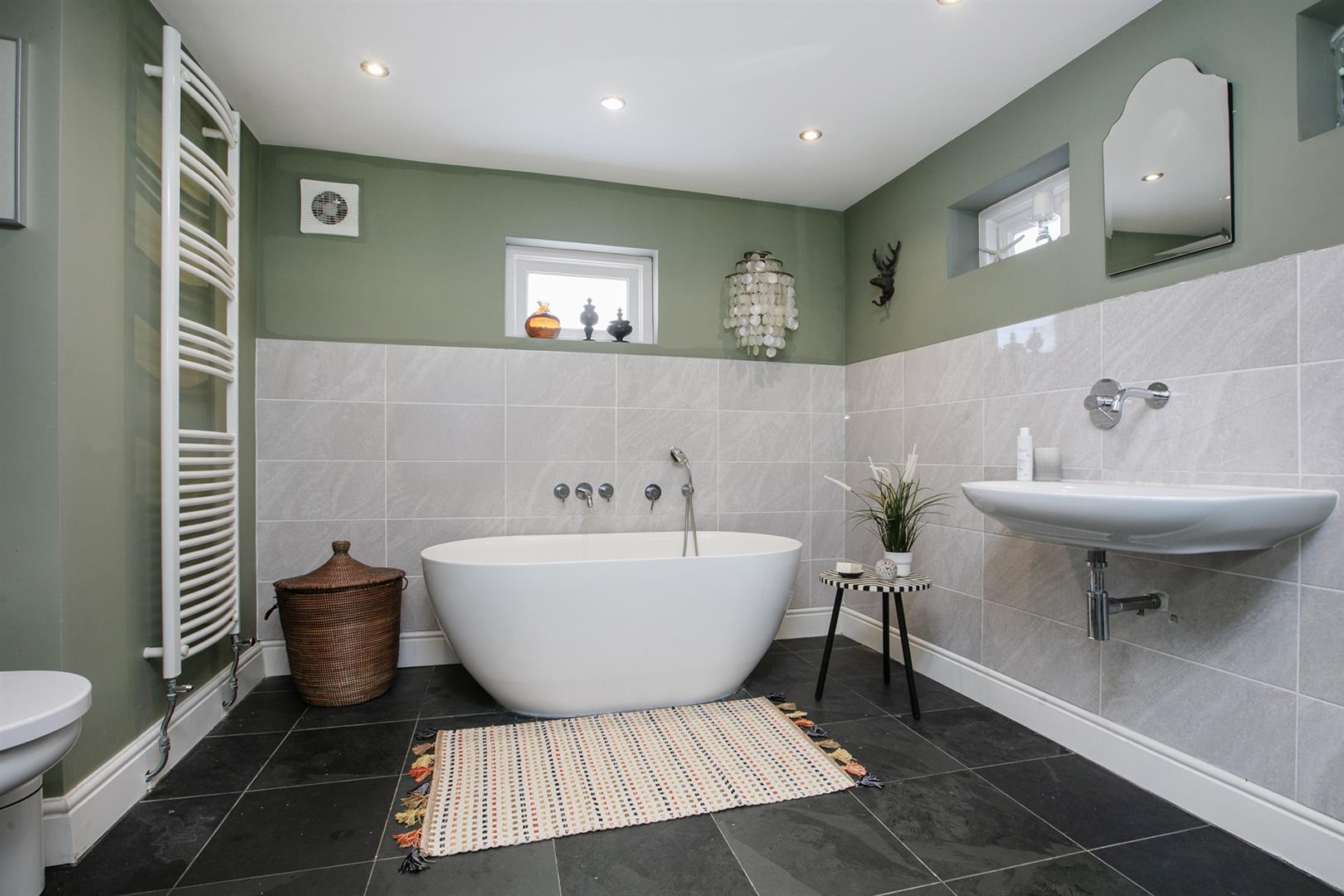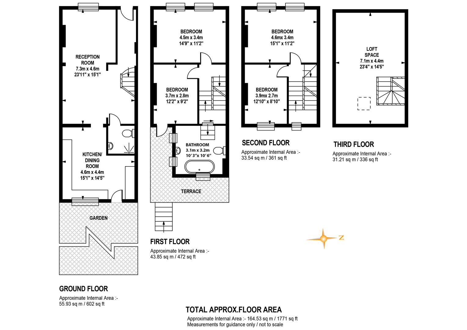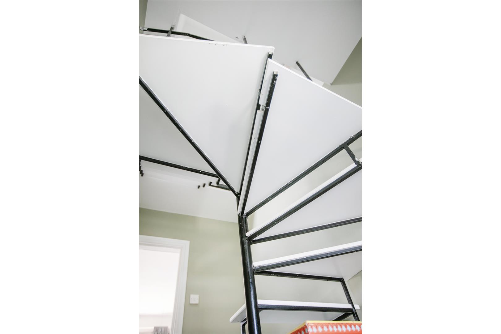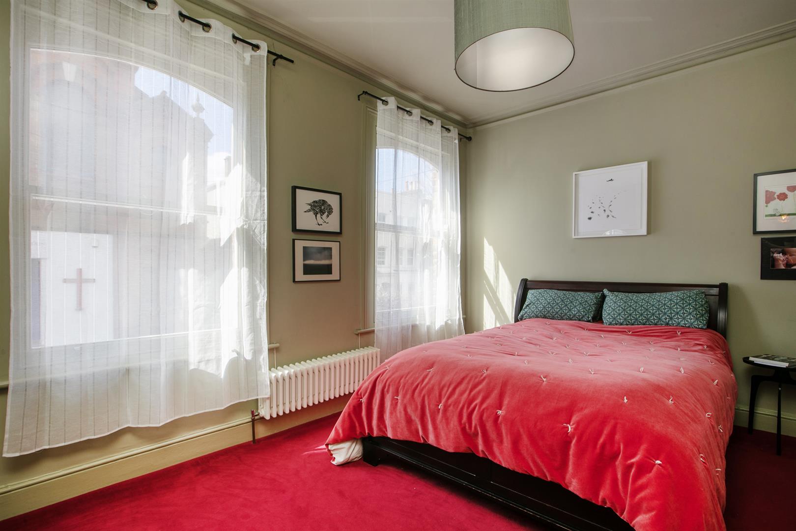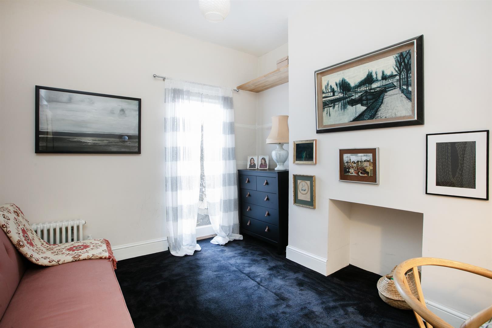 Back inside, you'll find a well-stocked wet room tucked under the stairs. It's clad in sublime Fired Earth tiling and has a handy wc too. The partially tanked storage cellar is accessed from a hatch, also under the stairs. It hides a million sins! Heading upward to the first return you meet a beautifully augmented, dual aspect family bathroom where inset wooden steps rise gracefully to an extra deep free standing bath. It's the perfect pamper parlour! The first floor landing supplies more dulcet Farrow and Ball wall tones set beautifully against those jet black painted timber floors. The stairwell continues its charmful ascent. A front-facing master bedroom has two gently arched sash windows and more divine views of the pretty period building opposite. Plush red carpeting exudes luxury and panache and there's some simple original cornicing overhead. Bedroom two is a neat double which is currently arranged as a large study. It's got more deep pile carpeting in a smoody quid-ink shade. Access is also offered from here to the terrace which in-turn wraps downward to the garden. Heading upward again you'll be struck by an emerging double-height landing which is lit beautifully by a tall picture window. Bedrooms three and four follow the same appointment as the first floor. Both are bright, airy and pleasant. Funky curving stairs, with open risers, ascends politely from the upper landing to a large bright loft room with eave storage. It offers a handy hideaway for guests, sullen teenagers or penning your tell-all memoirs.