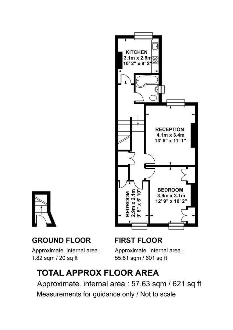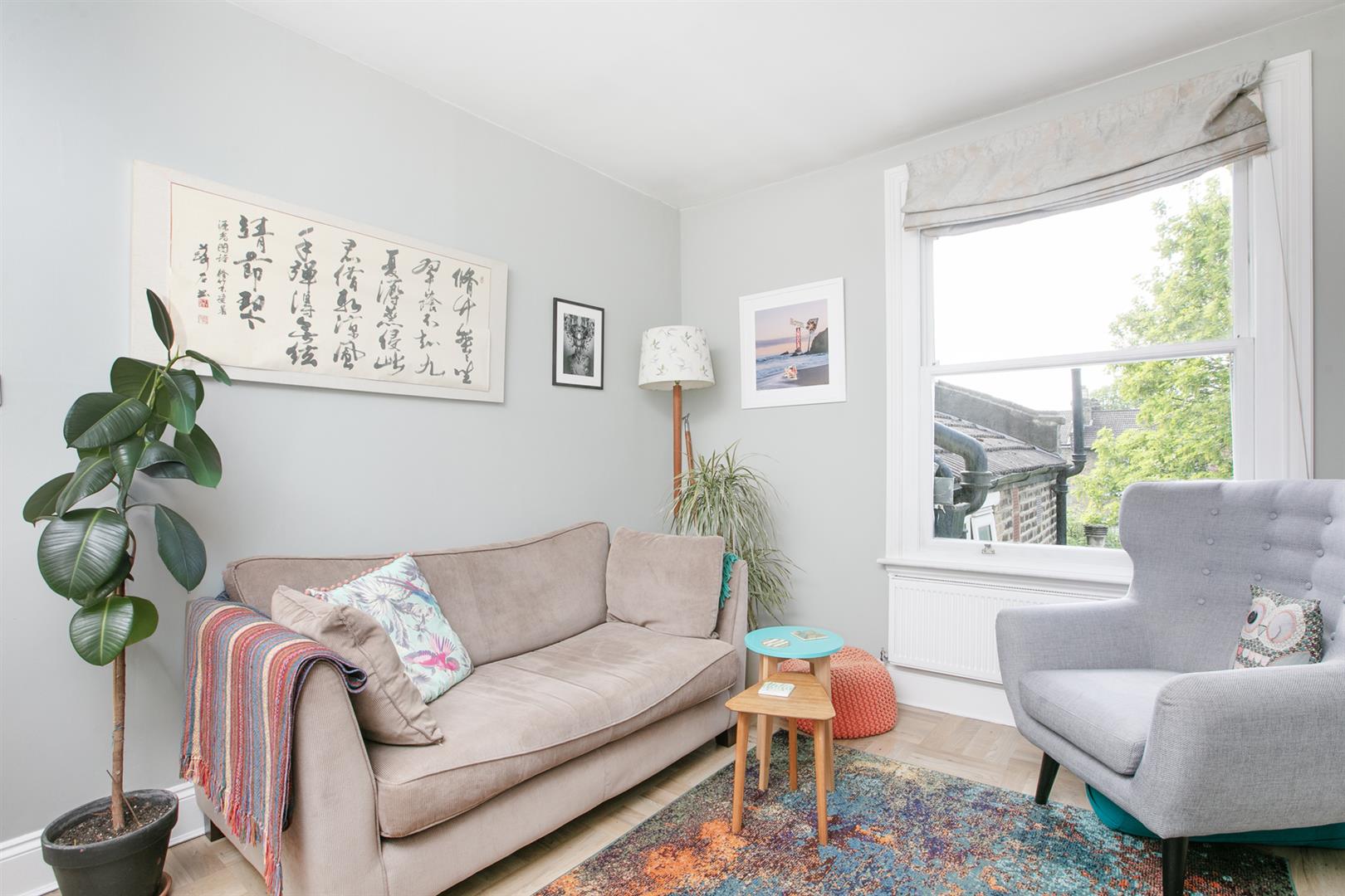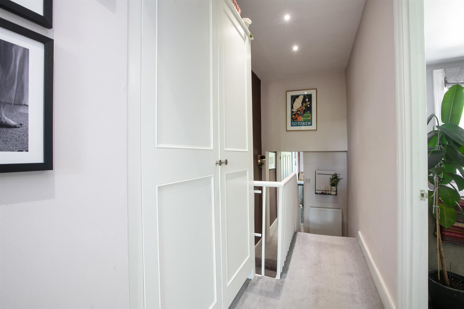 Next to this is a fab modern bathroom with tear drop bath, funky square loo and matching wash hand basin. There's recessed shelving and a heated towel rail too. A front aspect master bedroom boasts generous twin bespoke storage units that run full height. A large double glazed sash window supplies a lovely leafy streetscape. The second bedroom shares this aspect and has recessed storage. It's perfect as a home office space, or occasional guest room. Last but certainly not least comes the comfortable, bright reception with a tranquil rear vista, low level storage, shelving and a pretty feature fireplace.