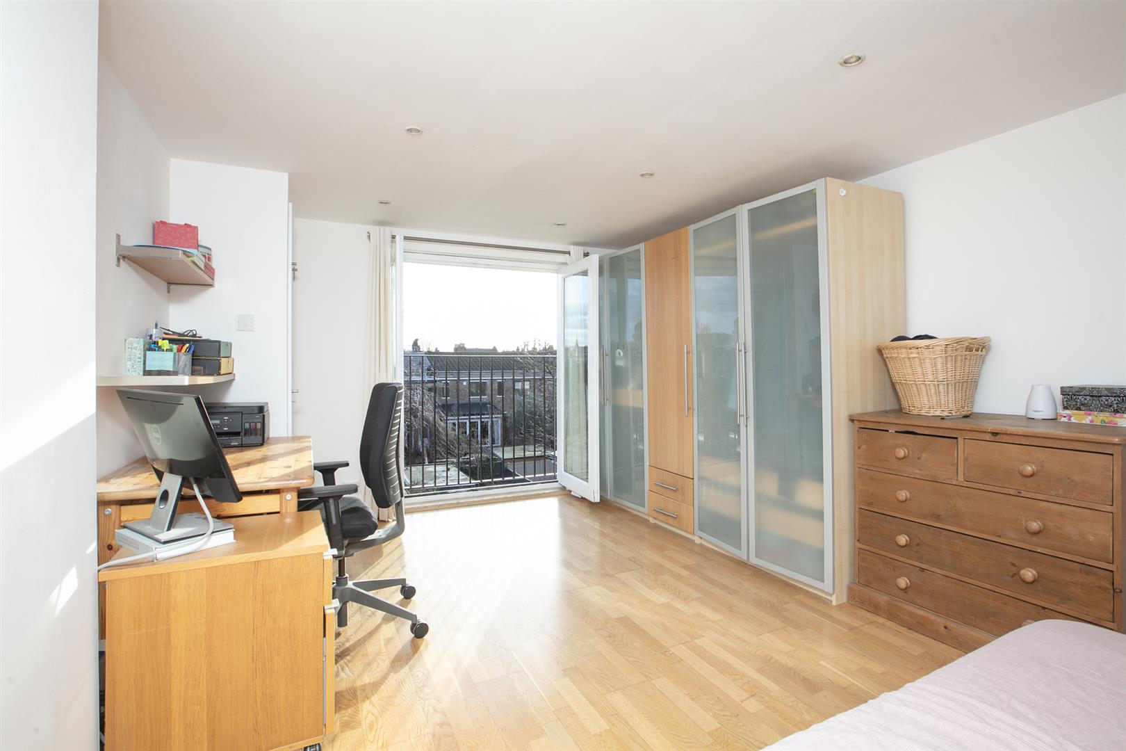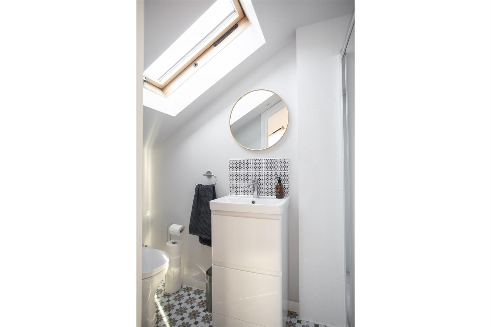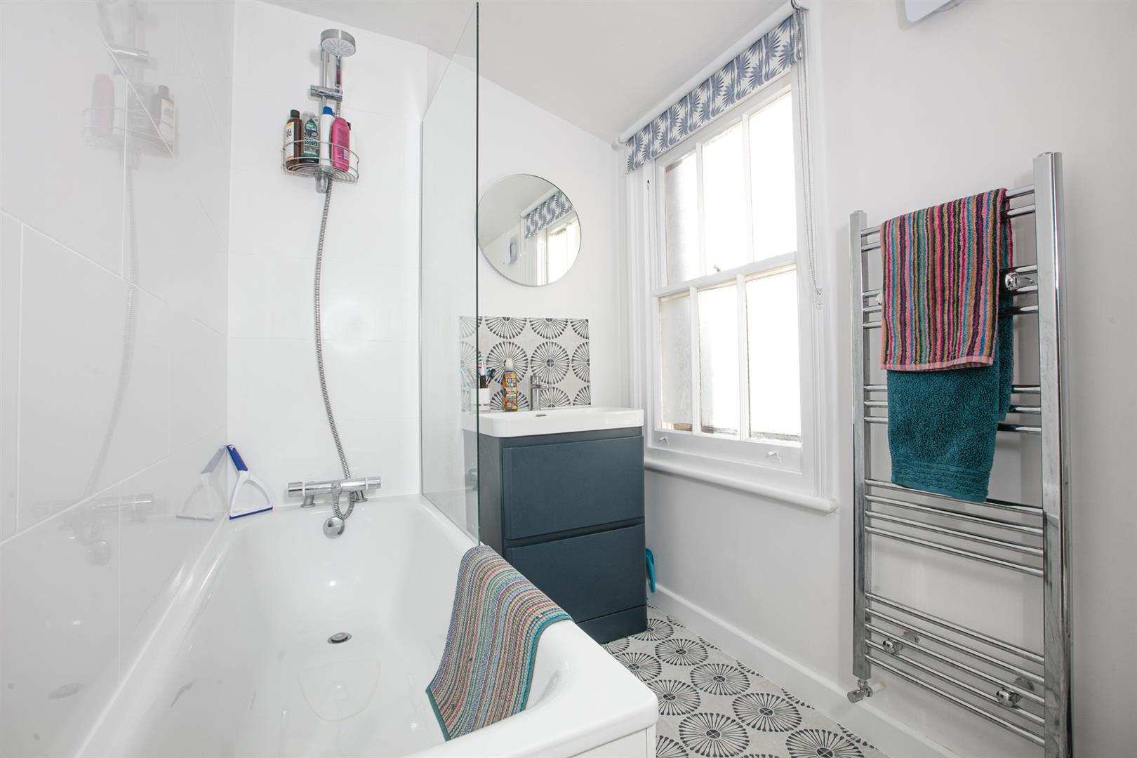 Back inside, head upward to the wide and generous rear return. Here you meet a proper double bedroom with rear-facing garden views. Next to this is a family bathroom with pretty tiling, white suite, heated towel rail and side aspect sash window. There's ample room on the landing for storage and also tonnes of hanging space for your signature art pieces. The first floor hosts a full-width double bedroom with twin sash windows, period feature fireplace and simple coving. Bedroom four, a fine bright double, has a feature fireplace and fitted shelving. Upward bound once again you find your masterfully converted loft which has a huge and wonderfully sunny double bedroom with recessed storage and a Juliette balcony with far-reaching rooftop views of your new neighbourhood. An adjoining en suite shower room (with Mira thermostatic dual rainfall and jet shower outlets) and large eaves storage cupboard completes the tour nicely. When converting the loft, the current owners obtained planning permission to increase the height of the house by 5 brick courses. The result is a master suite with significantly higher ceiling height than the average loft conversion.