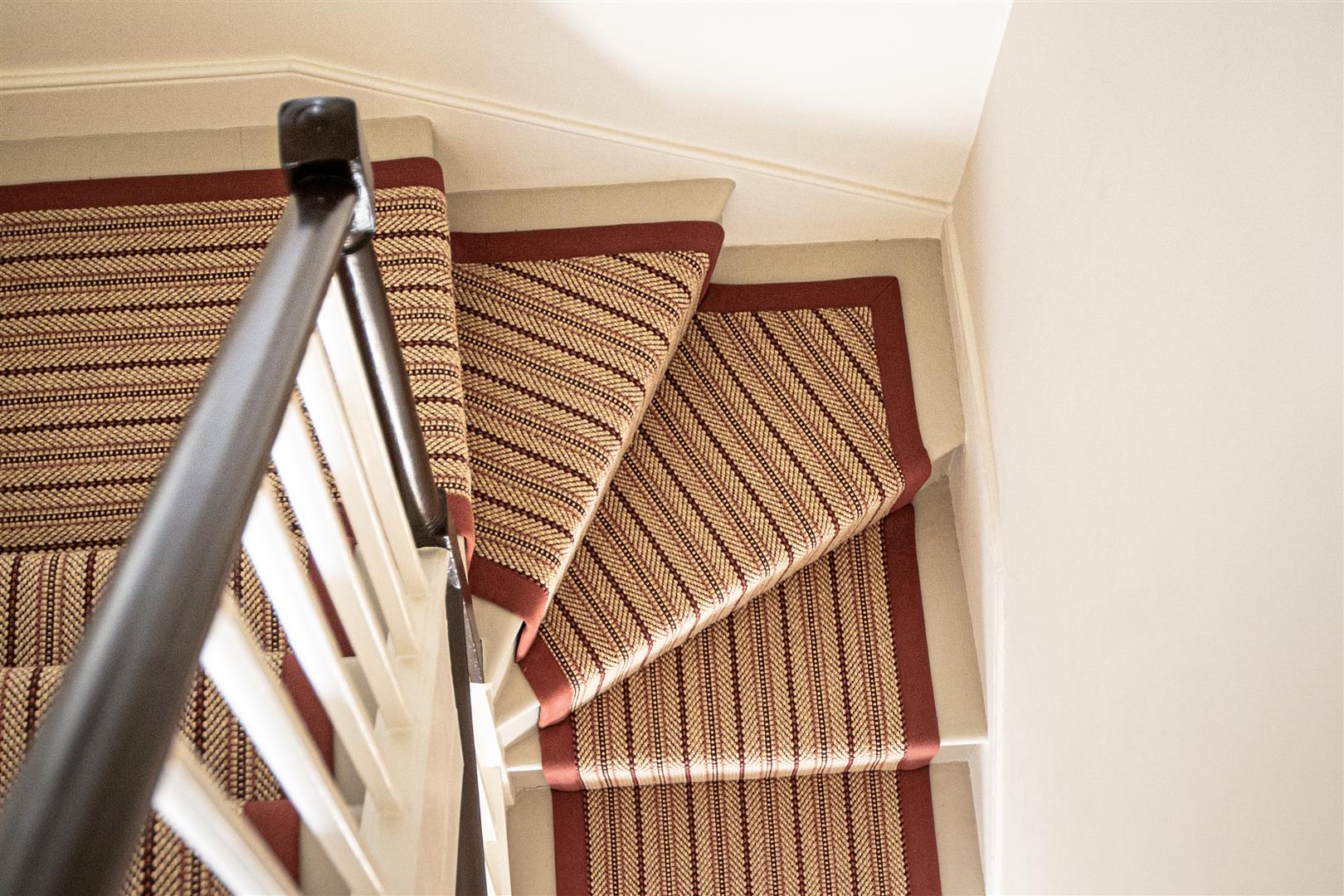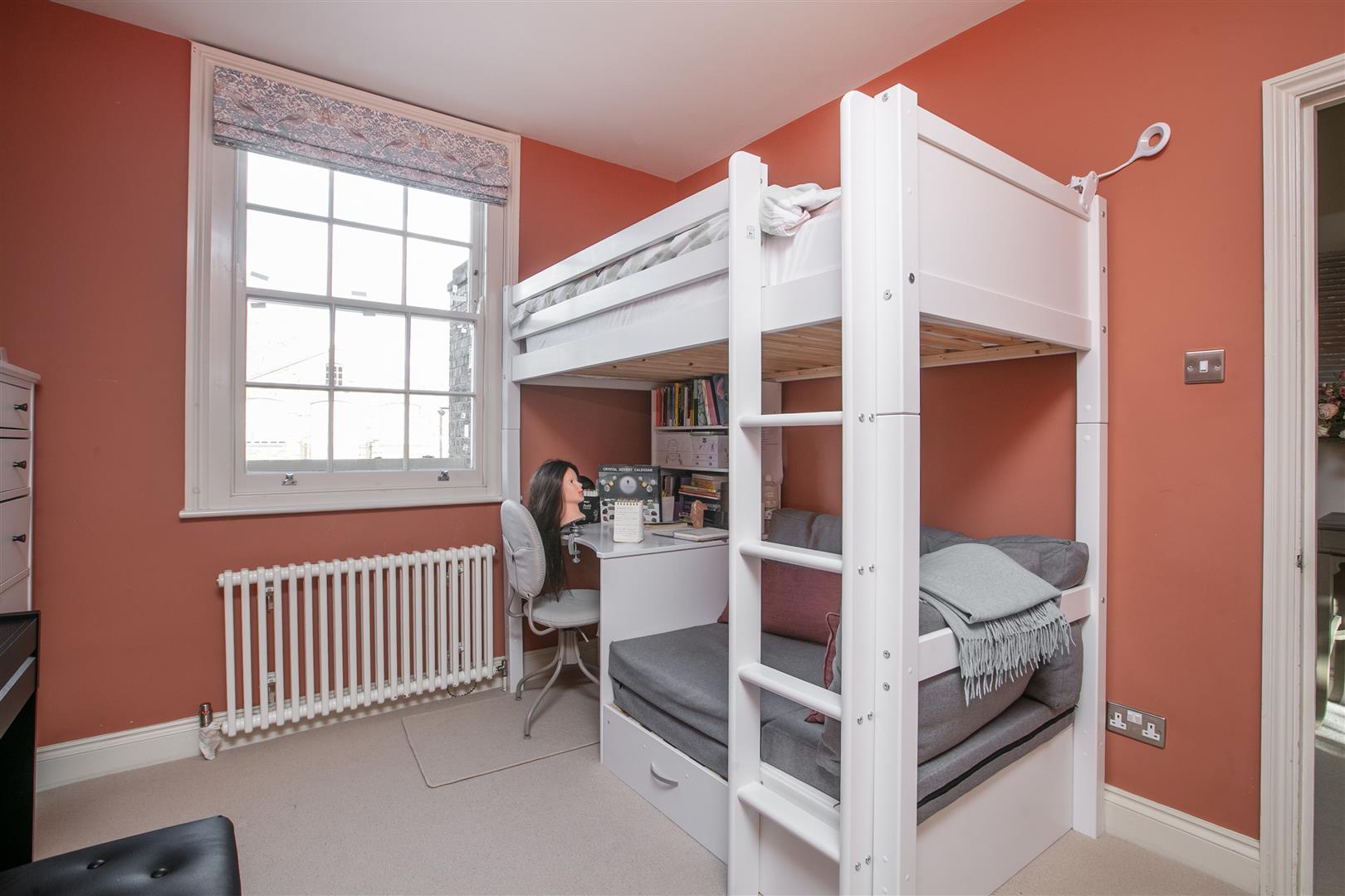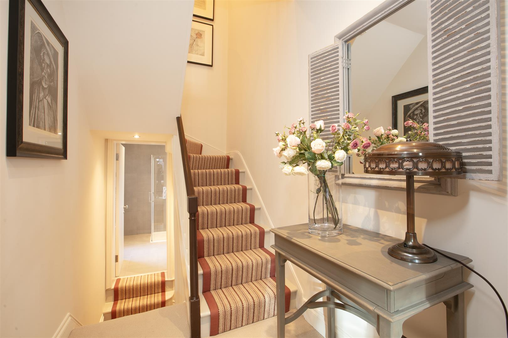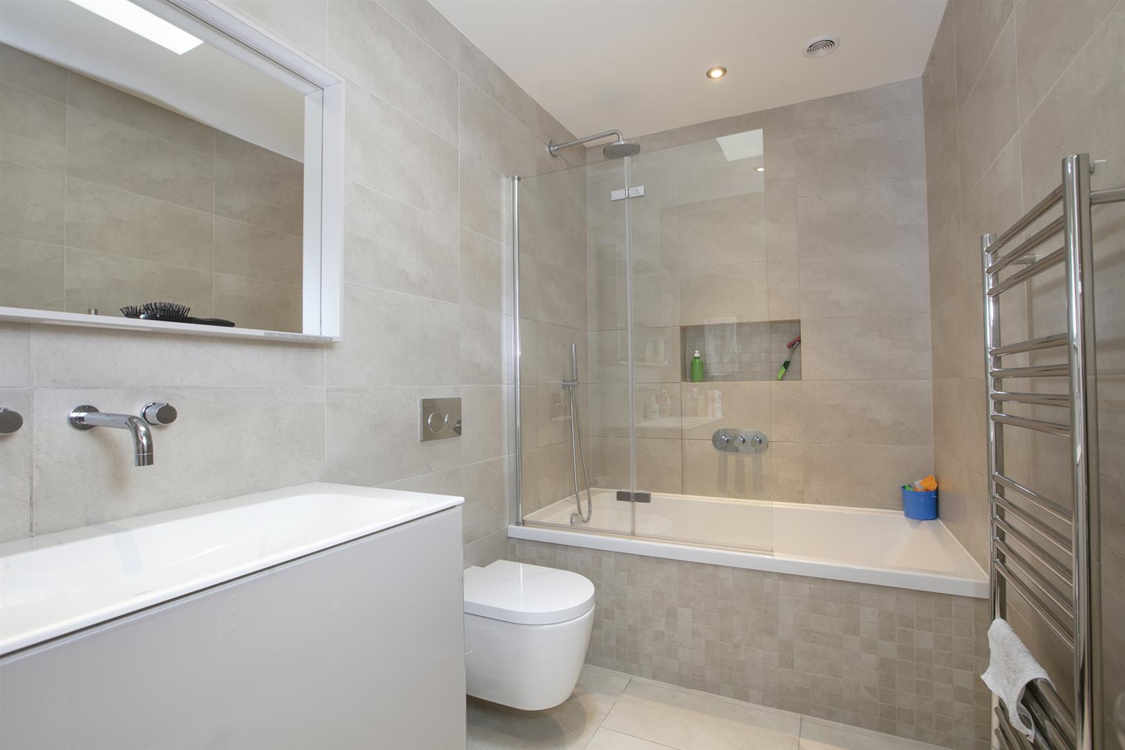 A door off the entrance hall opens to a white painted staircase with a stripy woollen runner. There's a fully tiled contemporary shower room on the return with a white suite and large walk-in shower. The first floor hosts two wonderful bedrooms. The large front facing carpeted double has fitted storage and plenty of space to add a chill-out or a work corner. To the rear is another double with a peaceful aspect and some fab terracotta-tone walls. Upward again you meet a similarly impressive front-facing double with bespoke storage. A second family bathroom sits next door with a fourth and final double bedroom completing the tour.
