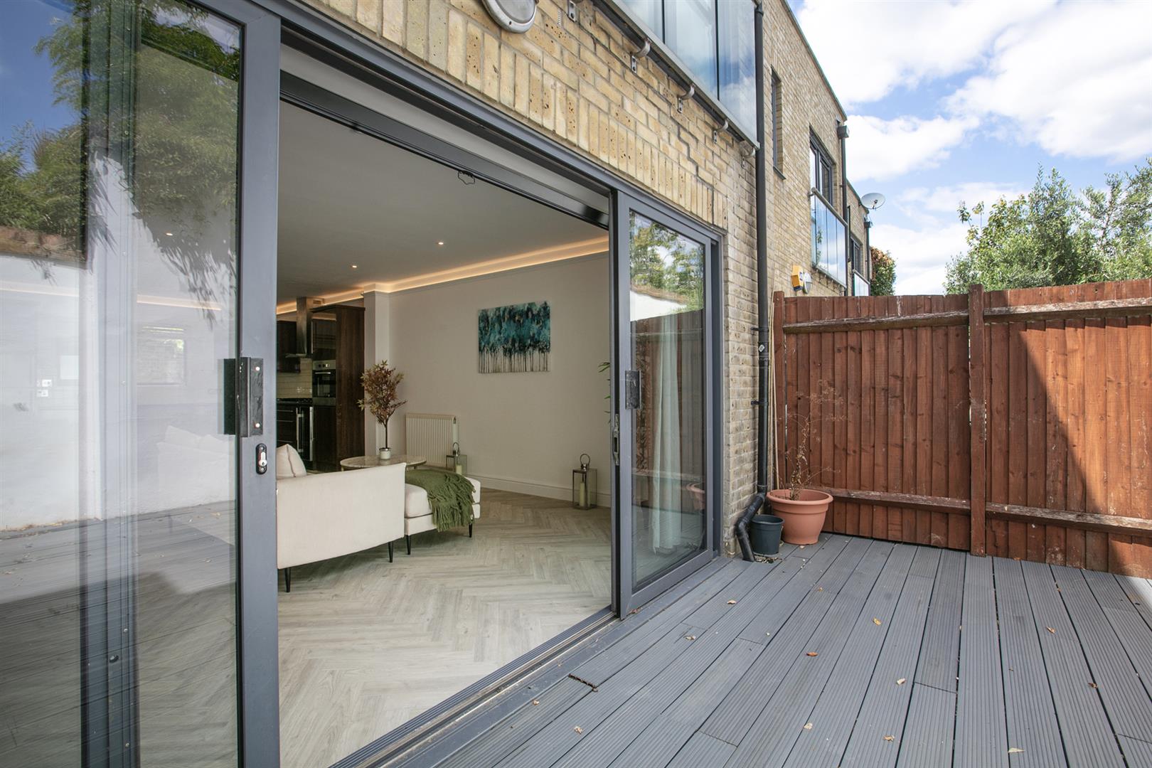 Enter the development off Oglander Road, to the side of a beautifully converted curved period pub. The house is accessed along a long pathway with the architectural uniformity of the collective facade creating a wonderful first impression. A bright inner hall supplies a handy guest wc. Dead ahead is that fab open plan living area which includes overtly generous living, dining and entertaining space as well as recessed storage. The kitchen adjoins with a front aspect and counter space on three walls. Glass doors open to the rear patio garden for some peaceful r&r opportunities. Heading upward you find a bright and airy landing with overhead skylight. There's a dishy double bedroom facing over the garden through wide French doors that open to a Juliette balcony. A second bedroom shares this aspect. The master bedroom fronts the house with an adjoining en suite shower room and that lovely contemporary window. A well appointed bathroom completes the tour.