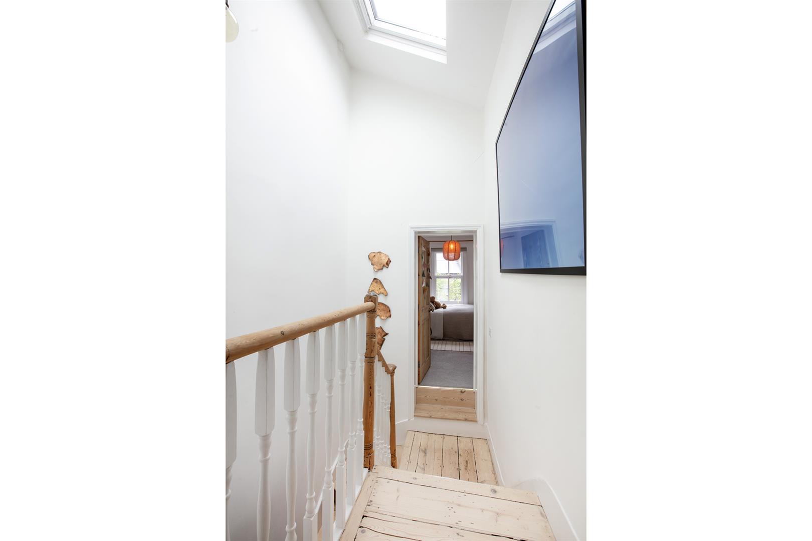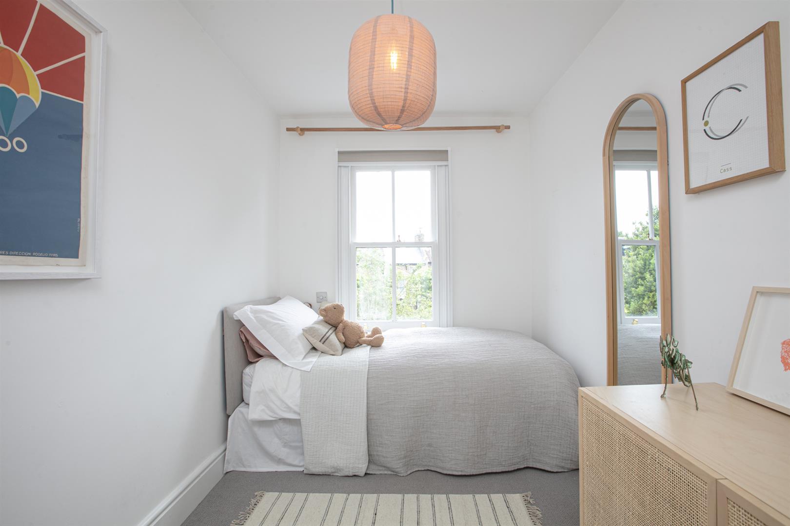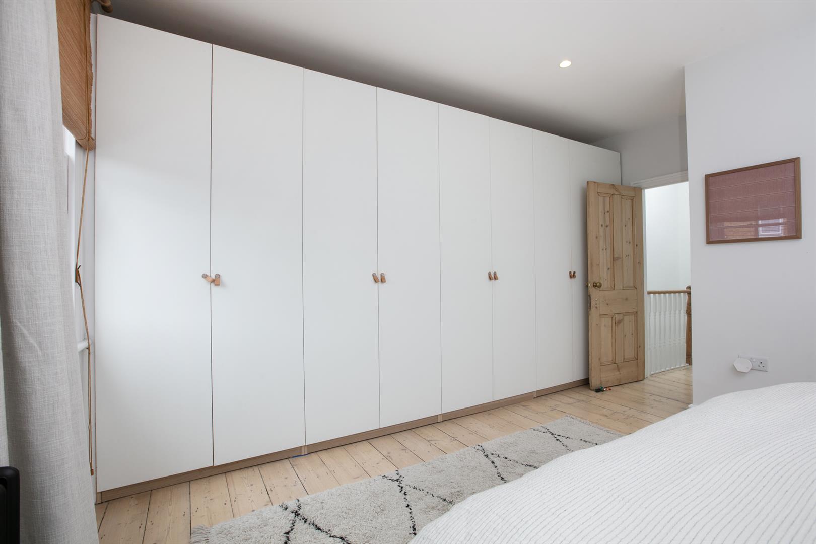 Back inside, head upward to the first floor via the original staircase. You'll note beautifully stained treads and risers and a clever glass siding that allows light spill downward from the entrance hall. The upper return hosts bedroom three - a sweet rear-facing carpeted room with lofty garden views. Bedroom four steals the show with two front-aspect double glazed sash windows and a generous wall of bespoke storage. A striking en suite adjoins donning a walk-in shower, contemporary freestanding bath and a thick-cut marble counter hosting twin circular wash hand basins.