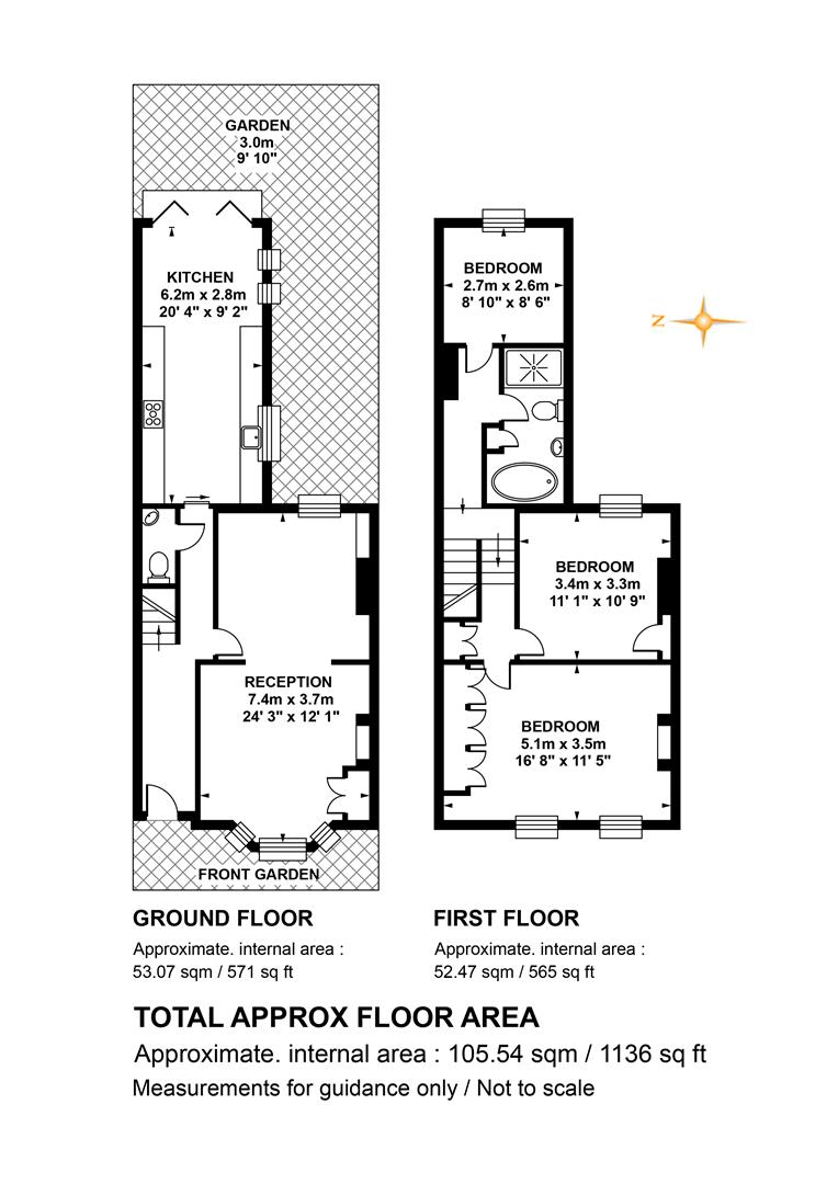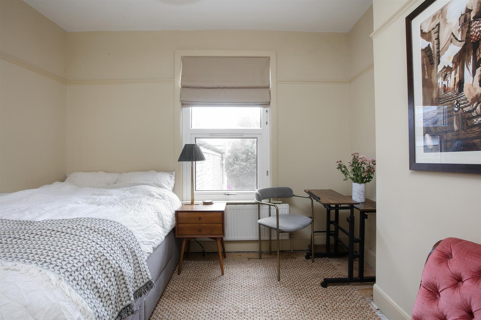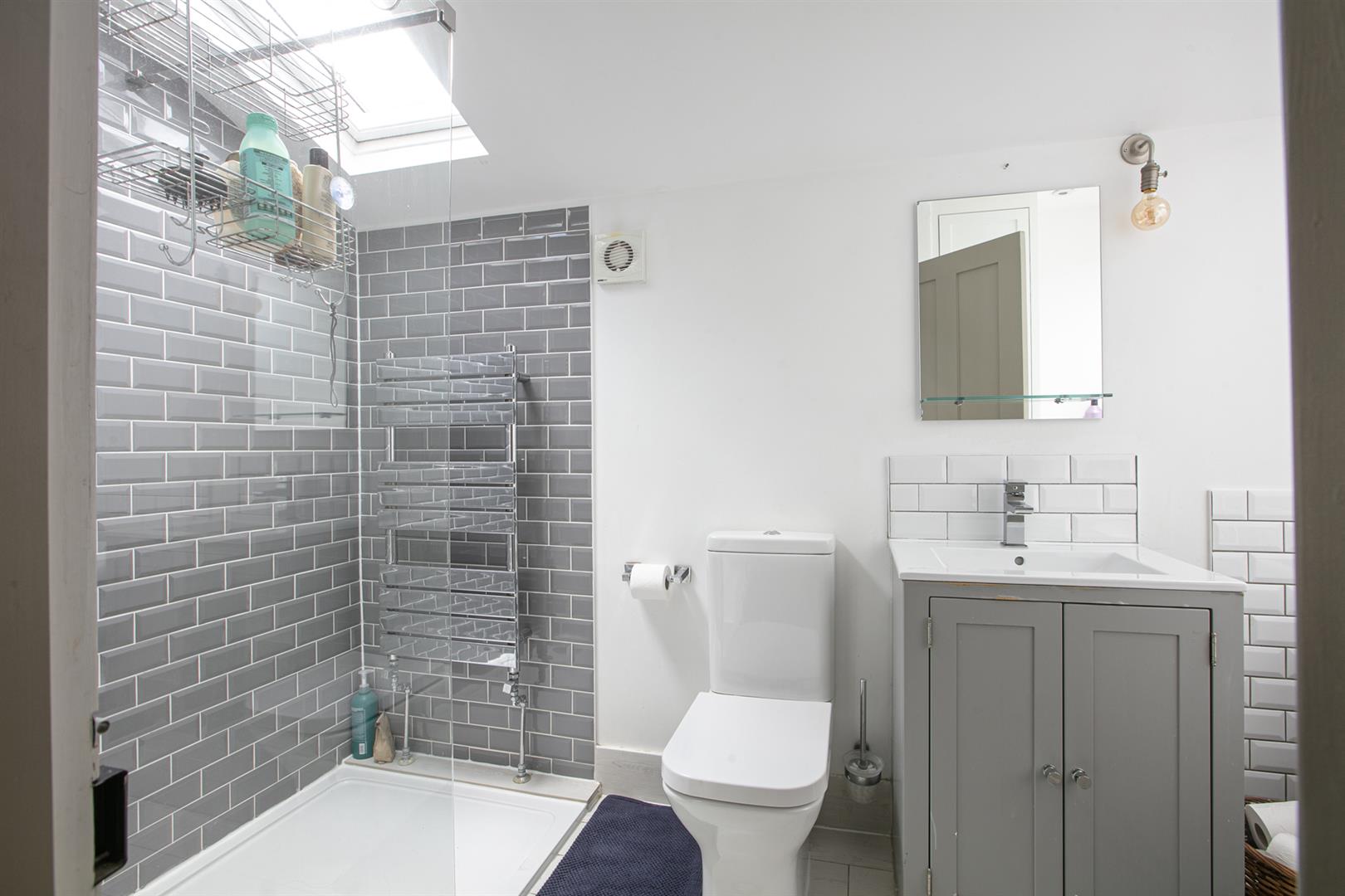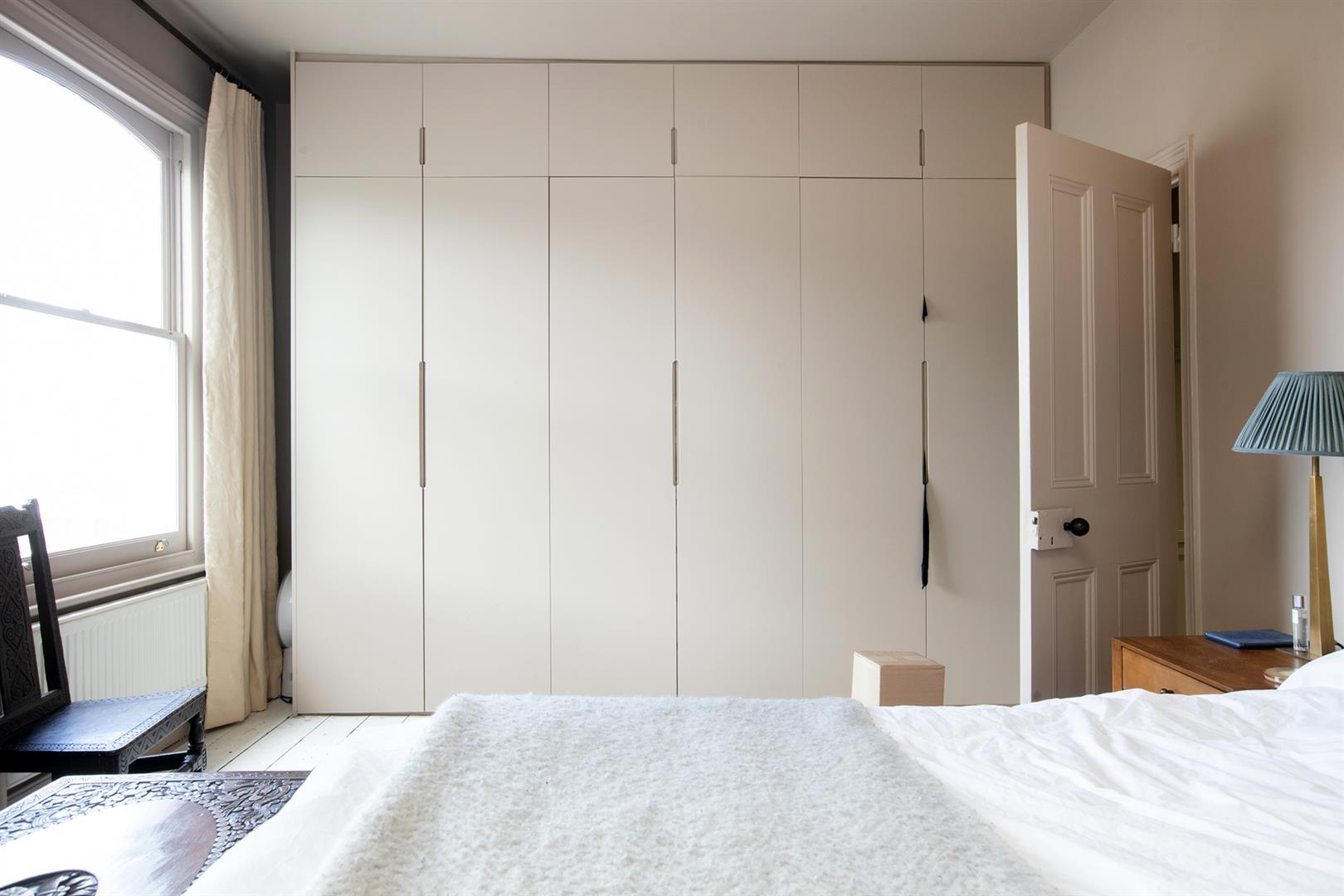 Upward bound you meet a carpeted first return with more moodily dulcet wall tones. A rear-facing bedroom with stripped timber floors and a pretty streetscape sits next to the bathroom. This boasts a lovely double walk-in shower, contemporary roll top bath and crisp white suite. The first landing has gorgeous painted timber floors and fitted storage. A front-facing master bedroom spreads into the full width of the building with two large sash windows and a wall of floor-to-ceiling fitted storage. The ceiling has been colour-drenched for a uniform tasteful vibe. Bedroom three enjoys a calming rear aspect, original storage and dado rails. The loft enjoys solid boarding, lighting and a newly instated fitted ladder. It's fantastic for storage and fully insulated to improve energy efficiency.