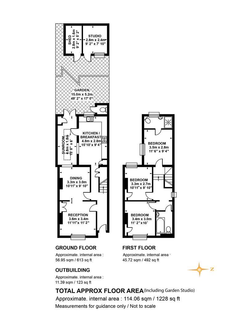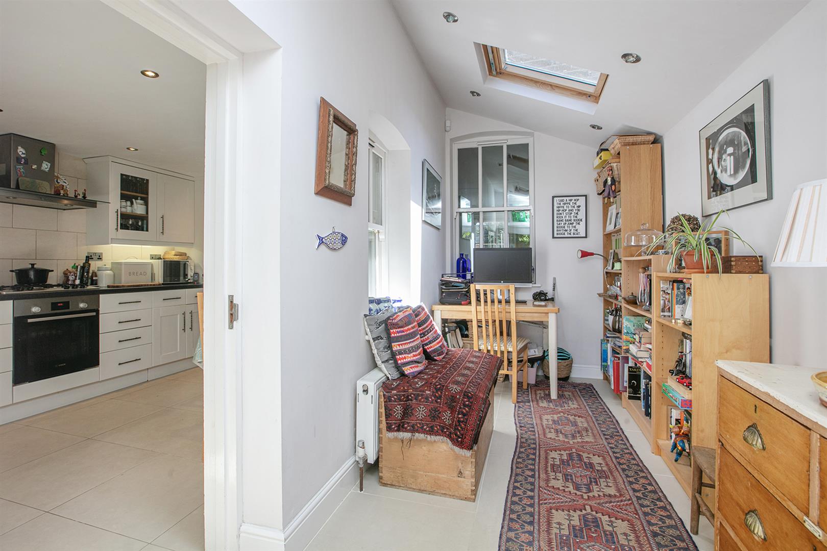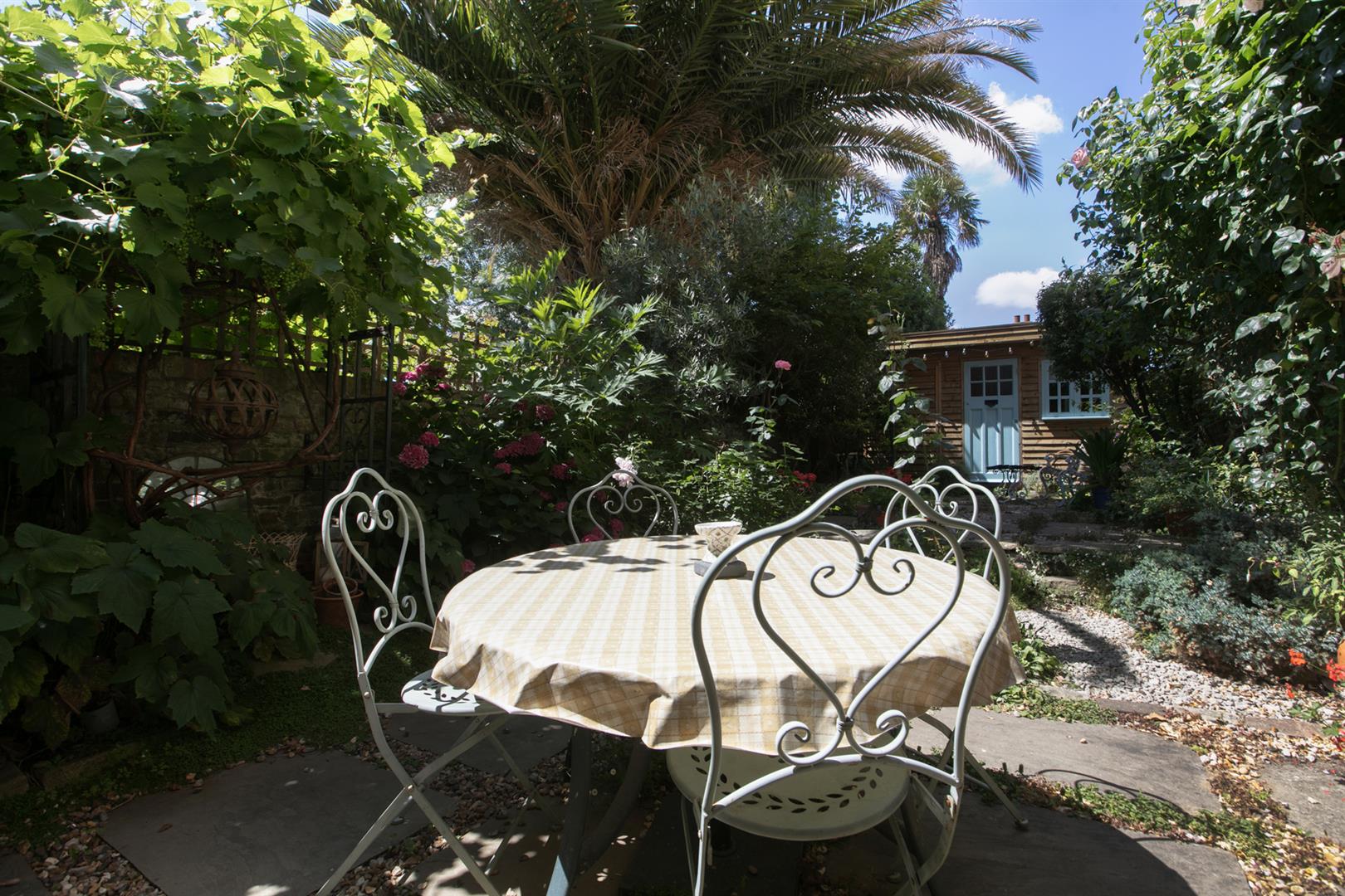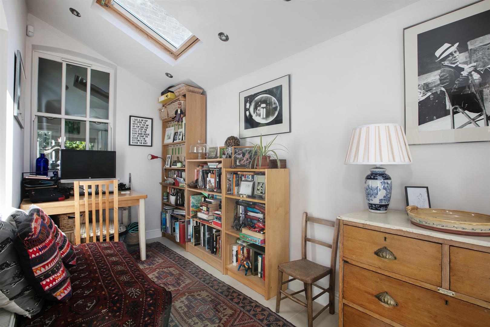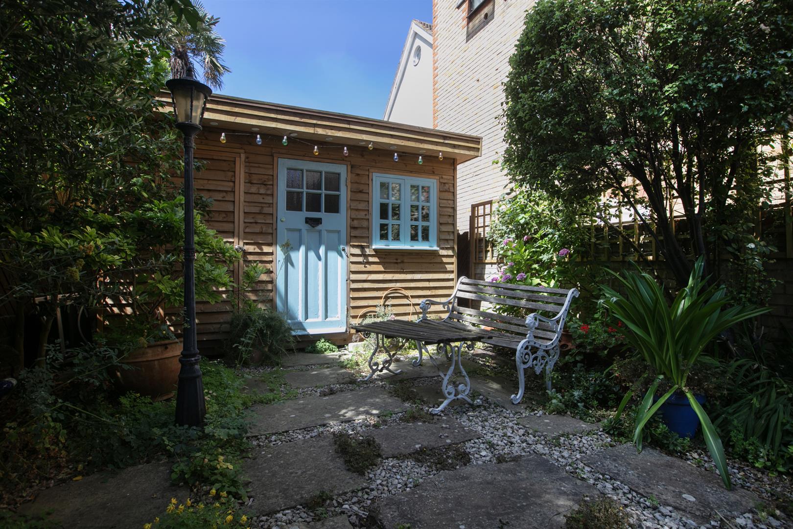 Adjoining the kitchen is a bright and airy sunroom with two large skylights, tiled floor and plenty of space for working from home. Double doors lead from here to your superb rear garden. It's a mature, leafy spot with York stone patio, vine, roses and fragrant shrubs and trees. A pretty wooden garden studio and storage sits to the rear.