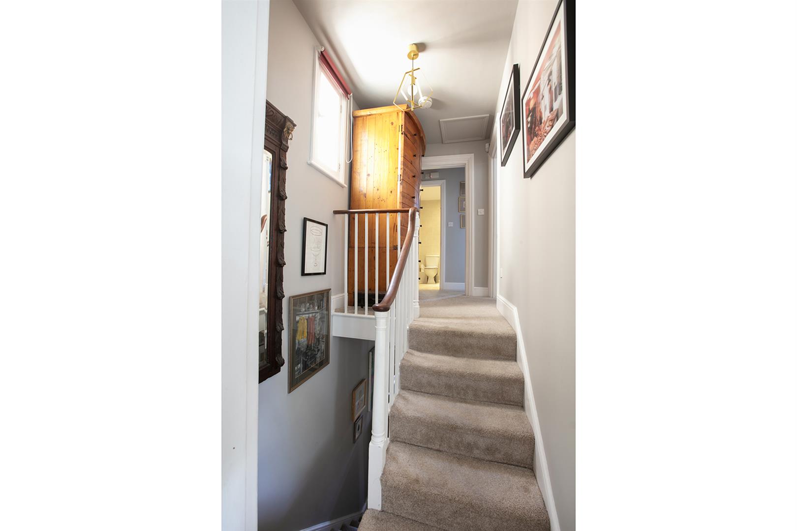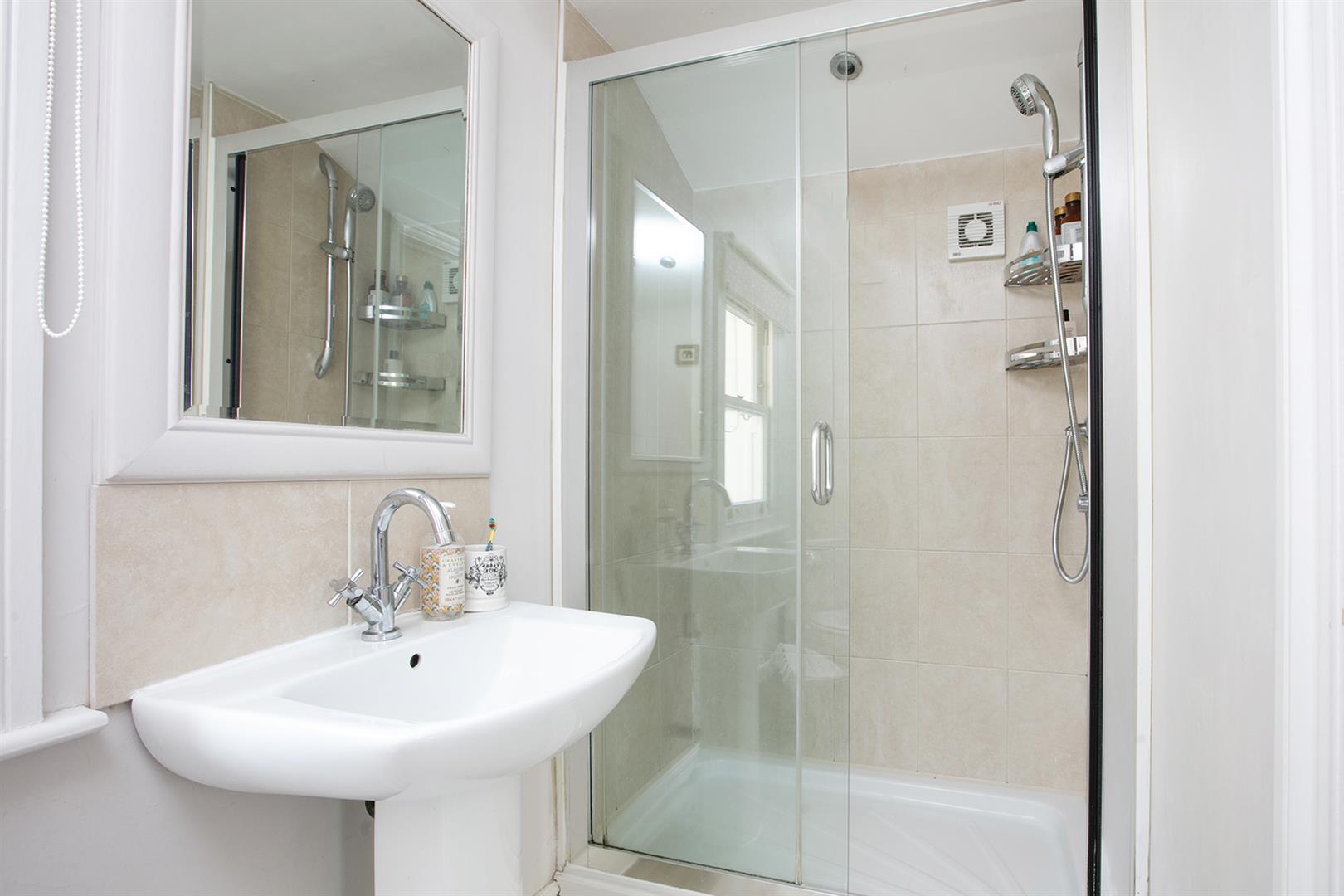 Back inside, head upward to the rear return to find the first of your bedrooms. It's a peaceful side aspect room with double glazed sash window and an adjoining shower room. Bedroom two fronts the street with fitted storage and more quality carpeting. A third double bedroom faces rear with a leafy aspect. Completing the accommodation is a modern bathroom with pristine white suite and heated towel rail.