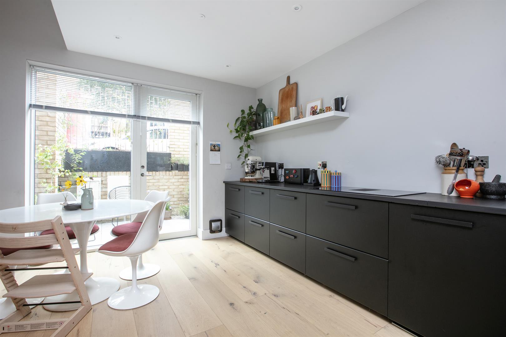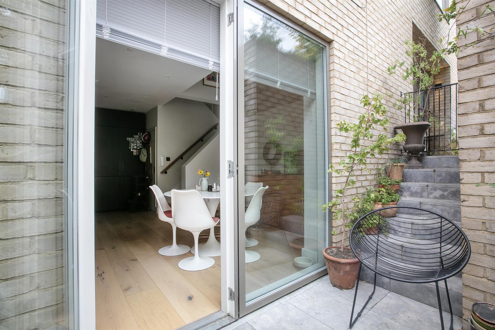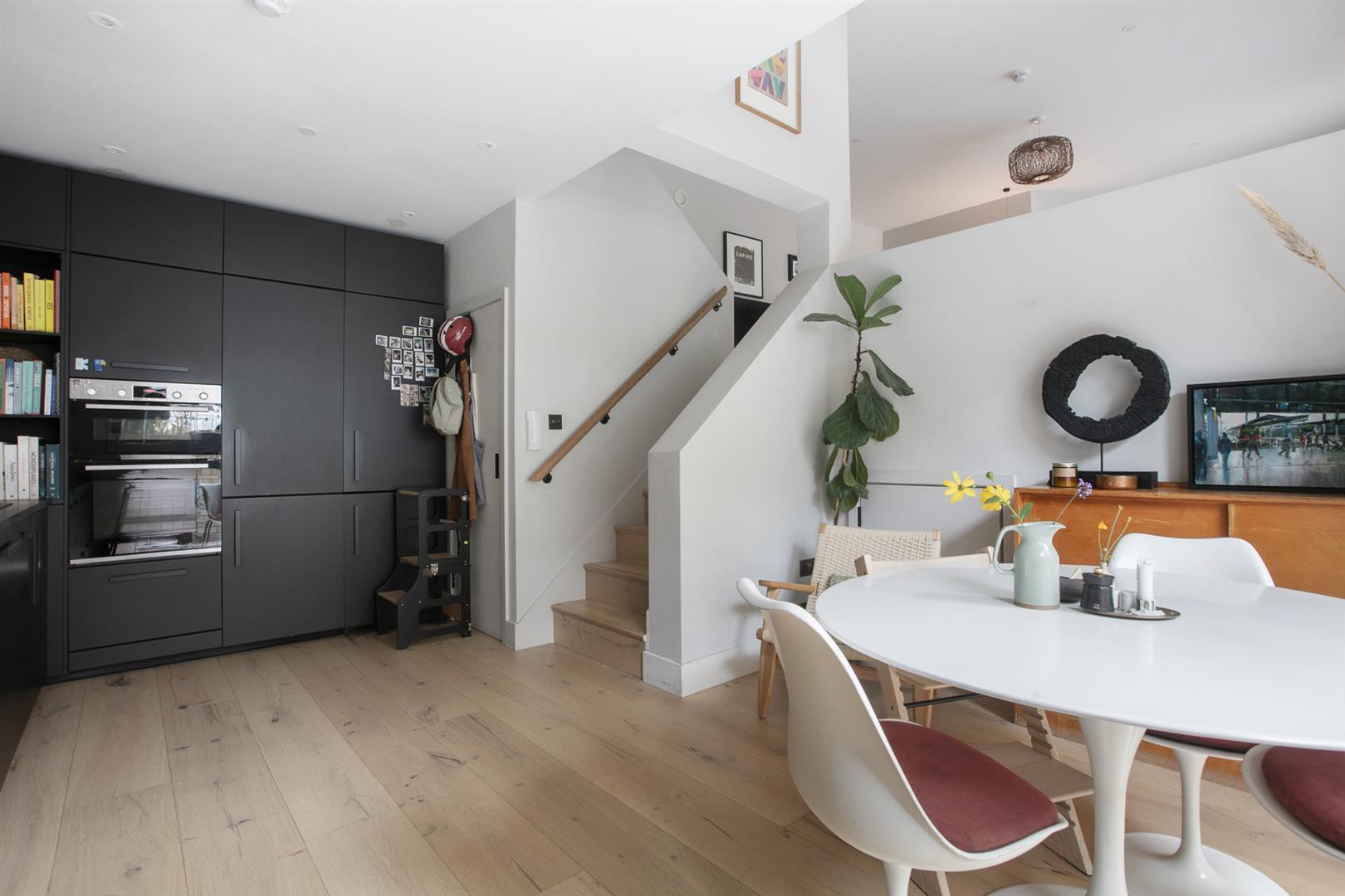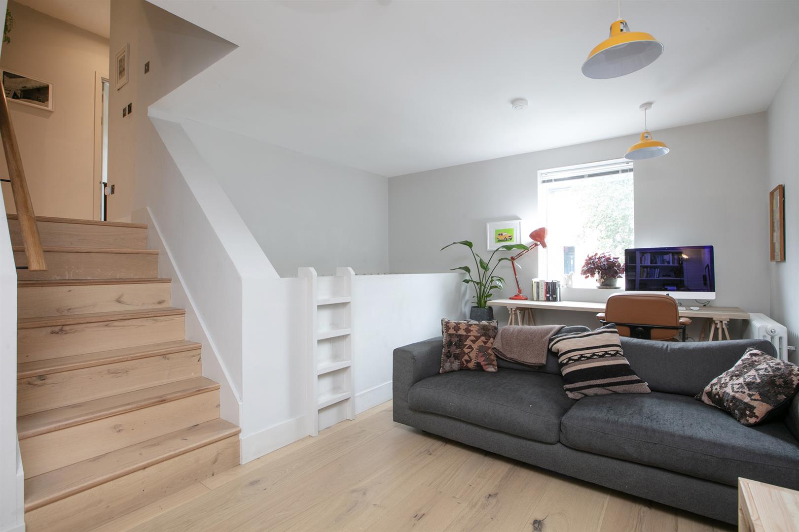Upward from the entrance reception you reach a raised lounge/studio with bespoke storage, front aspect picture window and more light gushing every which way. The super cool hammock is accessed from here - supplying a most impressive spot for your guests to lounge while you prepare dinner below. A half flight ascent from the studio leads to a neat landing with access to two bedrooms. The front number enjoys a period streetscape while the rear, currently hosting a double bedroom, would make a fine study. A fully tiled shower room boasts contemporary suite and there's further fitted storage on the landing. Upward again you find access to the fab L-shaped terrace from whence you enjoy more period Blenheim Grove loveliness. The final ascent supplies your boastful dual aspect master suite with fitted storage and adjoining ensuite shower room.