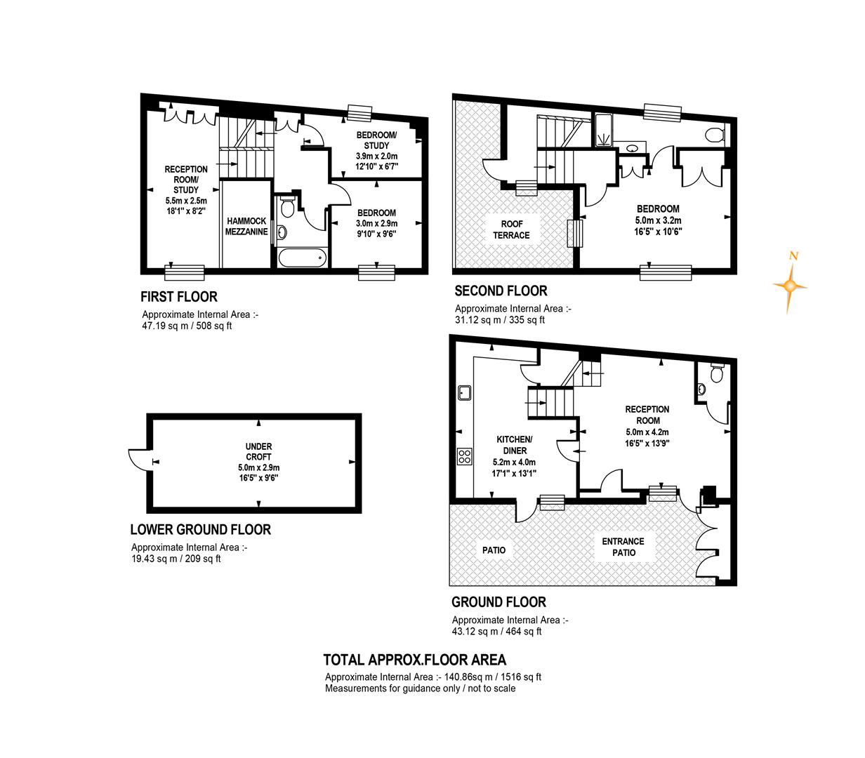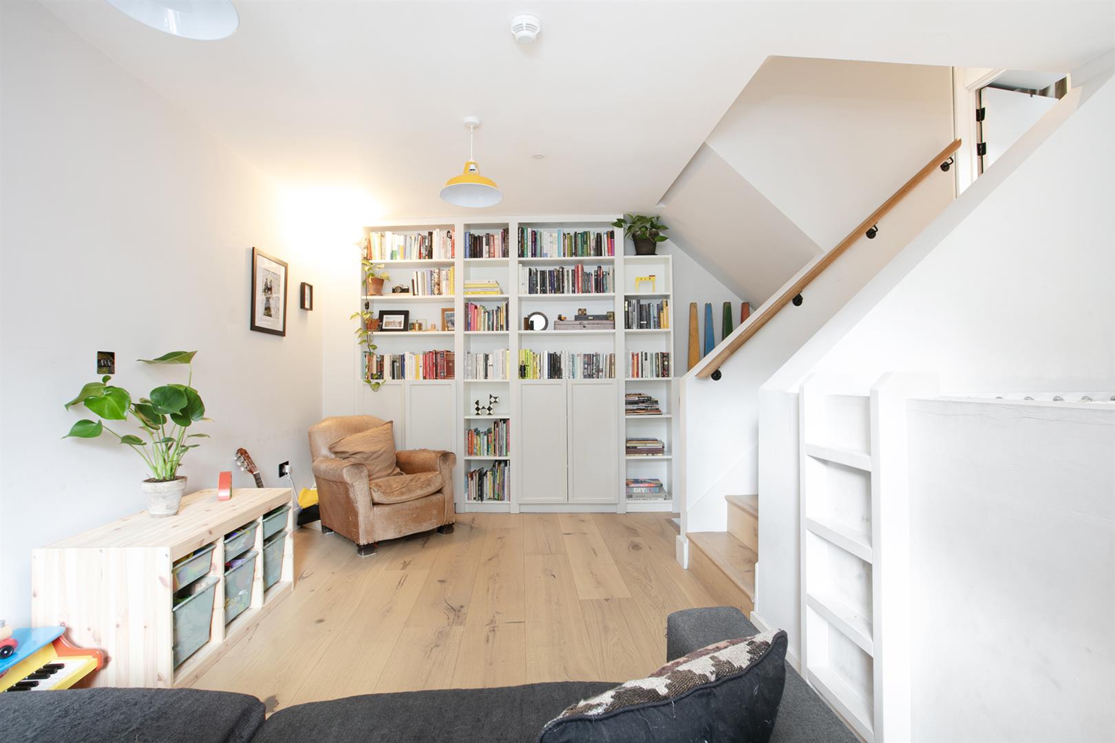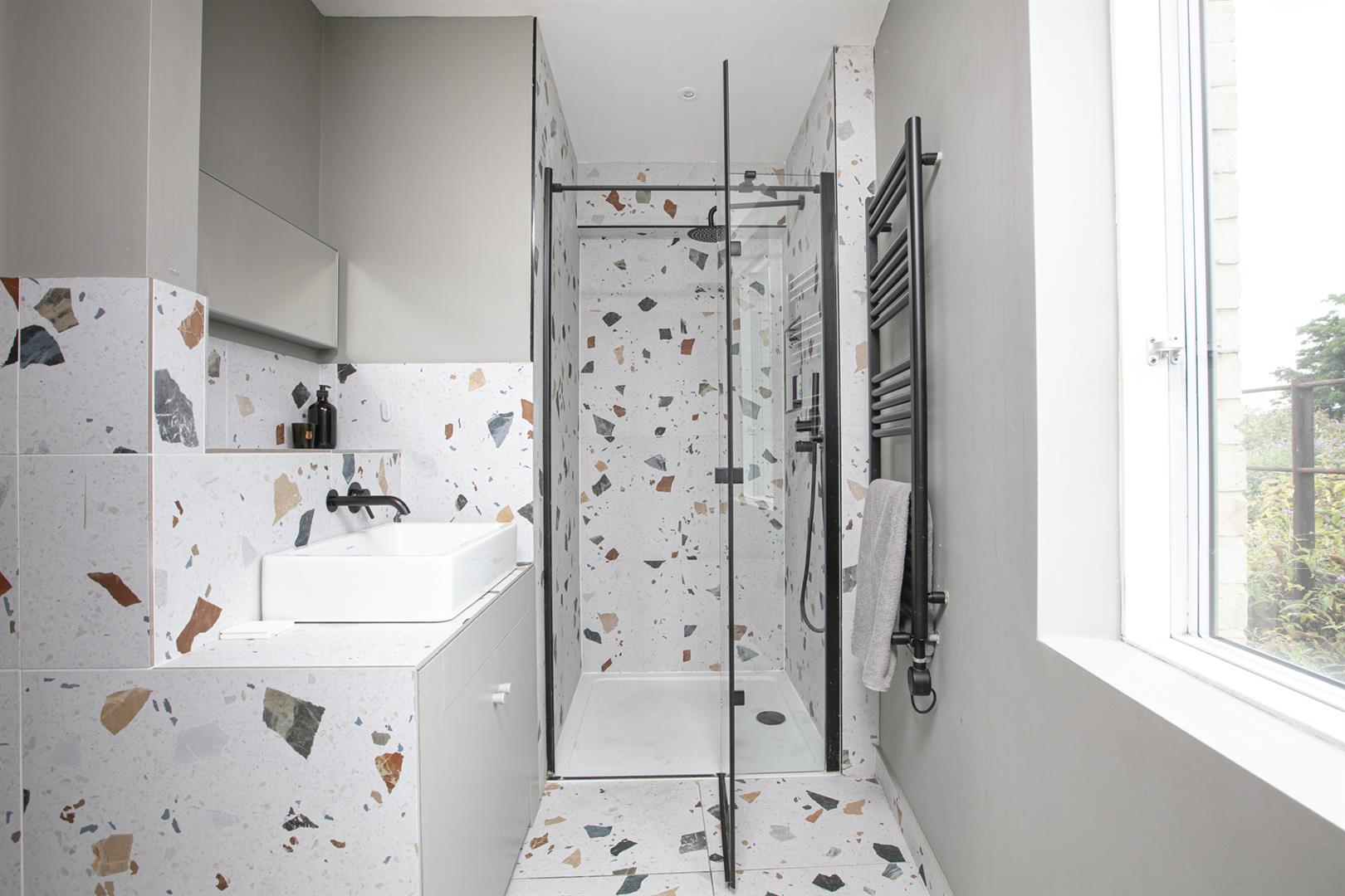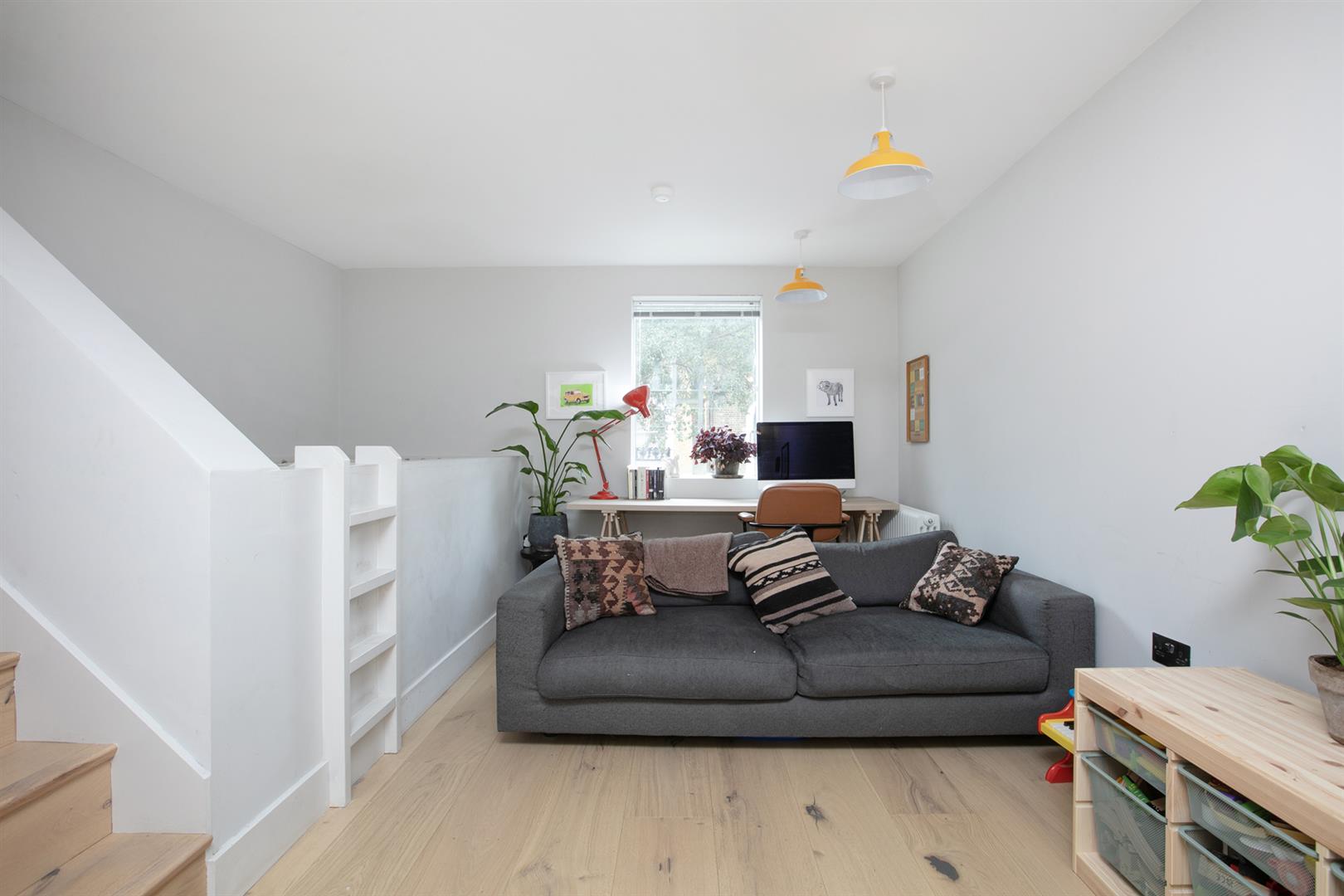 Upward from the entrance reception you reach a raised lounge/studio with bespoke storage, front aspect picture window and more light gushing every which way. The super cool hammock is accessed from here - supplying a most impressive spot for your guests to lounge while you prepare dinner below. A half flight ascent from the studio leads to a neat landing with access to two bedrooms. The front number enjoys a period streetscape while the rear, currently hosting a double bedroom, would make a fine study. A fully tiled shower room boasts contemporary suite and there's further fitted storage on the landing. Upward again you find access to the fab L-shaped terrace from whence you enjoy more period Blenheim Grove loveliness. The final ascent supplies your boastful dual aspect master suite with fitted storage and adjoining ensuite shower room.