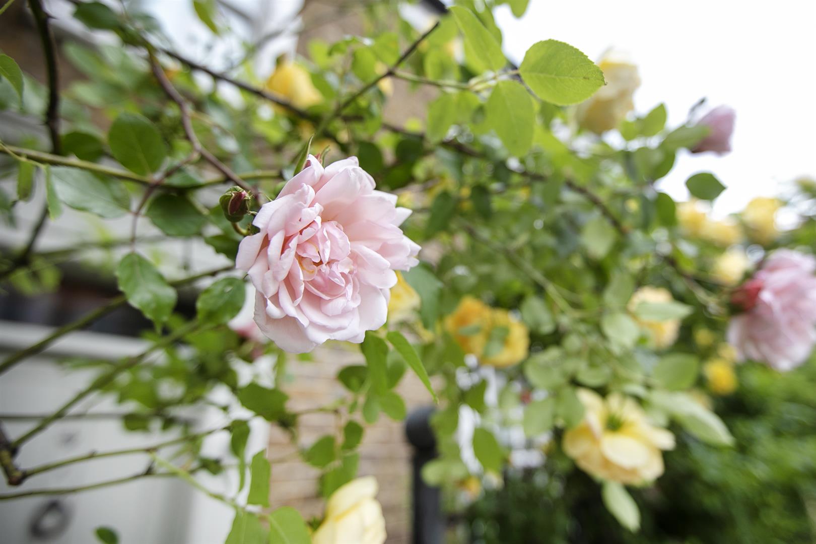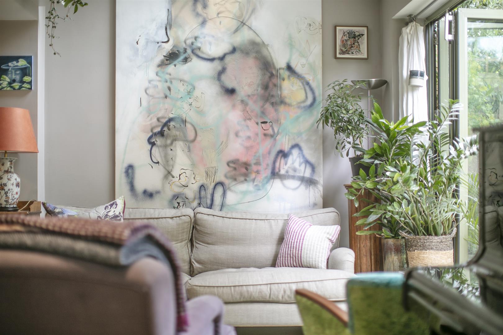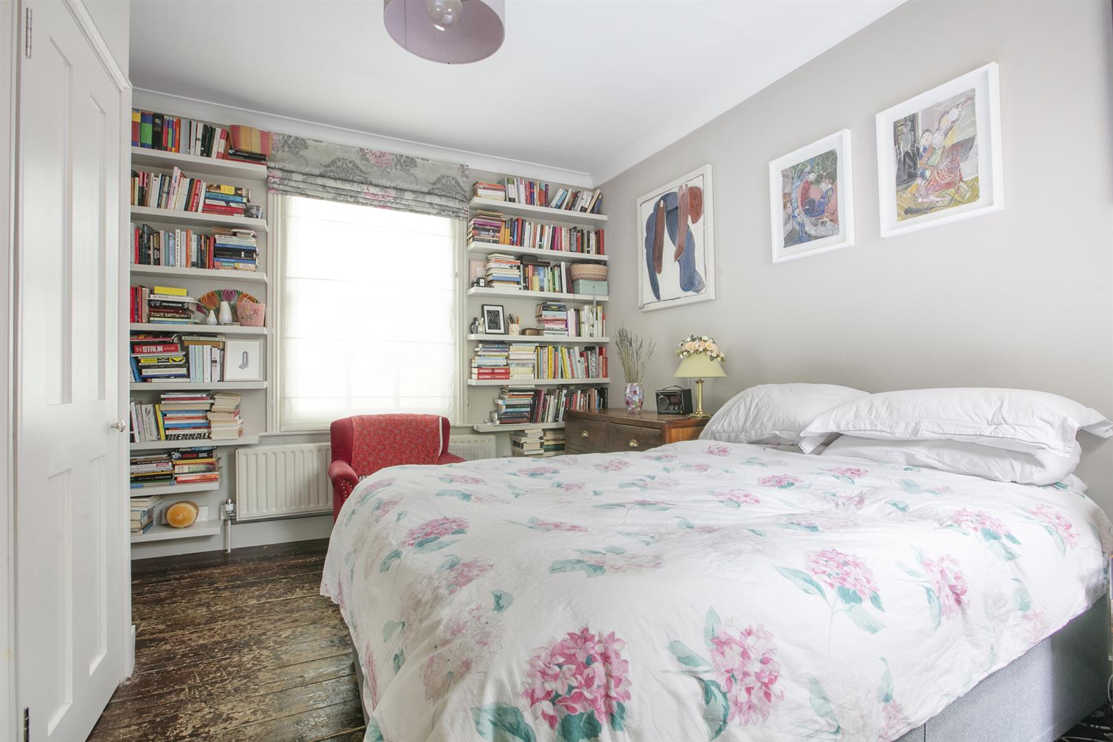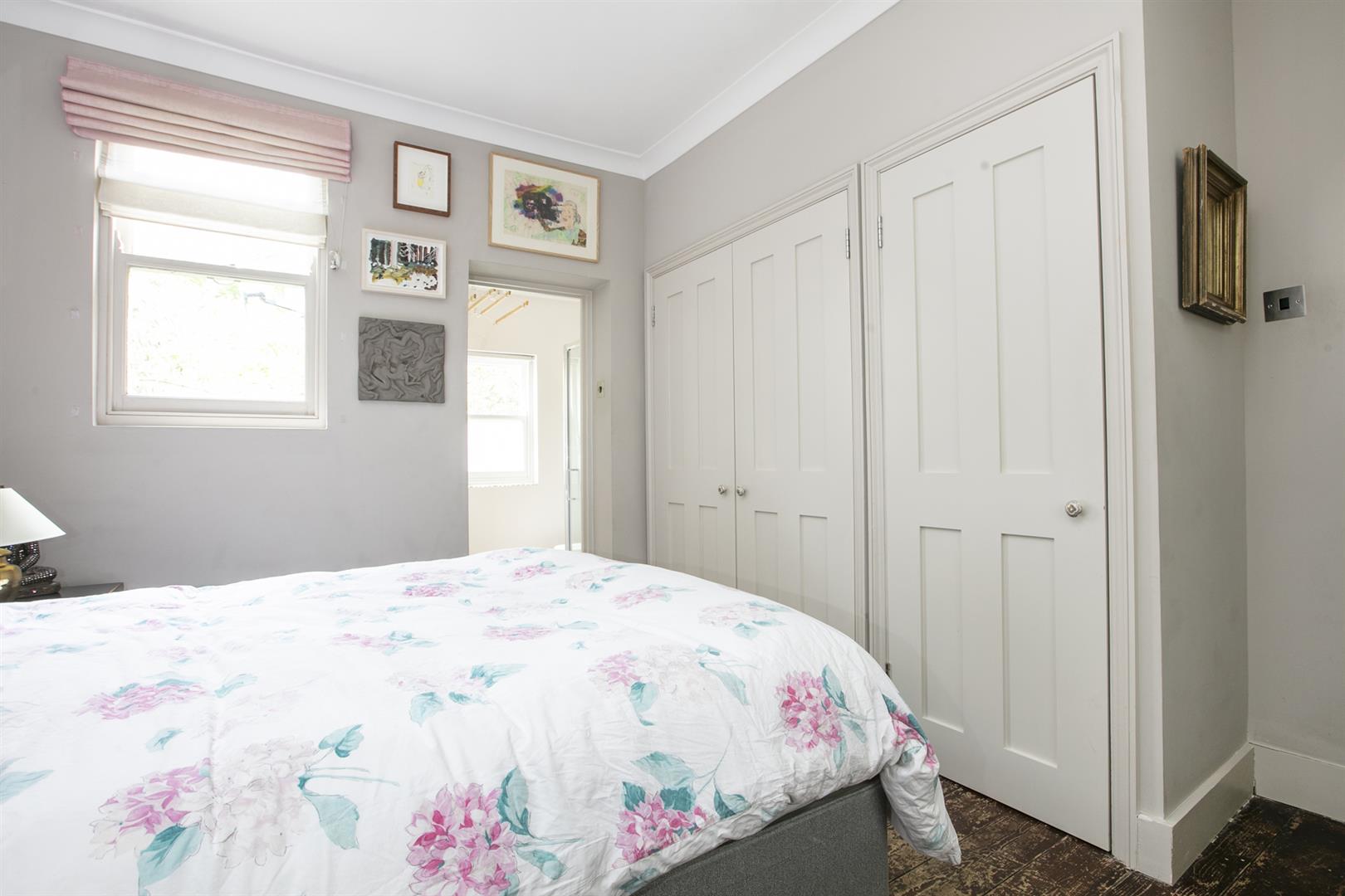 The living space runs open plan from the kitchen with bi-fold doors opening wide to the garden. Skylights supply oodles of light and there's more bespoke storage and shelving. The rear garden is a leafy peaceful and private space with lots of mature shrubs and planter beds. The study/third bedroom sits on the far side of the entrance hall. It's the perfect spot for guest storage or working from home.