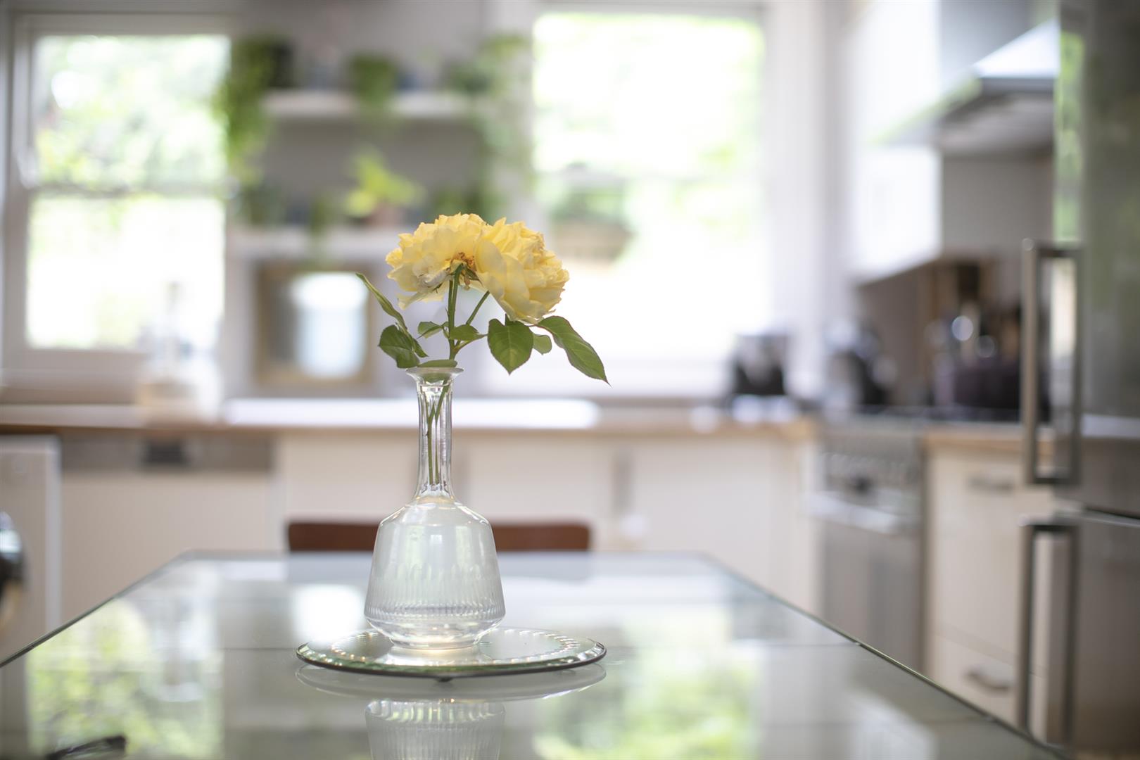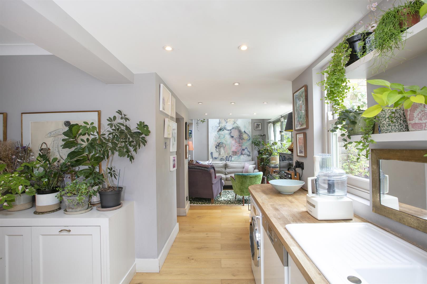 The exterior is simply delightful! Mature pink and yellow roses cascade over your original period gates leading you to a pretty period door. Inside you find a welcoming hallway with autumnal tones. Wooden flooring continues right to the kitchen/diner which supplies plenty of entertaining space There's an original tiled feature fireplace with mantel and low level storage units. The kitchen counters run into an L facing rear over the garden. There are solid wooden counters, a ceramic one and a half bowl sink and drainer and dishwasher.