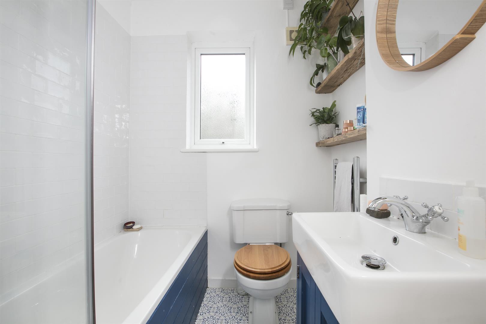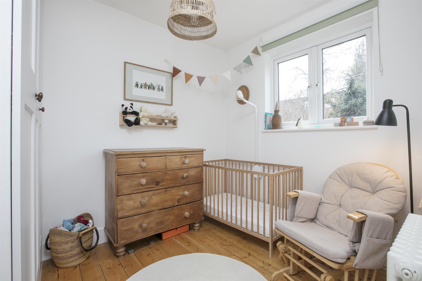 On the first floor, the master bedroom has original sash windows, and features a deep recessed cupboard and fitted corner desk for home-working. The second bedroom, currently used as a nursery, has fitted storage and room for a double bed. A modern bathroom provides a bath, wash basin, mixer shower, heated towel rail and toilet.