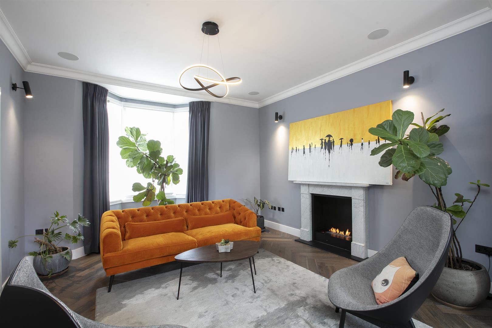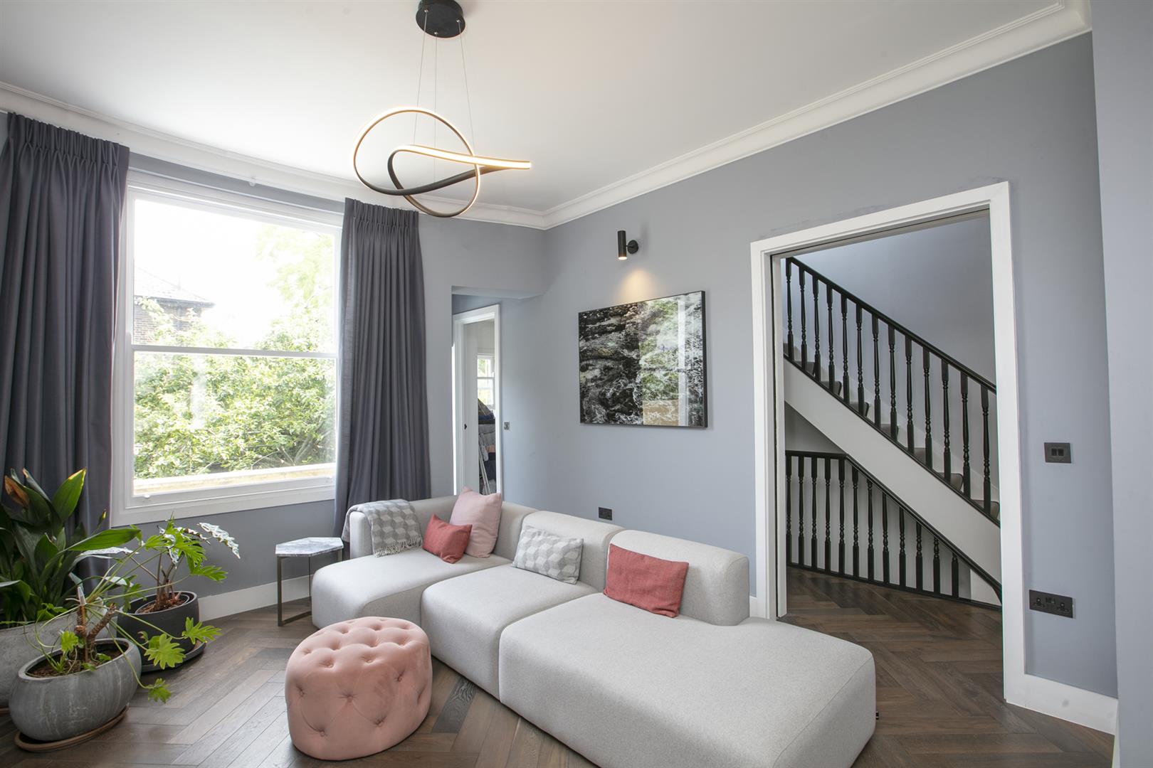 A raised ground floor entrance leads inward to a most impressive open-plan hallway that runs gracefully into the double reception through a wide arch. A front-facing bay of double glazed sash windows invites a tonne of light to the seating area which enjoys a super stylish eco-friendly bio-ethanol fireplace which burns 100% clean and requires no flue. To the rear of the space you meet a gently curved rear wall hosting another large sash window which frames beautiful garden views. A utlity/laundry room tucks neatly to the rear of this.