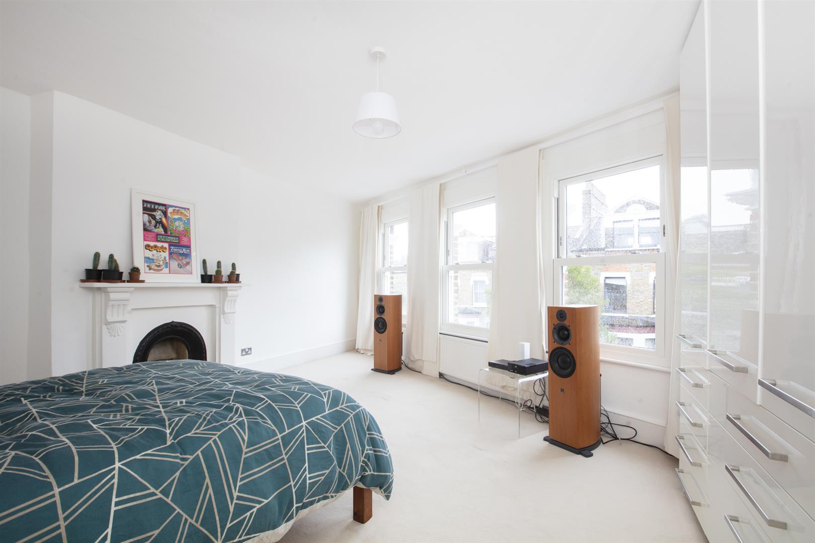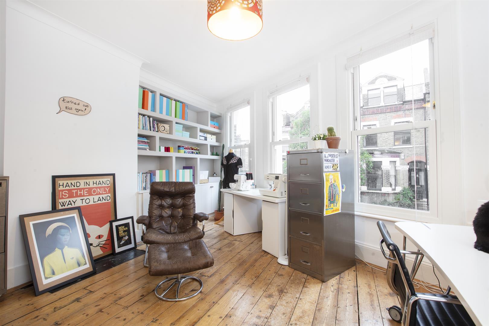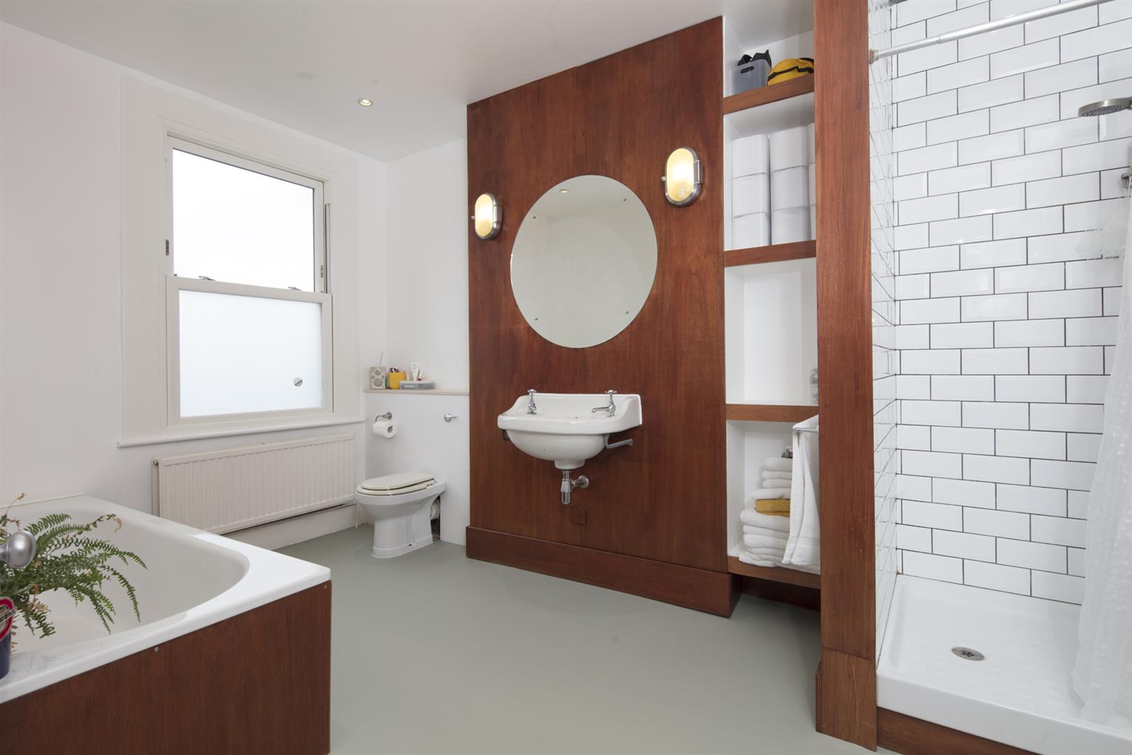 Up another half flight you'll be treated to a massive bathroom which hosts wood panelling, an oversized bath, separate shower, Dalsouple flooring and decidedly cool views over St Paul's. The second bedroom fronts the street displaying the quirky diagonal frontage, with a working fireplace, built in shelving and plenty of room for lazy lounging. The second floor hosts two more bedrooms, both of which are comfortable doubles. The master fronts the street enjoying another triptych of sash windows set into the funky diagonal facade, a striking period feature fireplace and fitted storage. The other faces rear with enough space for a decent double bed and storage and there's some more impressive tip top views stretching from the city to Canary Wharf and the Shard.