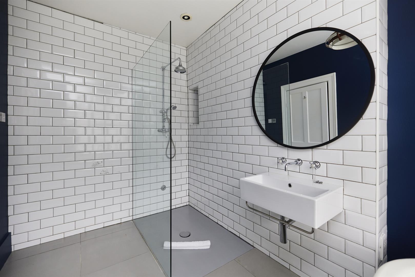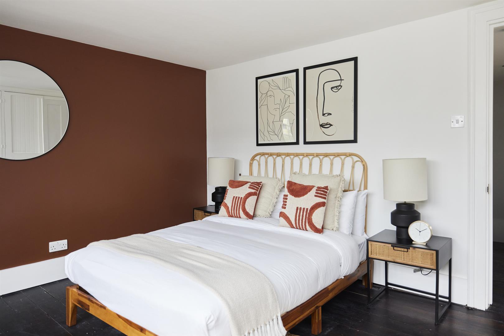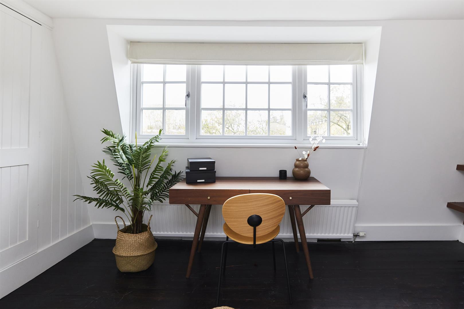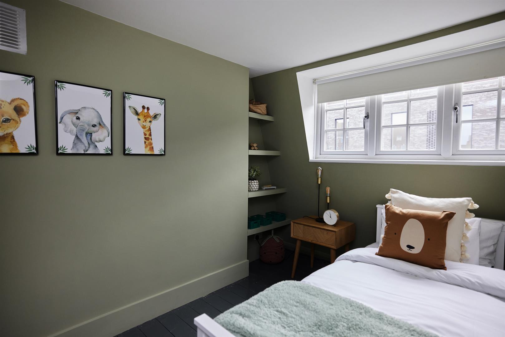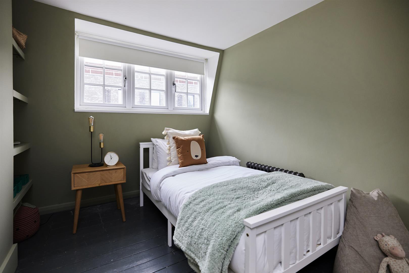 The masterful main bedroom has two front facing wooden sash windows and the double glazing makes it surprisingly peaceful! More rich grey on the walls make for further tastefulness and there are seamless recessed wardrobes. Cast iron radiators throughout the house enhance the look. The upper landing is bright and pleasant with a side aspect sash and study space - a new iMac perhaps? Your second large, front facing double bedroom boasts a wall of fitted wardrobes while the third and final bedroom faces rear with lovely painted floorboards and fitted shelving.