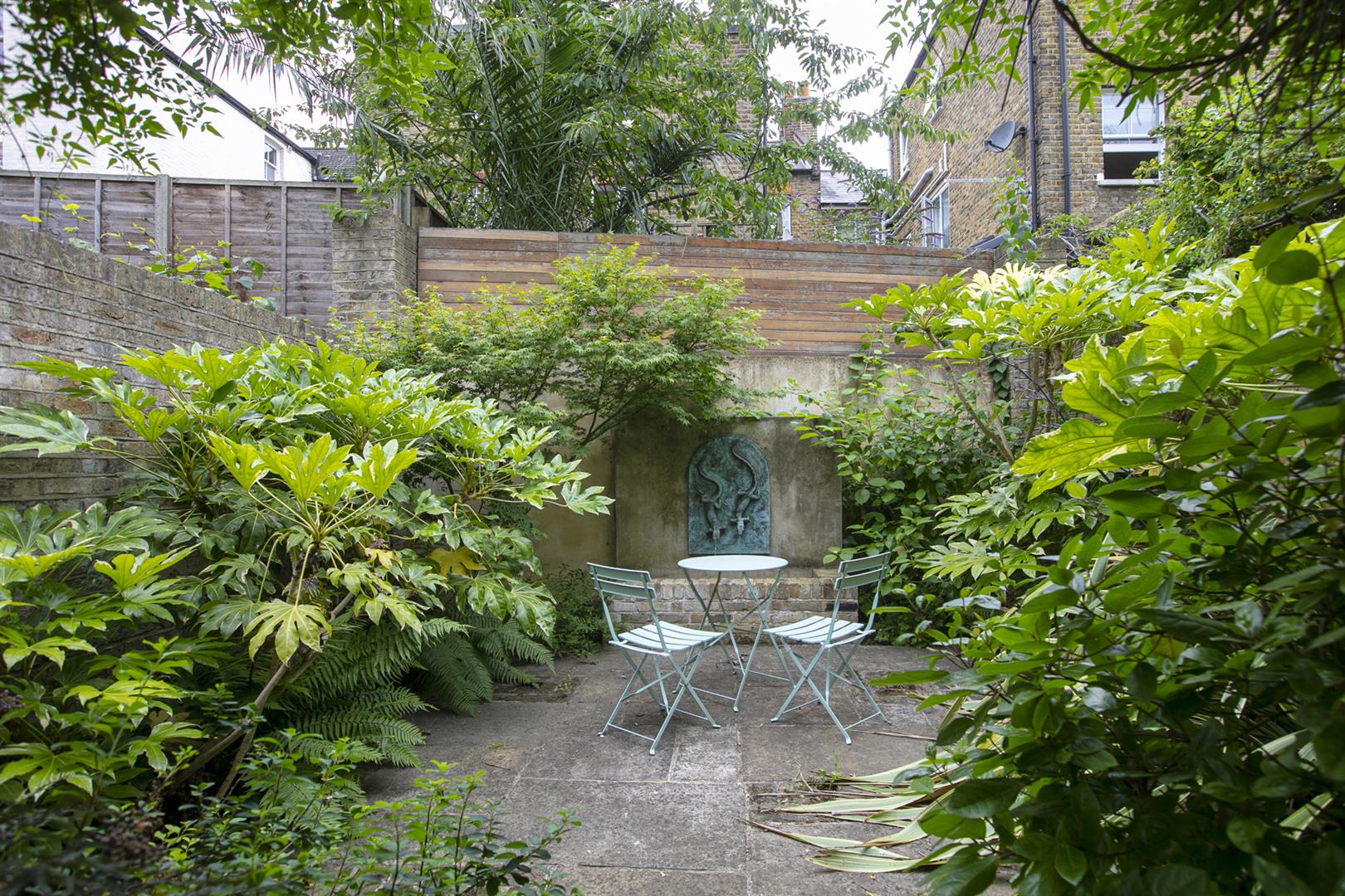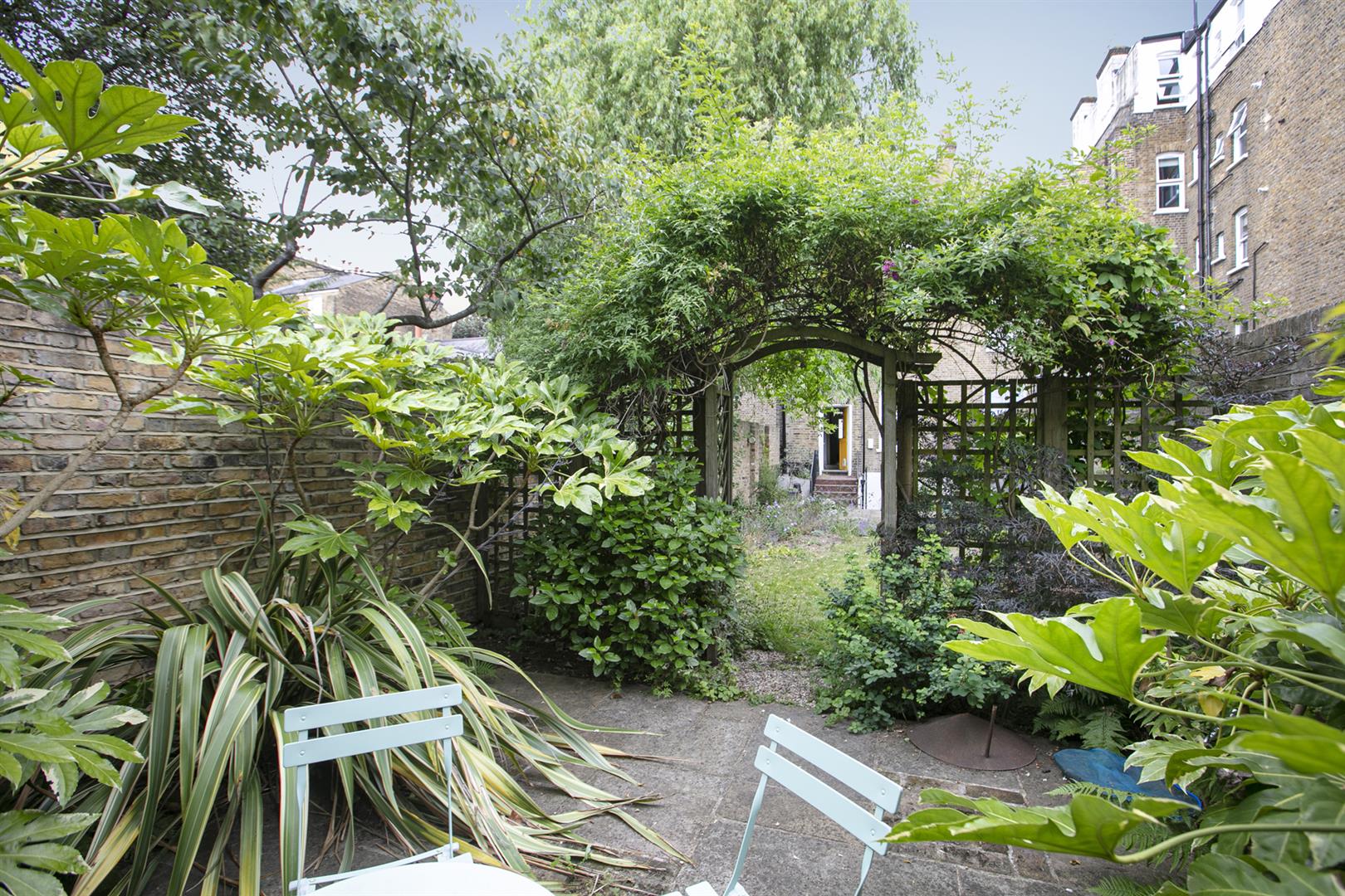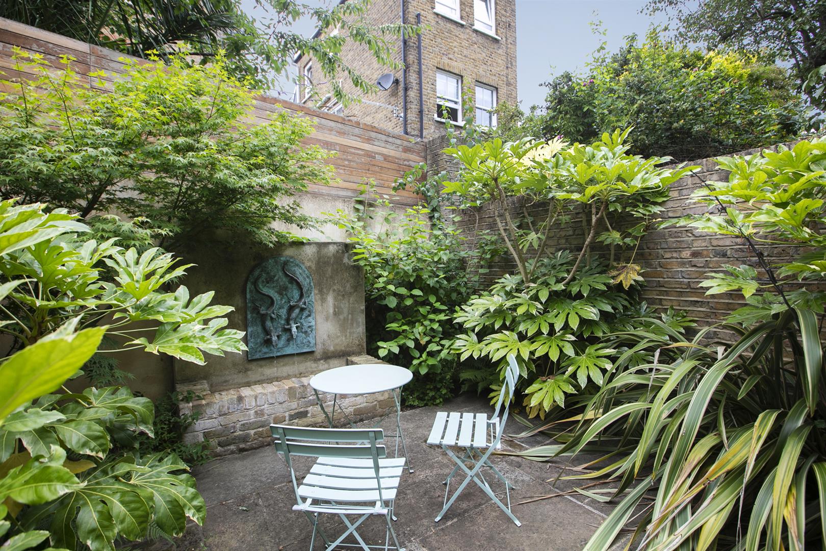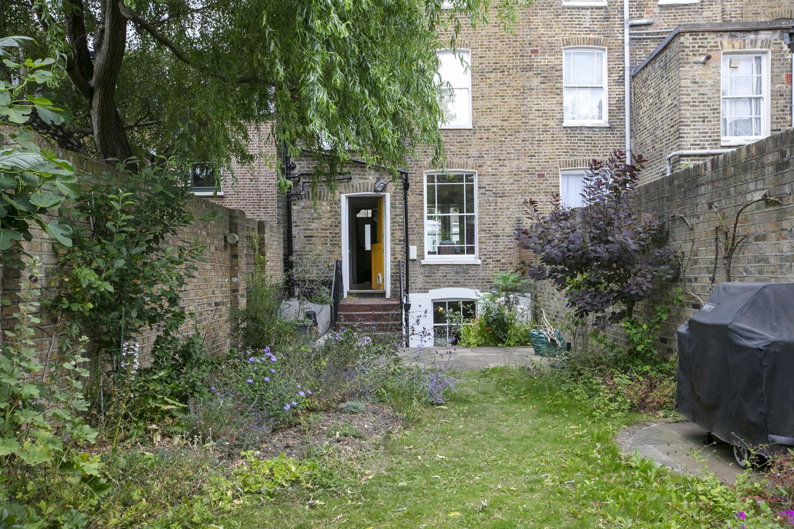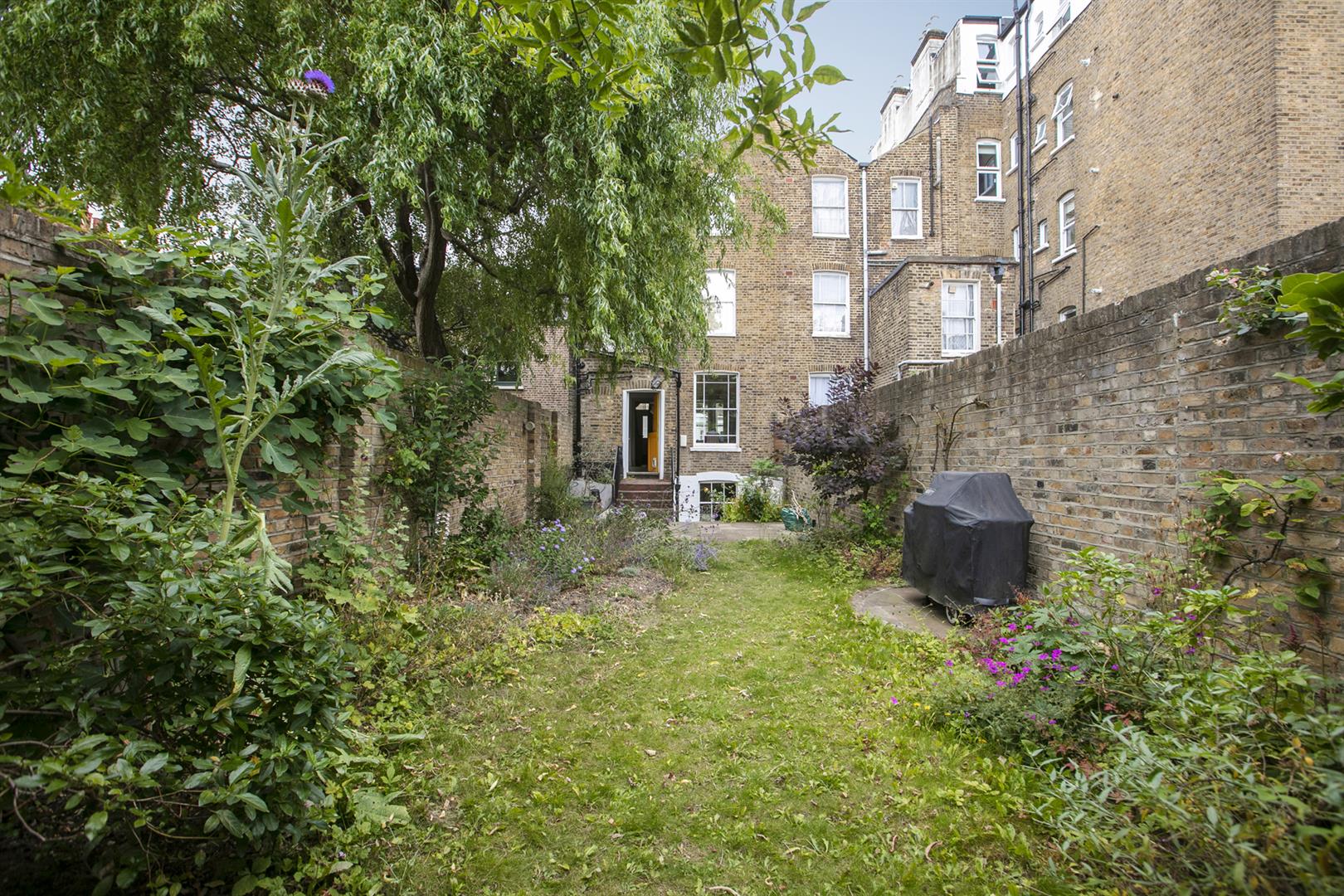Back into the hall and at the rear is a practical white kitchen with a half glazed stable door to the mature and pretty west facing garden, measuring about 80ft, with a lush patio and ample room for children to play. Toward the rear, through an archway of foliage, a secluded patio area supplies a unique water feature - it's a most wonderful spot for al-fresco dining. Accessed to the rear of the house on the lower level you find a super, self-contained one-bedroom flat. Consisting of a large reception, bedroom, bathroom and kitchen it's ideal as an au pair / nanny suite. This level offers exciting development opportunities - a wonderful open-plan kitchen / living space perhaps?