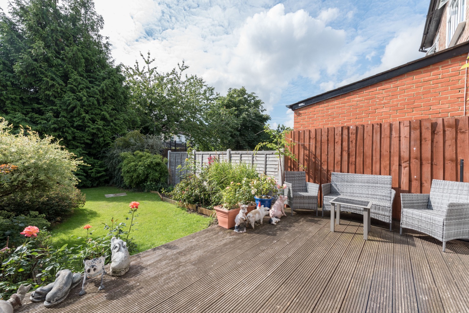 Through the large patio doors we find a large private decking area, an attractive and well kept lawn, and shrubs and plants that are both established and well kept. The garden faces south and is a charming sixty-five foot long sun trap. It would be superb for family barbecues and entertaining friends, with plenty of space for the grown-ups and the kids.
