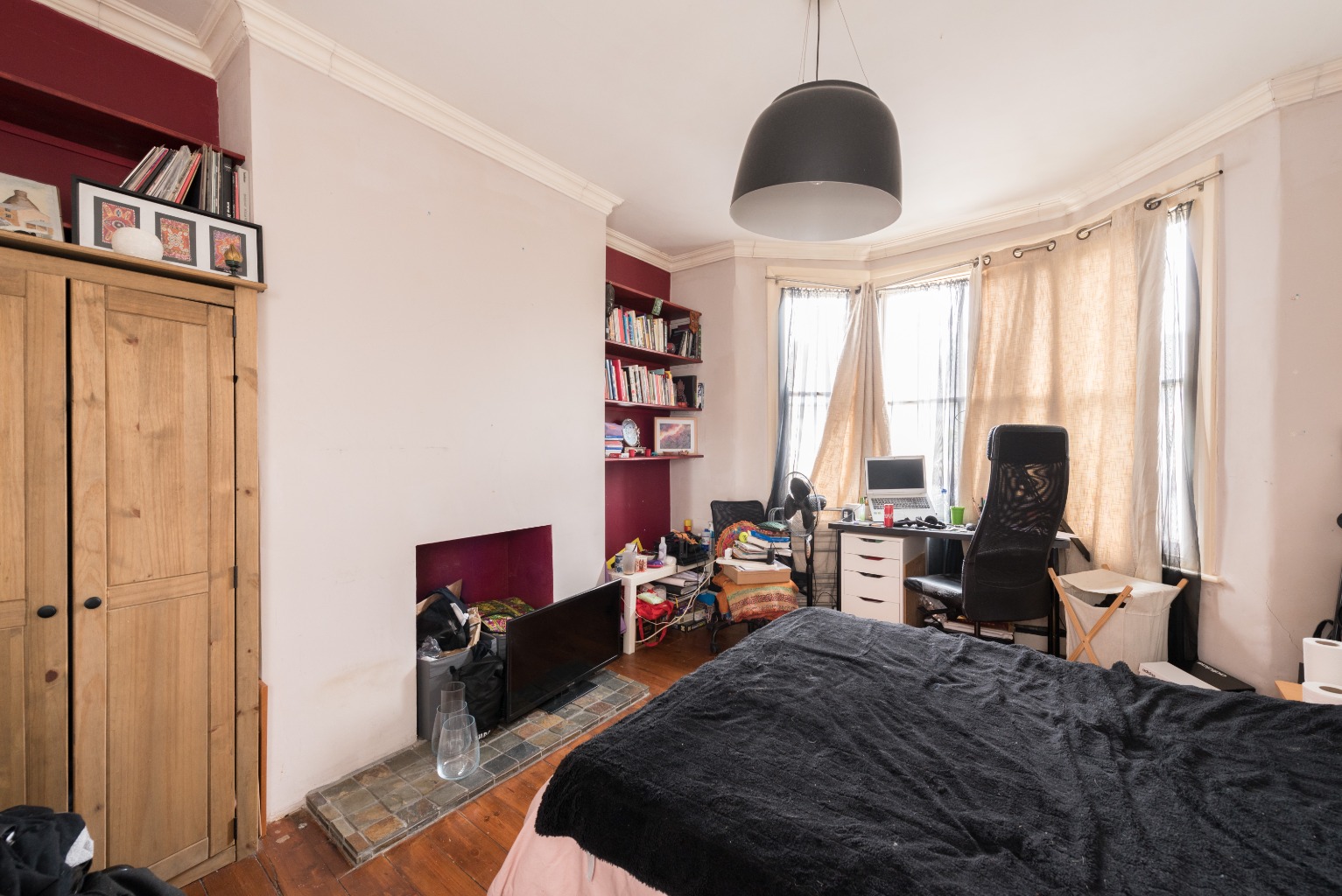 Heading back to the landing, there are a few carpeted steps up to the main first floor level, from which there's access to a generously sized bedroom directly on your left. This could easily be purposed as a double bedroom, guest bedroom, a nursery, teen's room, large home office, or even a second reception room. The original sash window looks out over the garden below for a lovely bright atmosphere and the recessed space either side of the chimney breast offers the ideal area for a set of wardrobes or shelving units.