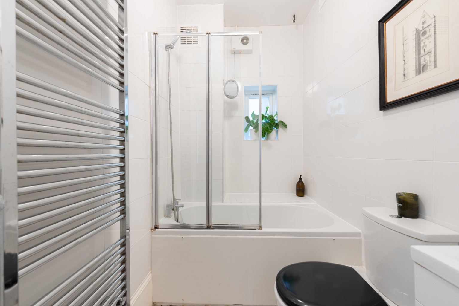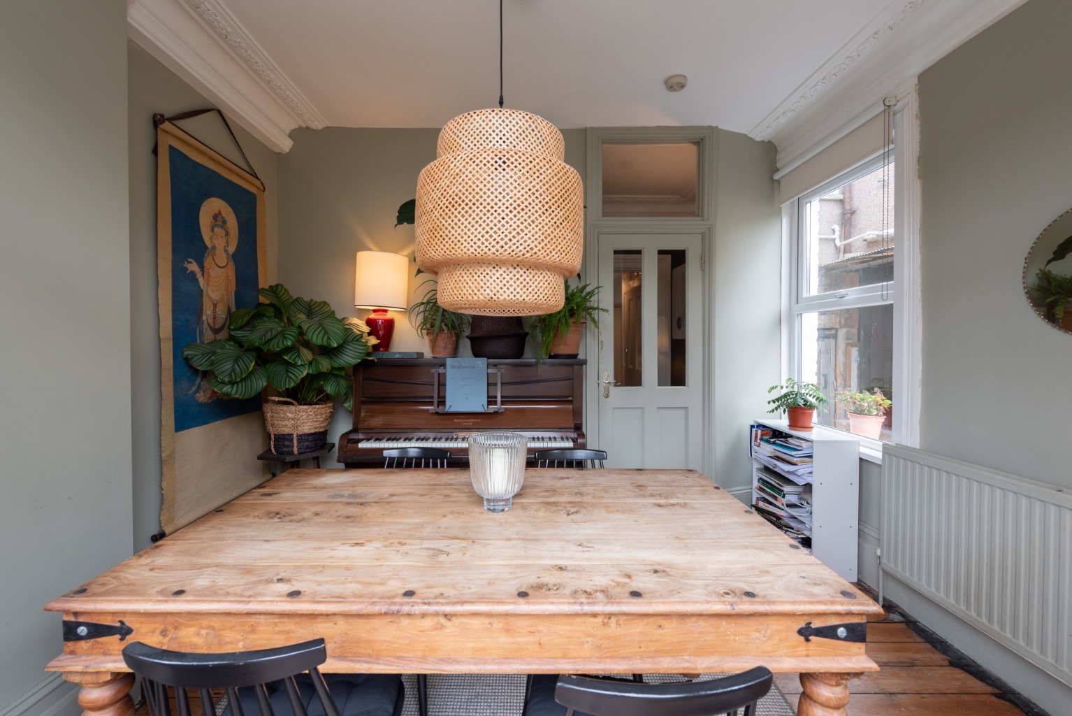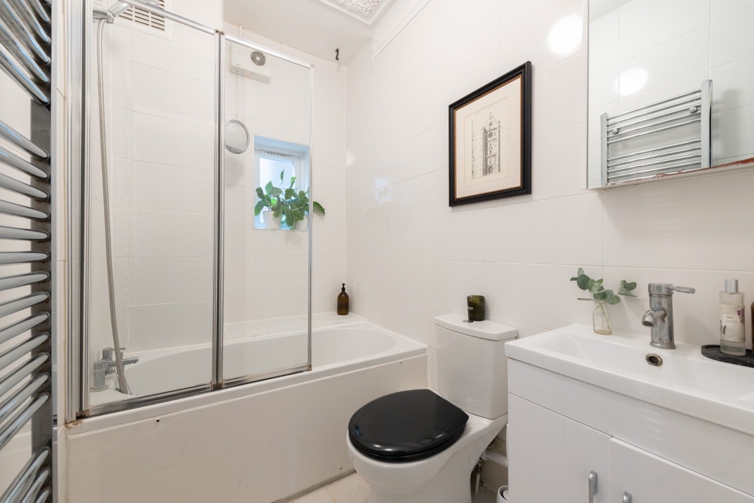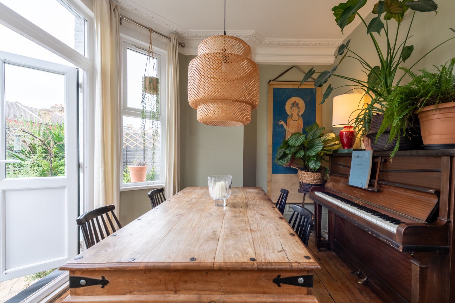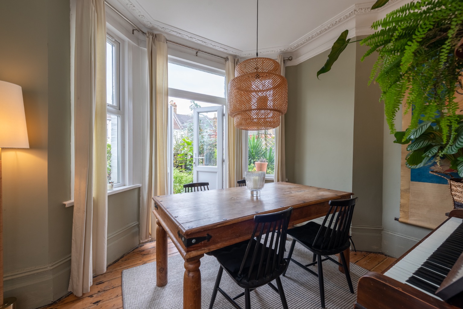 This handsome ground floor maisonette really grabs your attention from the kerb, finished in a traditional yellow London stock brick, with red brick highlights and carved stone window surrounds. The generous proportions of the outside are echoed by the inside space. There, you’ll find plenty of attractive period features, with high ceilings and an airy, light feeling due to the abundance of windows and fan-lights. The property is accessed through the side, through your own part-glazed front door, and there’s a side access to the lovely private garden, too. Entering the property, you discover the entrance hall, which sets the tone for the entire living space. The original floorboards have been stripped and varnished, giving the hallway a warm and welcoming glow. There are the high ceilings that run throughout the property and, just as with the rest of the space, gorgeous period features, such as original Edwardian panelled wooden doors, skirting boards and architraving. The woodwork is all white, setting off the smart, warm and dark walls. Your entrance hall has a couple of gems in store too – there’s a door to a downstairs cellar, which runs the entire length of bedroom one to the lounge, and is as wide as the hall itself. This offers you plenty of room for storage, enabling you to keep your space clutter-free. And what’s more, there’s a useful little storage area in the hallway itself, which has been attractively fitted out with wooden shelves, perfect for stashing shoes or anything else you need close to hand. Your boiler is conveniently housed here too. There’s also an attractive built-in cupboard, once again with the original beaded doors and period brass fittings, which provides you with even more useful storage to help you keep a lovely sense of uncluttered flow to the property. Immediately opposite the entrance is your kitchen. The décor here is clean and simple, in keeping with the style of the rest of the property. The white, shaker-style wooden units are teamed with wooden work tops and flooring and there’s ample light streaming in through the window to the side to illuminate you while you cook up a storm. Next door is your modern, stylish bathroom. Natural light spills in through the window and everything here too is kept clean, light and bright by the choice of white, modern fixtures – bath with shower overhead, glass shower screen, low level WC with monochrome fittings, echoing the Edwardian character of this property. The luxurious atmosphere is completed by a smart white vanity unit housing the sink with mixer tap, with enough room for all your lotions and potions and the useful addition of a chrome heated towel rail, to keep your towels fluffy and warm. Turning right out of your bathroom, you go through another lovely part-glazed Edwardian door, topped with a fan light to allow even more daylight to filter into the hall and find yourself in an absolutely stunning room, which is one of the jewels of this property. Currently used as an elegant dining room and decorated in a restful grey-green, the generosity of the proportions here and the light flooding in through the beautiful windows would make this an impressive master bedroom. There are impressive Edwardian details here too, the stripped wooden floor, the high ceiling, the picture rail, period cornicing and skirting. The room is double aspect, with a large window to your left and a further huge bay which boasts lovely period French doors, opening up to reveal the pretty garden. Imagine opening those doors and walking through to the garden from this beautiful bedroom to breakfast outside, with the attractive Edwardian brick façade of the rear aspect of the house to gaze back on. Your private garden has a favourable south-western aspect and is for your sole use and is attractively laid out with raised wooden beds providing easily-managed, neat areas to grow your own fruit and vegetables, or create your own herb and flower gardens, and an attractively framed path leading to an area to relax or dine outside. You can access the garden via the external side entrance as well as through the French doors in bedroom two. Back inside via bedroom two and down the hallway, past your kitchen and bathroom and through some attractive period double doors with obscured glass, you will find bedroom one – a double bedroom with the same high ceilings and period features of your other rooms, including a continuation of the warm stripped wood floor. There’s a large window and plenty of space, with the added benefit of a double-height built in cupboard, complete with original Edwardian woodwork and panelled doors, providing you with a huge amount of storage – a real bonus. The clever mix between old and new continues here in the décor – wooden flooring giving continuity from the rest of the property, sparkling white woodwork framed by chic French navy-blue walls. Leaving your bedroom and turning to the front of the building, you’ll find yourself in your sitting room. This is another highlight of the property – it’s a spacious, glamorous and well-proportioned room, its warm dark and white colour scheme echoing the hallway, with the same period features as the rest of the space, including the beautiful, stripped wooden floor and decorative details in the cornicing. There’s even an intricate original ceiling rose to add drama. Plenty of room here for you to kick back on squishy sofas and relax in front of the brick open fireplace, with its pine mantelpiece and hearth, nestling amongst the earthy tones of the tiles. A huge bay window to the front aspect allows the light in to create an airy atmosphere in the heart of your home. Francis Road is an extremely sought-after location in the vibrant community of Leyton, with wonderful amenities all close to hand. The nearby High Road boasts a wide range of shops and other services. The property is very close to some local favourites, such as Morny Bakehouse, Marmelo 