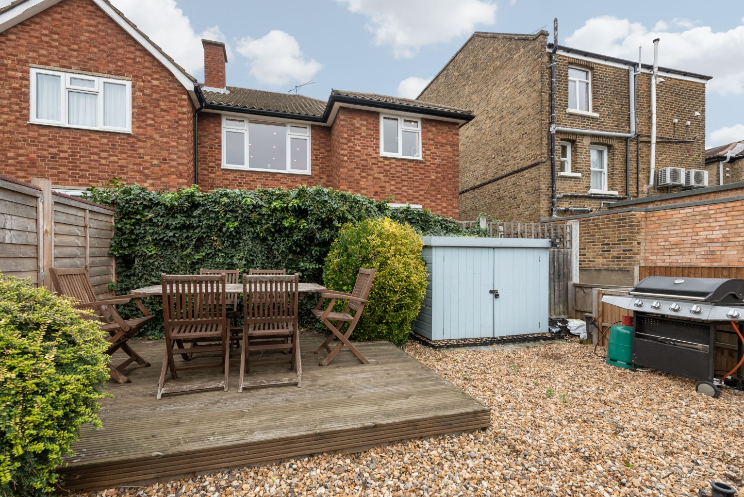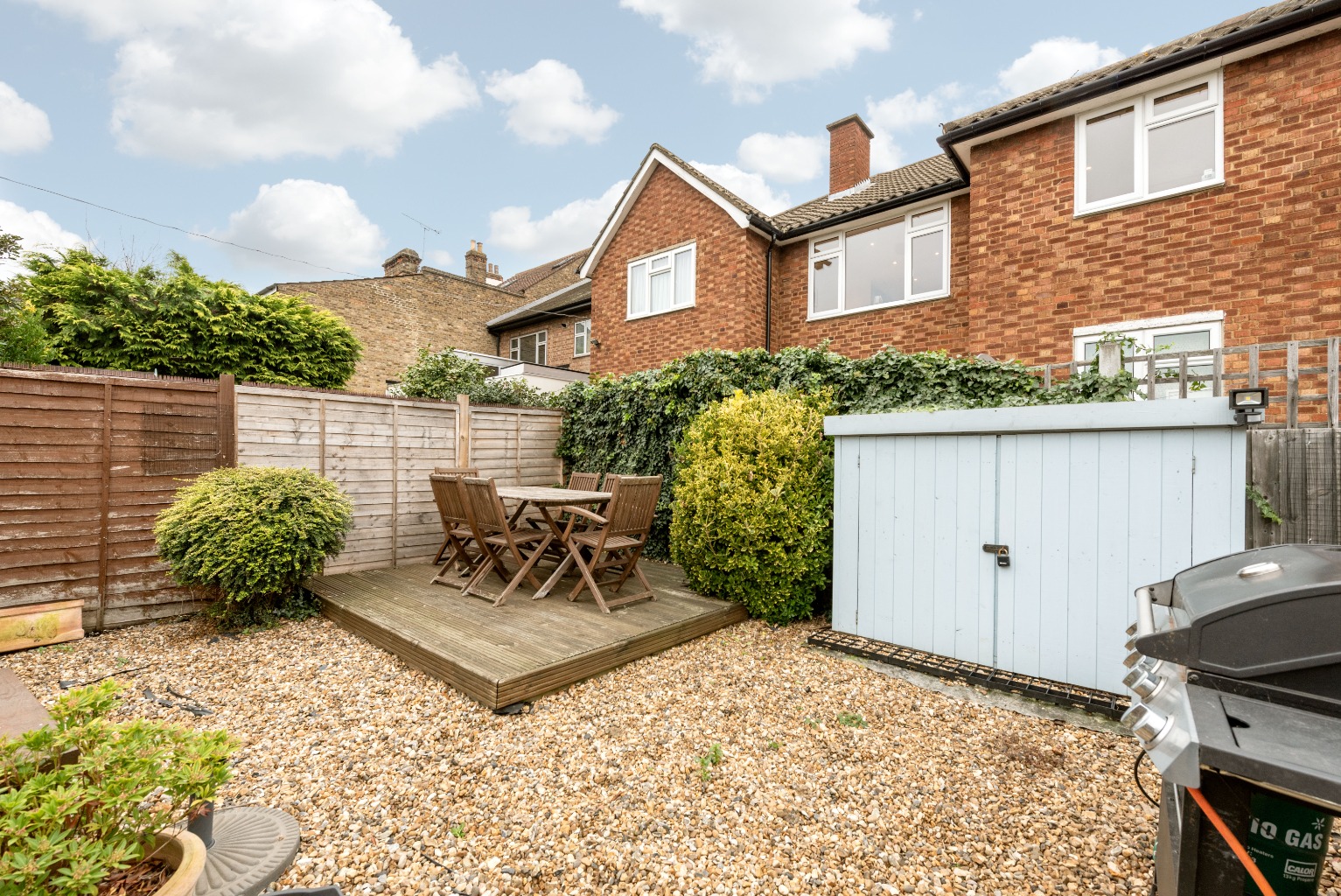 This two bedroom flat also has its own low-maintenance South facing garden garden space at the rear. It's fenced off and self-contained with a decking area for entertaining, and the remainder of the garden is gravelled with some mature shrubbery dotted around. It's an immediately useable space for the not-so green-fingered but equally could easily be modified by a more adventurous gardener.