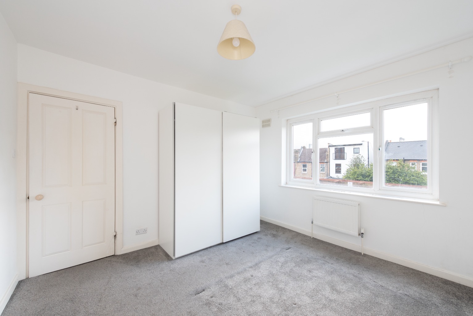 Exiting the bathroom, bedroom one (the larger of the two bedrooms in this property) can be found on your left-hand side. Another bright and airy room, it’s beautifully presented with white walls and a silver/grey carpet – providing a neutral canvas which you could quickly personalise with some colour accents and artworks of your choosing. The room comes with a large double wardrobe, and will easily accommodate a comfy double bed and your bedside tables. A gorgeous space that’s ready to relax right into.