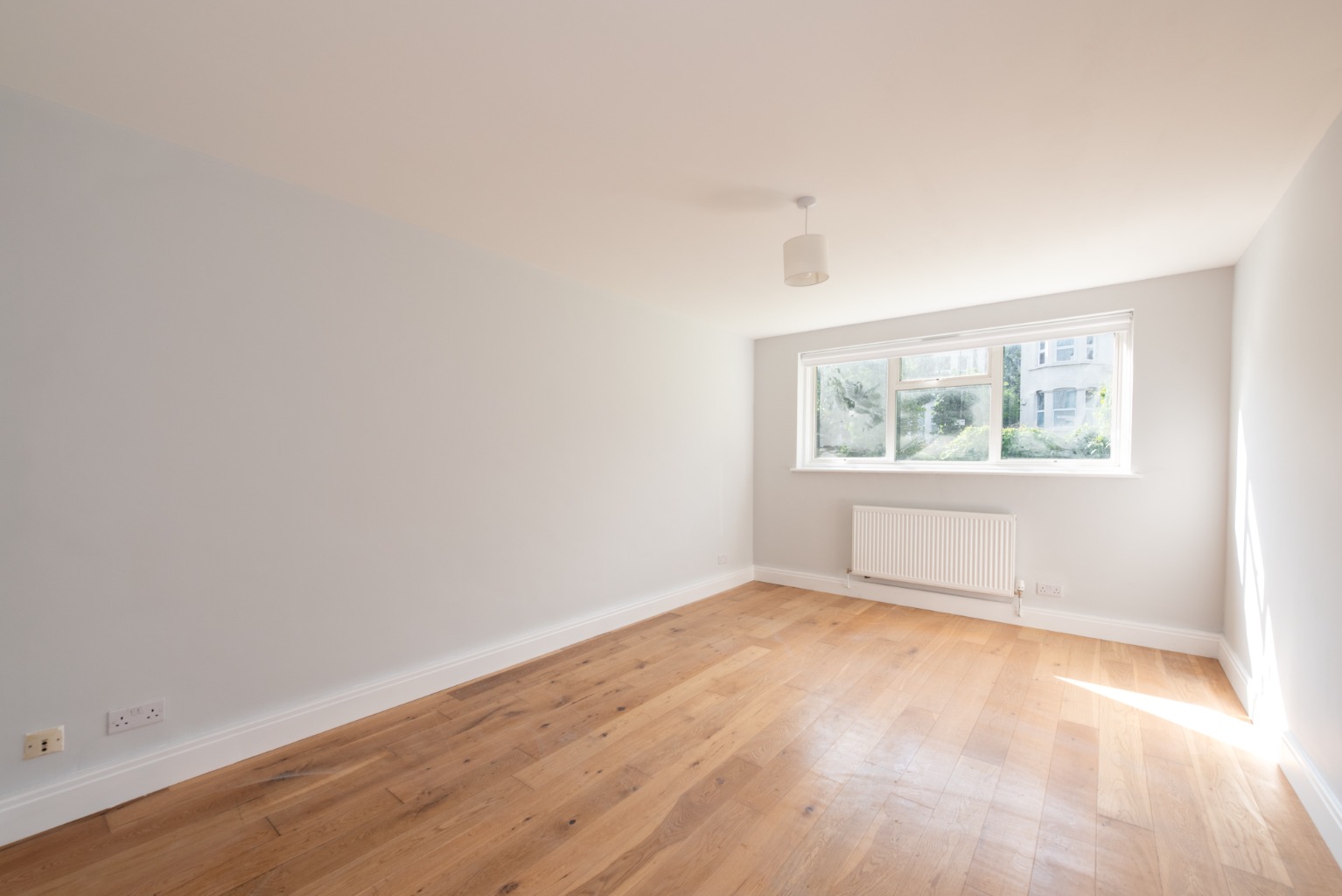 Next, the spacious living room with its large window, offering good natural light and a view over the main garden area. There’s space for all your furniture plus a dining table. Finally bedroom one, which also looks out over the main gardens, and is another double room with plenty of space.