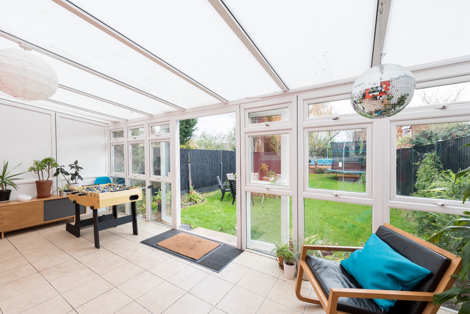 The next door leads you into the large conservatory. It stretches the entire width of the property at twenty feet across and would be an excellent sunroom, simply add a wicker sofa and a coffee table and some houseplants – which would thrive in here. It's easy to imagine getting stuck into a good book on a sunny Sunday morning with a hot cup of tea or coffee.
