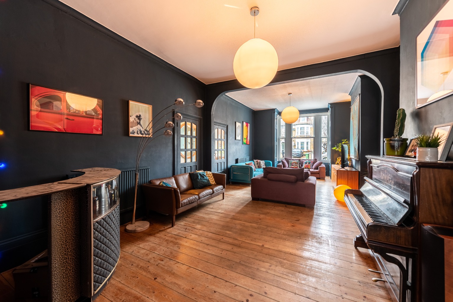 The two doors on the left-hand side lead into the double reception room or the "grand hall" as the current owners playfully dubbed it, and it's easy to see why. It's a magnificent space with a central feature archway, more exposed floorboards and it stretches from the huge front bay window to the glass doors of the office/utility room at the rear – providing plenty of natural light from both ends. Made for spending time with your family, chilling out, playing, hosting and entertaining, it's the perfect party room or hang-out zone, with room enough for a large family to not be treading on each other's toes while still delivering a feeling of togetherness.
