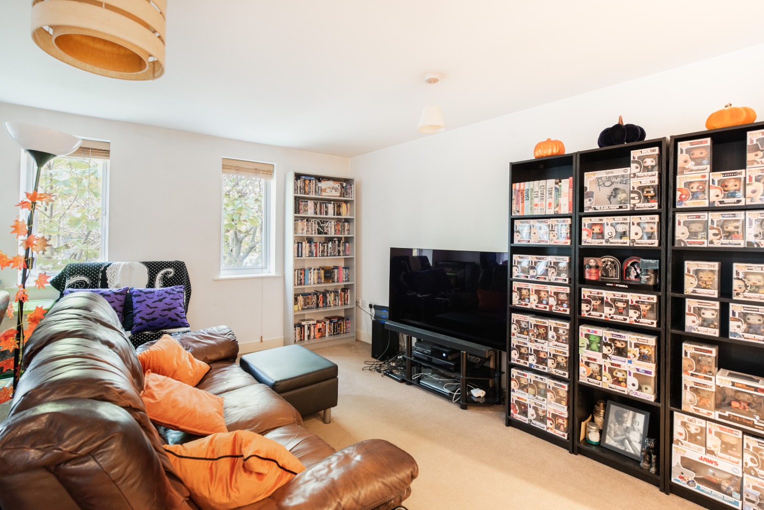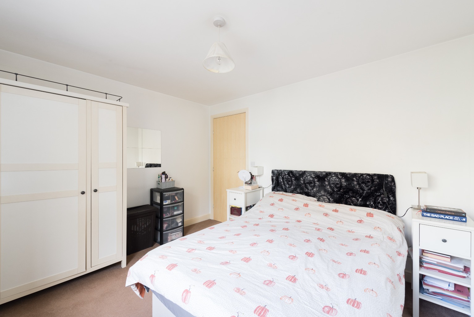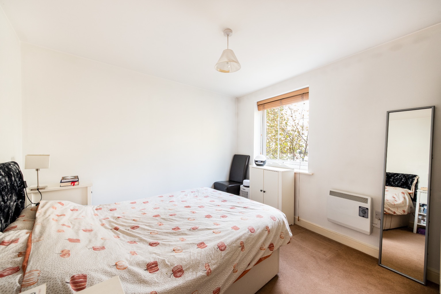 Directly opposite the bathroom is the door to your spacious bedroom. It's light and airy with plenty of room for a dressing table, large bed and space either side for bedside units to hold your lamp, phone and bedtime reading material. There's also plenty of wall space for your artwork, pictures or extra shelving, and the large window gives the bedroom a decent amount of natural light which adds to its welcoming and relaxing vibe.
