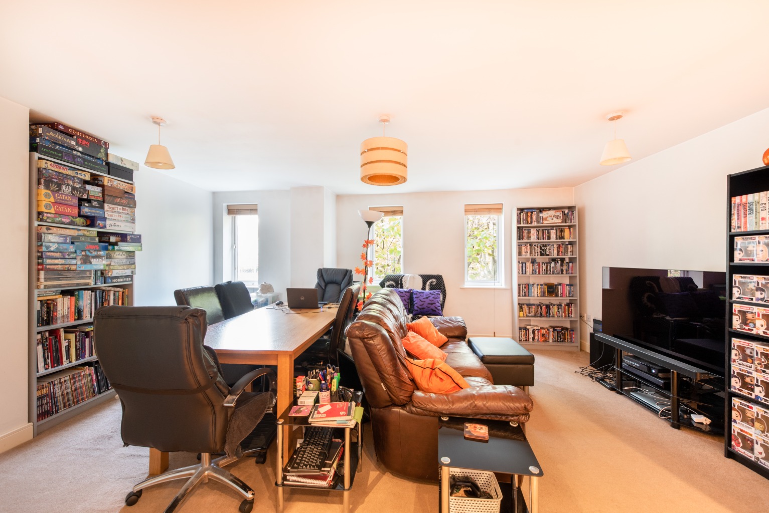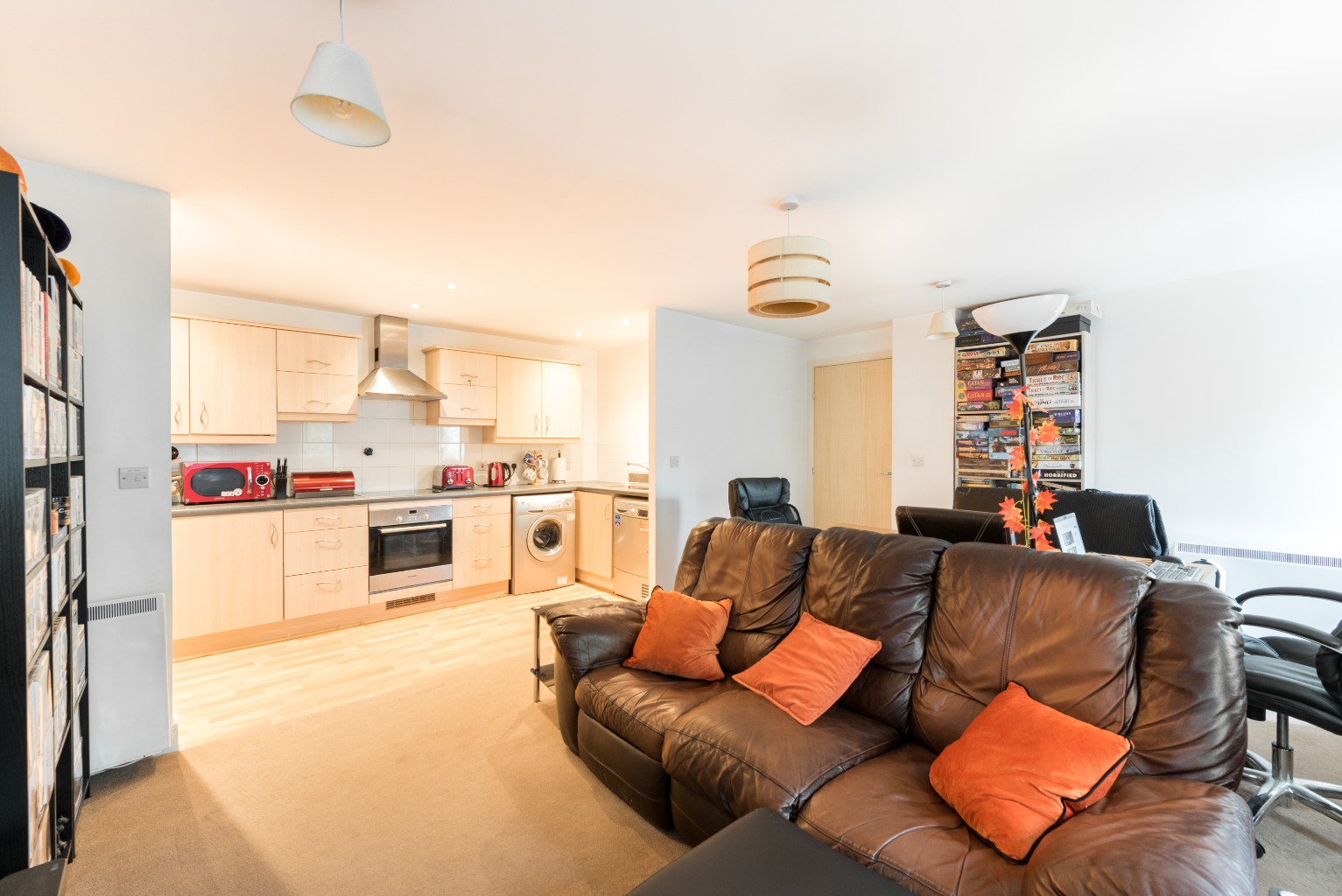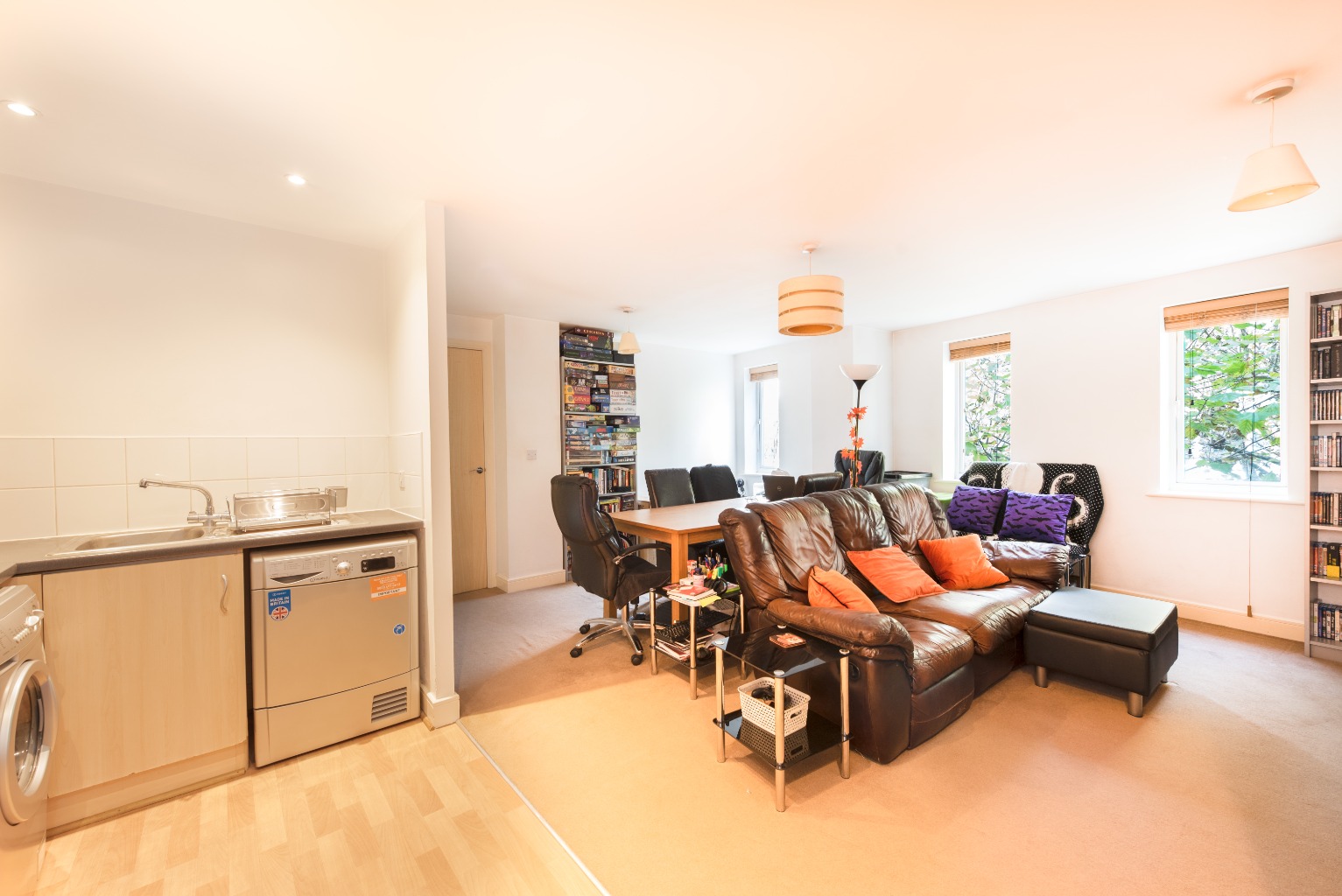 The final door at the end of the hallway is the large living area with combined kitchen/dining room – a practical and sociable space that's great for chilling after a busy day or hosting friends and family.