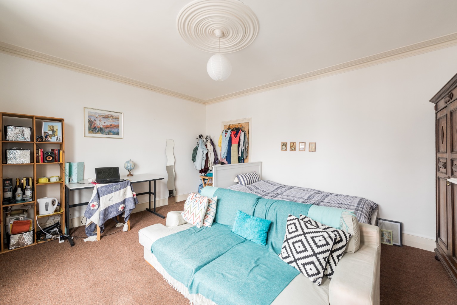 The last bedroom and final room of the property is a real showpiece. It's a truly impressive space with two large sash windows bathing the room with beautiful natural rays. There's another magnificent cast iron fireplace with a decorative surround, and the recesses created by the chimney breast are perfect for wardrobes or display cabinets – and the room would easily take a large double bed with bedside units too. The wooden flooring has a wonderful patina acquired through use and age for a cosy and homely feel. The size of this room would make it a fabulous grown-up escape and it's easy to imagine yourself reading the papers in bed on a Sunday morning with a steaming mug of tea.