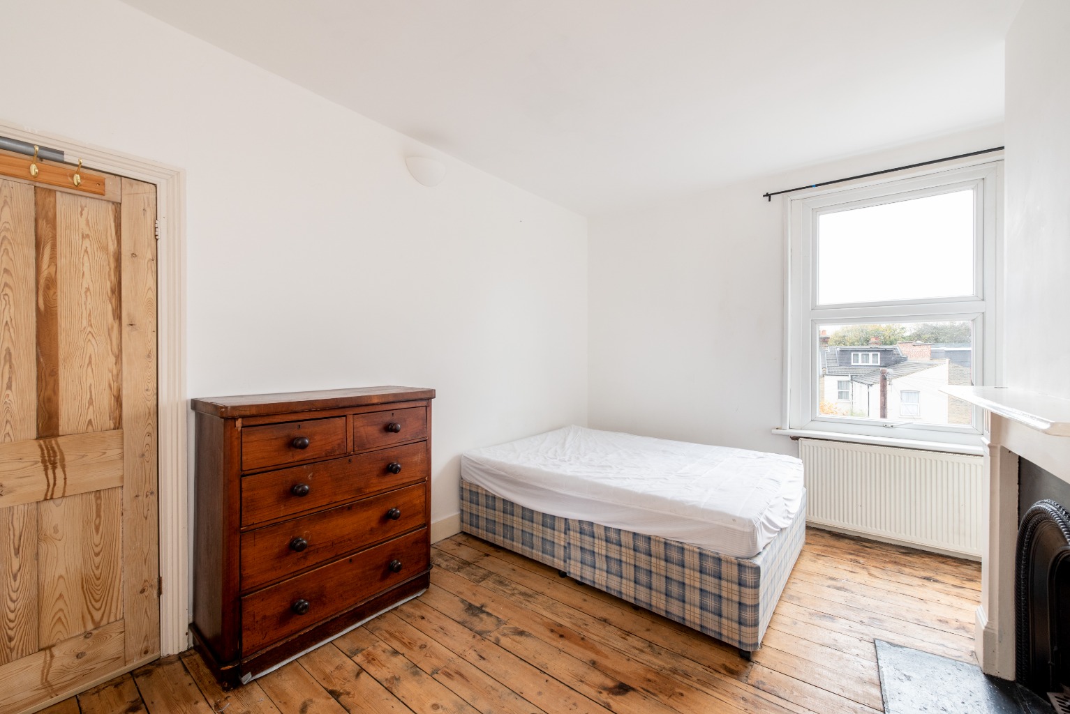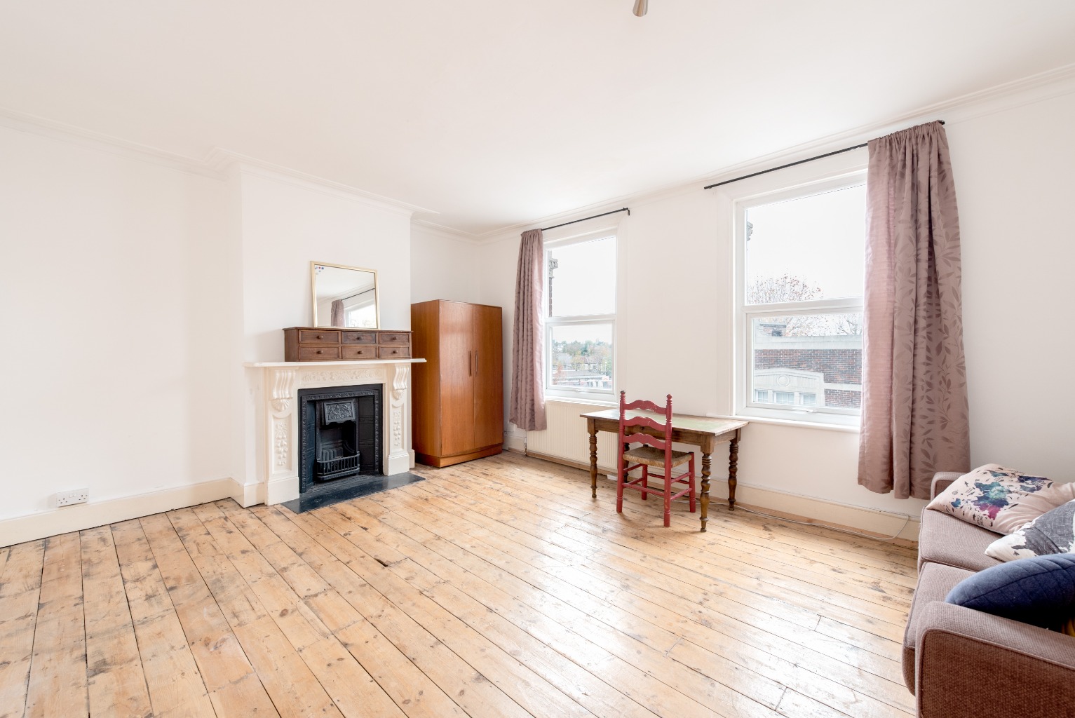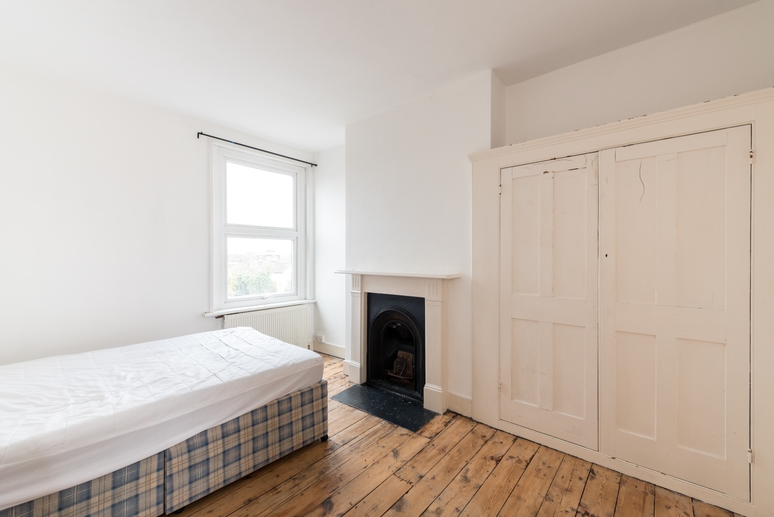 Leaving the reception room, let's head up the stairs to the other two bedrooms. The first of these rooms is a carbon copy of the first bedroom downstairs. The only difference being that this room is carpeted. Again, you'll notice the original feature fitted wardrobe next to the charming cast iron fireplace. If you don't need to use it as a bedroom, this would make a fabulous home office or nursery – the configuration options of this maisonette can't be undersold, with enough choice to suit any situation or lifestyle.