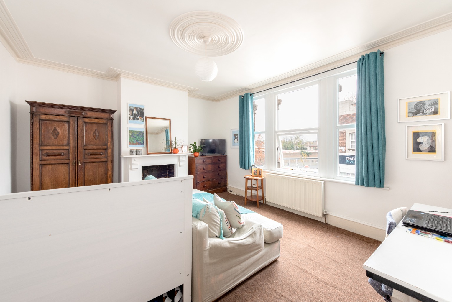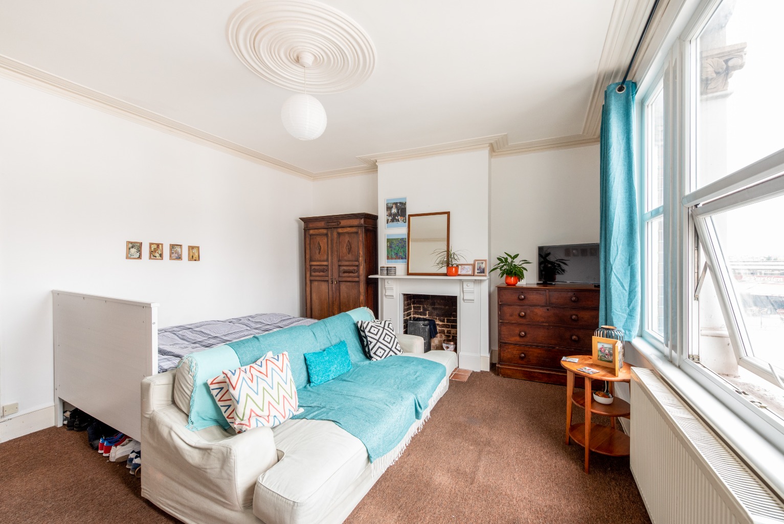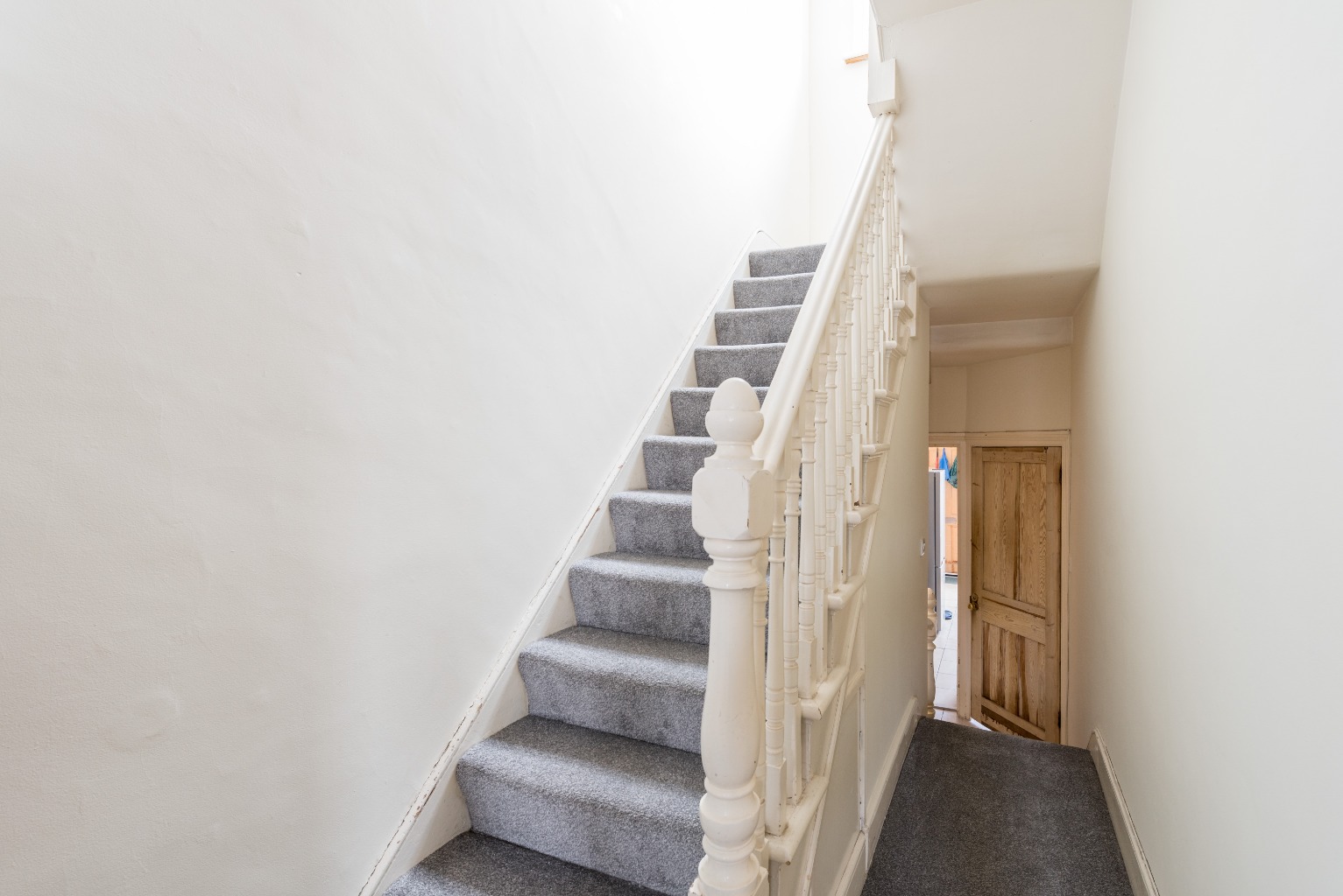 Leaving the reception room, let's head up the stairs to the other two bedrooms. The first of these rooms is a carbon copy of the first bedroom downstairs. The only difference being that this room is carpeted. Again, you'll notice the original feature fitted wardrobe next to the charming cast iron fireplace. If you don't need to use it as a bedroom, this would make a fabulous home office or nursery – the configuration options of this maisonette can't be undersold, with enough choice to suit any situation or lifestyle.
