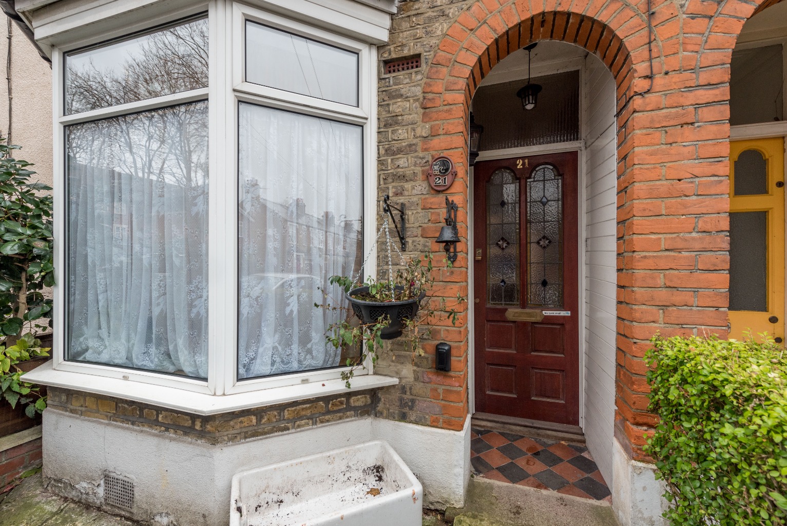 As you approach the property from the road, you'll see a small walled and gated front garden with young shrubbery planted to provide some privacy from passers-by. The facade of the property boasts an original feature bay window and a welcoming recessed front door in a small covered porch area.
