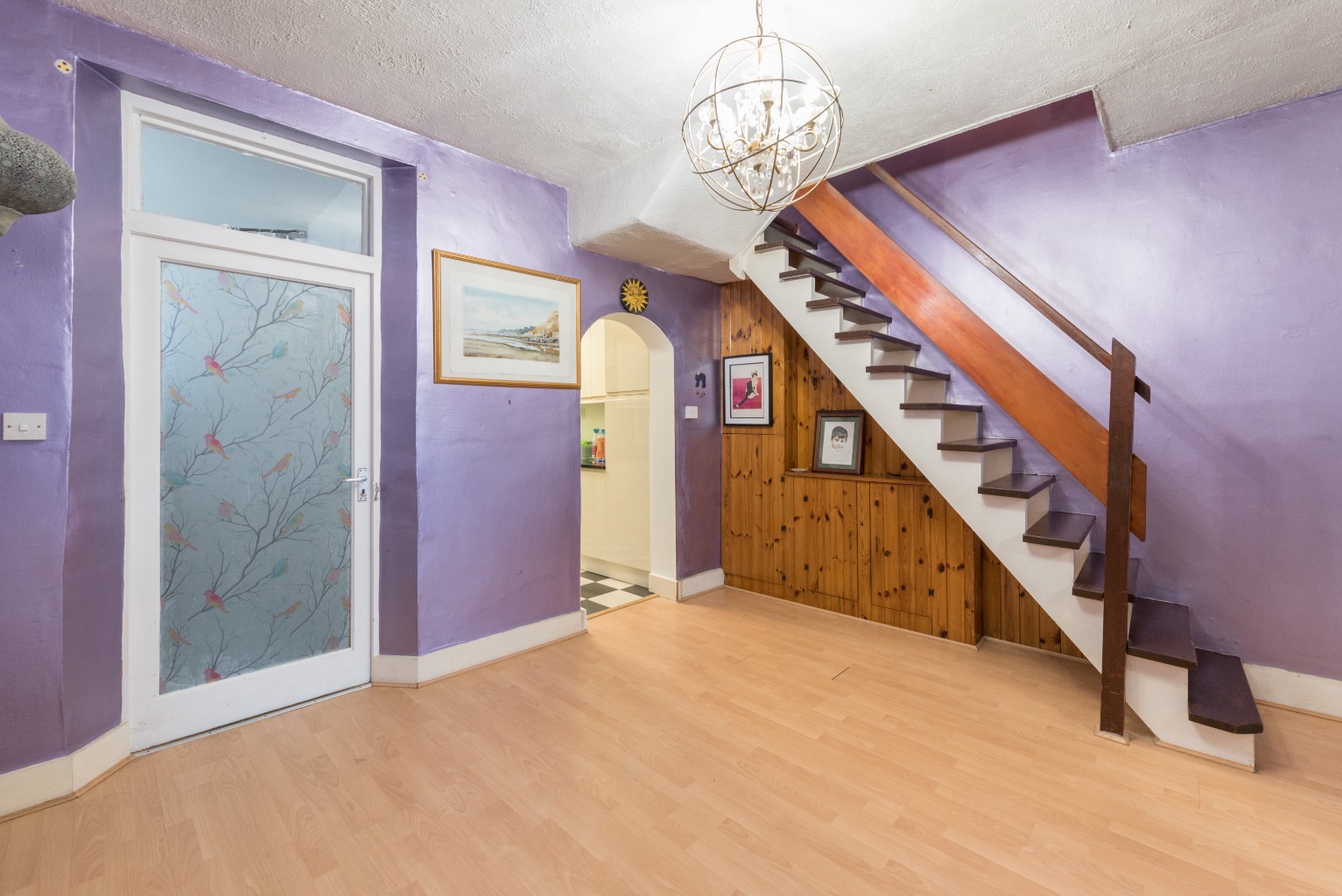 Upon entering the house, the first room you'll find lying to your left is the large double reception area with a fabulous floating staircase leading upon to the first floor – complete with some wooden built-in storage cupboards cleverly nestled below to utilise this area. It's a huge space with plenty of light from the magnificent bay window at the front of the property, separated into two distinct areas with a large archway. From here, due to the open plan nature of the design, you can see straight through to the kitchen towards the rear of the property, providing a wonderful sense of space. It's easy to look past the slightly 'tired' décor and see how much potential this property offers. A little re-plastering and painting wouldn't go amiss but the sheer size and scope of the space gives plenty of options – and this little interior project will allow you to create your ideal environment and really put your personal stamp on your new home. In the front reception is a beautifully sculpted fireplace with wooden surround and the recesses either side allow space for storage/bookcases or a TV unit, with a large sofa on the opposite wall. The rear reception area is large enough to take family sized dining table for those special occasions, with its position next to the kitchen making it super functional. Alternatively it would also allow for an expanded living area, or act as a snug, entertainment room, playroom or even a home office.