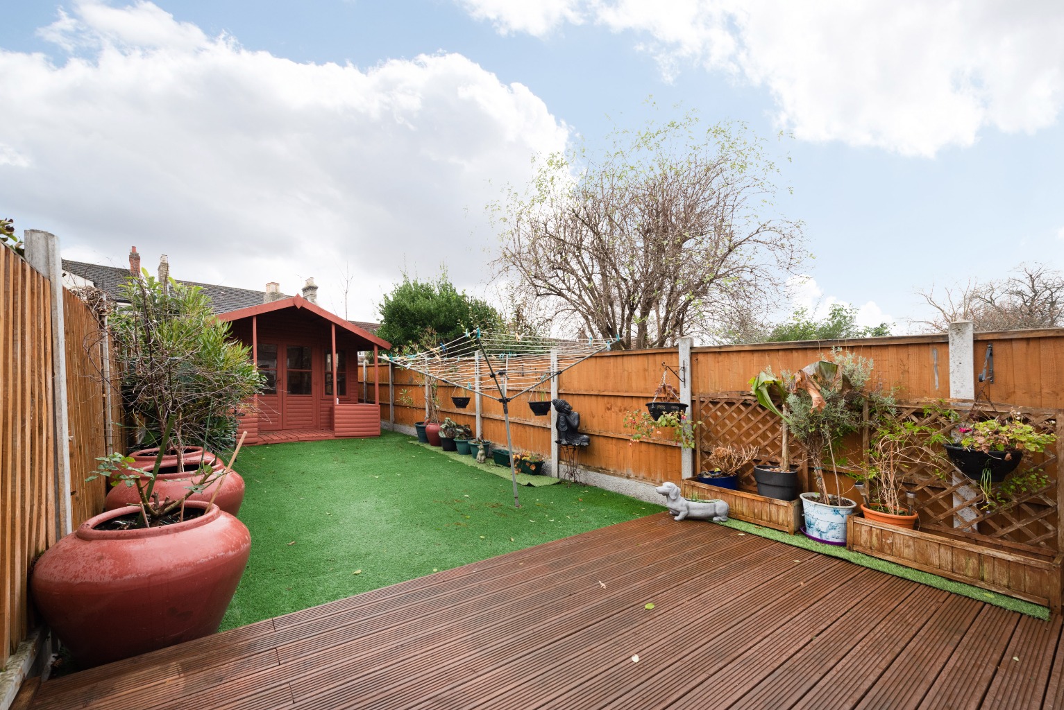 Out in the garden, you'll find an area of decking for entertaining and the useful addition of Astroturf instead of lawn for a minimal fuss, low maintenance space. At the end of the garden is a lovely summerhouse which would be useful as a home office, artist's studio, hobby workshop or just as a comfortable little escape in which to enjoy a book and a glass of wine on a summers evening.