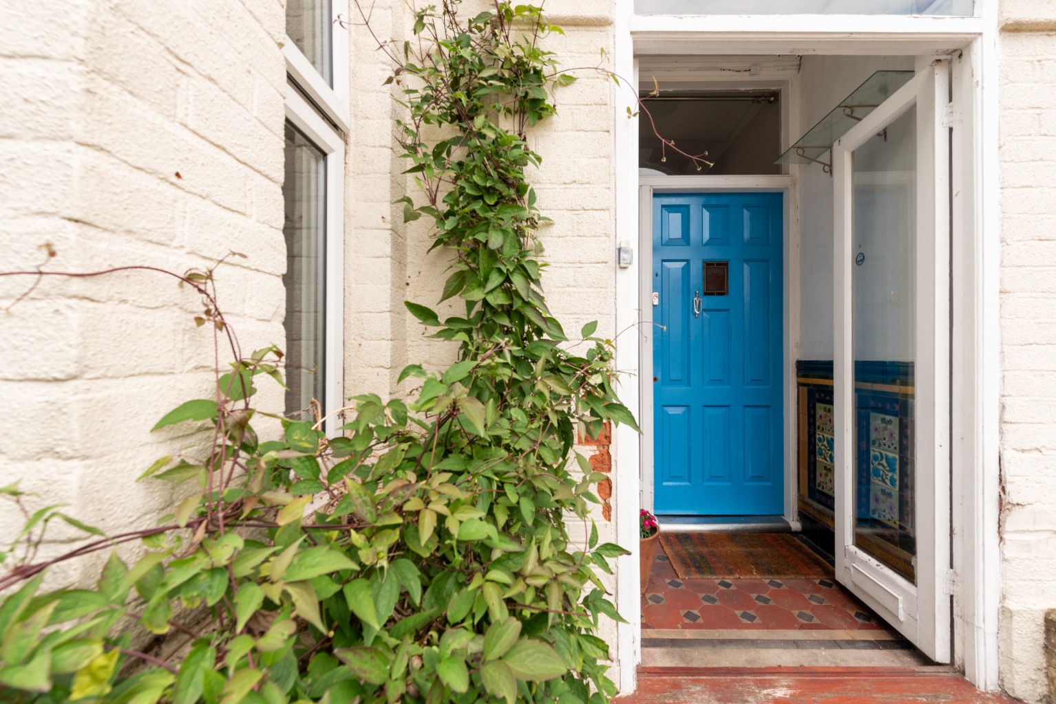 The porch has fully glazed outer doors creating a small, sheltered vestibule with original geometric floor tiles and tiled panels to the lower portion of the walls, with a tiled dado rail above. From the porch, enter the property through the main front door into the hallway. This space feels light and airy, a feeling amplified by the unusual layout with the stairs offset to the left – enabling an open view right through the house, including a tantalising glimpse of the rear garden. Decoration is simple with light cream walls and there are beautifully preserved original floorboards. There’s space for coats and shoes and a large radiator to guarantee a warm welcome.