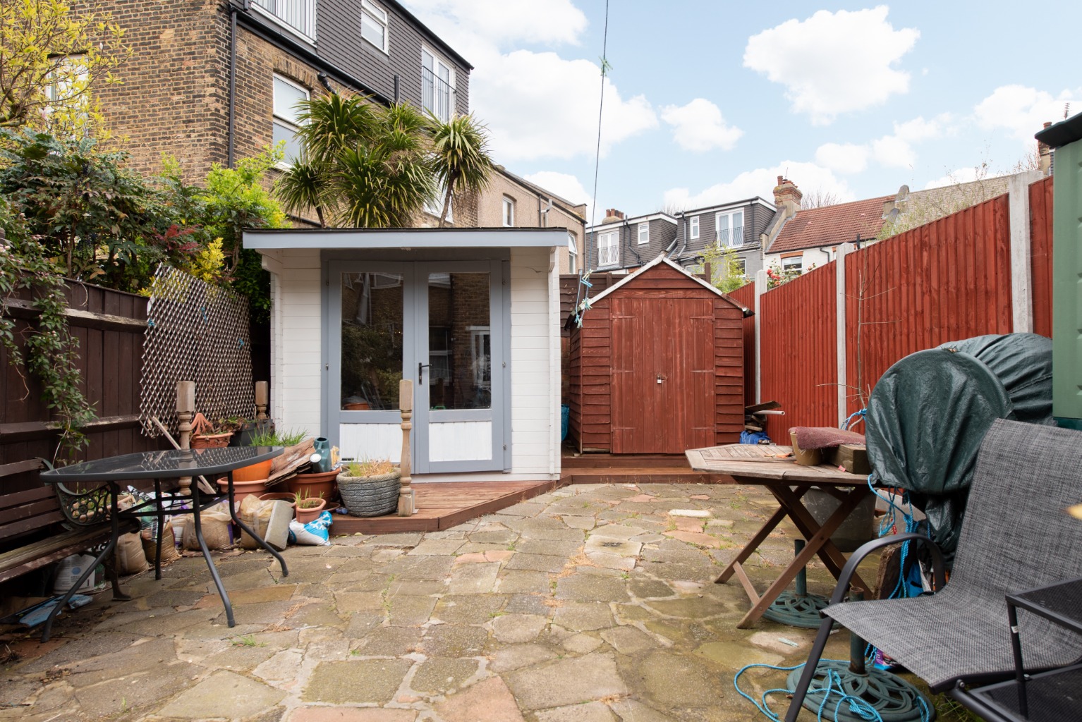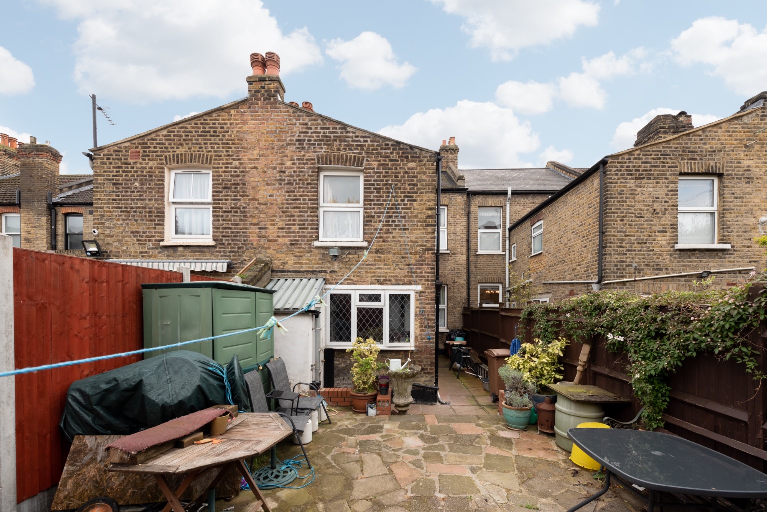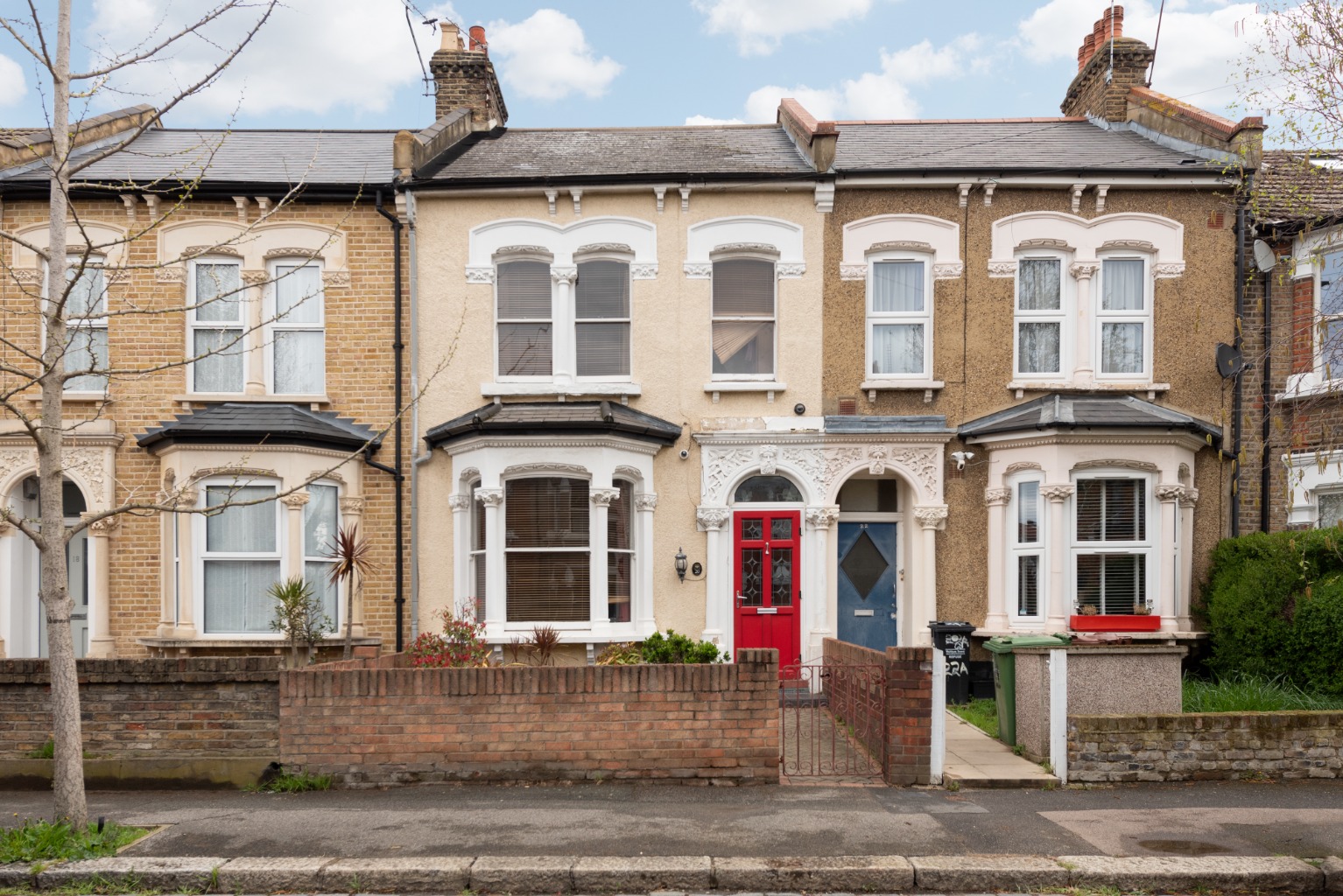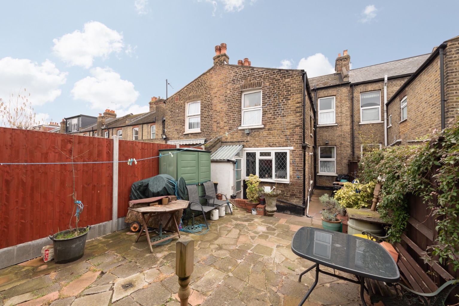 Guide Price - £750,000-£775,000 - A gorgeous and spacious three bedroom Victorian terraced villa for sale in the sought-after Bushwood area of Leytonstone. Ideal for family living with two reception rooms, a large kitchen-diner and three large bedrooms, there’s also a rear garden which includes a summer house and exceptional local amenities on your doorstep. Approaching from the quiet, tree-lined residential street, you’ll immediately be struck by the exceptional architectural detail on the property’s façade. There are intricately detailed lintels, columns and mullioned windows, which include a carving of the Green Man above the front door as a sign of welcome. The small front garden, which affords privacy from the street, is primarily paved for low maintenance – and being south-facing has the potential to be transformed into a sunny cottage garden, with space for a seating area from where you can watch the world go by. Enter through the part-glazed front door and you’ll find yourself in a small vestibule which leads into the main hallway via a second, fully glazed door. The bright, long hallway provides access to the stairs to the first floor and all downstairs rooms, and offers plenty of space for coat and shoe storage, plus a large radiator and attractive timber laminate flooring. The first door to your left leads into the first reception room. With its lovely south-facing bay window bringing in lots of natural light and its abundance of original features, this is a wonderful family sitting room. There’s space for comfortable sofas, an entertainment unit, bookcases and side tables, plus the potential for a real statement furniture piece in the bay window which would perfectly emphasise this room’s sense of grandeur. Walls are decorated in a soft cream with a feature wall in complementary cappuccino, which combined give the room a sense of tranquillity guaranteed to promote relaxation and enjoyment of time spent with family and friends. The traditional timber fire surround with tiled insert and coal effect gas fire add to the feeling of comfort. Floors are a rich mid-tone timber laminate and there’s plenty of space for a large and stylish rug for an extra touch of luxury. The extensive wall space would also be the ideal location to display your favourite artwork, an ornate mirror or your treasured photos. Returning to the hall and the next door to the left takes you into the second reception room. Sharing many of the first reception room’s features such as picture rails and deep coving, this would make an ideal dining room or second sitting room. Decoration in this room is modern with light grey walls and carpet, complemented by a timber fire surround with tiled insert. This room looks out onto the side return area of the garden and there would be potential to create direct access to the garden with a French window, which would also maximise the availablenatural light. The final room on the ground floor is the attractive kitchen-diner, refurbished just a year or so ago. The first part of the room is currently used as an informal dining space with a kitchen table looking out onto the side garden, and from here there’s also access to the garden via a glazed door. You’ll note space along the opposite wall for some small units or informal seating, and a door leads down to a useful basement storage area. The second half of this space is laid out as a U-shaped kitchen, with a large window overlooking the rear garden and a plethora of base and wall units and plenty of work surfaces for prepping those culinary treats. The cabinets are in a modern light grey with contrasting black hardware, and the worksurfaces in a butcher’s block pattern laminate. The free-standing cooker with gas hob has a stainless steel extractor above and there’s plumbed-in space for a washing machine and tumble drier or dishwasher – plus the modern gas combi boiler is also housed in this area. Splashbacks are formed from bevelled-edge grey tiles with a gloss finish which are laid in a stylish running bond pattern, and the room is finished with contemporary, industrial themed, greyed oak laminate flooring. Before we head upstairs, we’ll investigate the rear garden which is accessed through the glazed door to the side return. The garden is largely paved to maximise the potential for entertaining and relaxing, and you’ll also note a lean-to outbuilding against the exterior kitchen wall. Additionally, on a raised deck area to the rear of the garden, there’s also a timber shed and an attractive summerhouse, which could easily be converted into a charming home office, studio or relaxing retreat with the integration of the necessary utilities. We’ll return through the kitchen now and back to the hall to allow us to explore the first floor. Typical for this period of property, even the staircase has well-crafted details including turned wood newel posts, balusters and handrail. The spilt-level landing features a handy built-in cupboard on the lower level with additional space for some free-standing storage on the upper level. Immediately facing the top of the main staircase is bedroom three, which looks out onto the rear garden. There’s room here for a small double bed, or alternatively this would make a fantastic child’s bedroom, nursery or study space. Decoration is simple with white walls and ceiling and a complementary light timber laminate floor. There’s also a large double glazed window with a radiator below. The next room along the landing and to the right is the family bathroom. This is a large space, which would benefit from a little modernisation to provide a generous, luxurious bathroom fit for modern family life. There’s currently a vanity unit with large inset hand basin and matching tall storage cabinet, a bathtub with shower and glazed shower panel plush a low flush WC. Walls are fully tiled in white, helping to harness the light coming in through the large double gla
