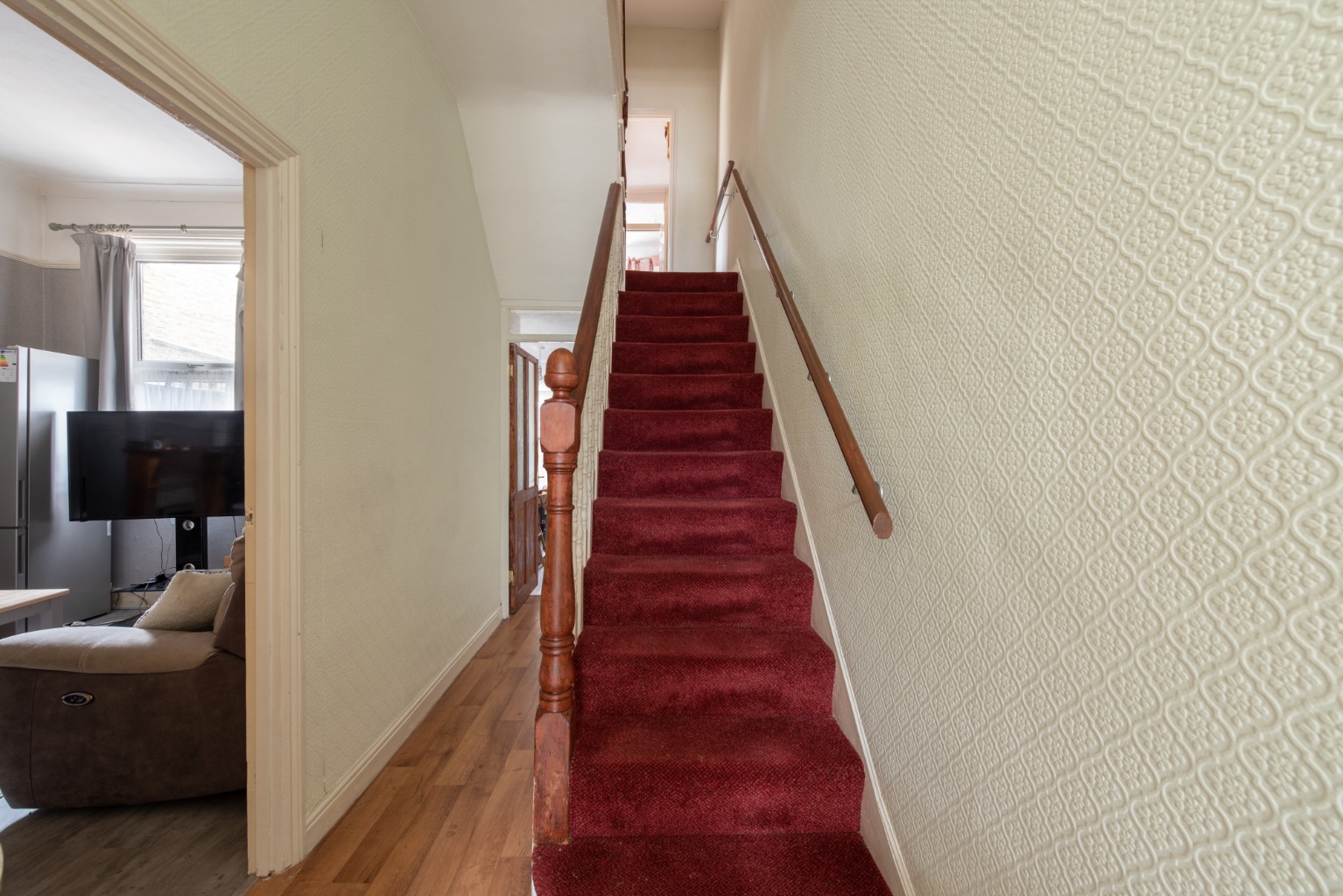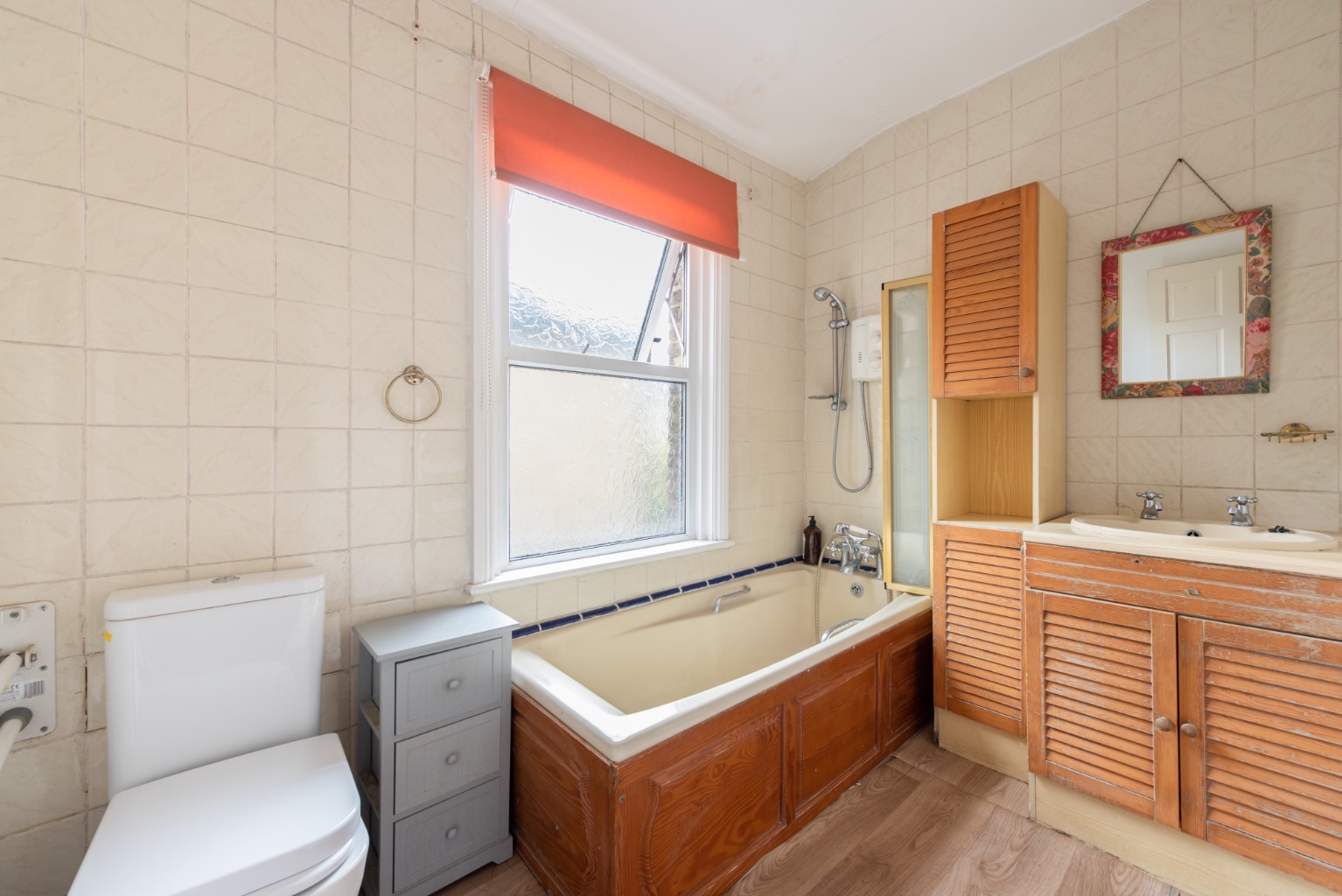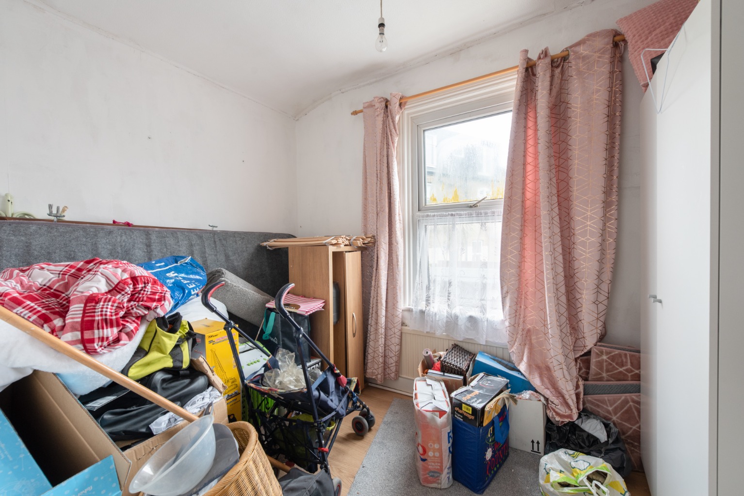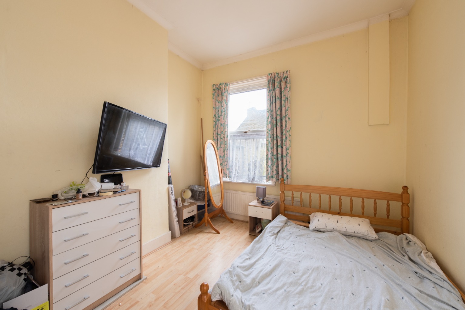Guide Price - £750,000-£775,000 - A gorgeous and spacious three bedroom Victorian terraced villa for sale in the sought-after Bushwood area of Leytonstone. Ideal for family living with two reception rooms, a large kitchen-diner and three large bedrooms, there’s also a rear garden which includes a summer house and exceptional local amenities on your doorstep. Approaching from the quiet, tree-lined residential street, you’ll immediately be struck by the exceptional architectural detail on the property’s façade. There are intricately detailed lintels, columns and mullioned windows, which include a carving of the Green Man above the front door as a sign of welcome. The small front garden, which affords privacy from the street, is primarily paved for low maintenance – and being south-facing has the potential to be transformed into a sunny cottage garden, with space for a seating area from where you can watch the world go by. Enter through the part-glazed front door and you’ll find yourself in a small vestibule which leads into the main hallway via a second, fully glazed door. The bright, long hallway provides access to the stairs to the first floor and all downstairs rooms, and offers plenty of space for coat and shoe storage, plus a large radiator and attractive timber laminate flooring. The first door to your left leads into the first reception room. With its lovely south-facing bay window bringing in lots of natural light and its abundance of original features, this is a wonderful family sitting room. There’s space for comfortable sofas, an entertainment unit, bookcases and side tables, plus the potential for a real statement furniture piece in the bay window which would perfectly emphasise this room’s sense of grandeur. Walls are decorated in a soft cream with a feature wall in complementary cappuccino, which combined give the room a sense of tranquillity guaranteed to promote relaxation and enjoyment of time spent with family and friends. The traditional timber fire surround with tiled insert and coal effect gas fire add to the feeling of comfort. Floors are a rich mid-tone timber laminate and there’s plenty of space for a large and stylish rug for an extra touch of luxury. The extensive wall space would also be the ideal location to display your favourite artwork, an ornate mirror or your treasured photos. Returning to the hall and the next door to the left takes you into the second reception room. Sharing many of the first reception room’s features such as picture rails and deep coving, this would make an ideal dining room or second sitting room. Decoration in this room is modern with light grey walls and carpet, complemented by a timber fire surround with tiled insert. This room looks out onto the side return area of the garden and there would be potential to create direct access to the garden with a French window, which would also maximise the availablenatural light. The final room on the ground floor is the attractive kitchen-diner, refurbished just a year or so ago. The first part of the room is currently used as an informal dining space with a kitchen table looking out onto the side garden, and from here there’s also access to the garden via a glazed door. You’ll note space along the opposite wall for some small units or informal seating, and a door leads down to a useful basement storage area. The second half of this space is laid out as a U-shaped kitchen, with a large window overlooking the rear garden and a plethora of base and wall units and plenty of work surfaces for prepping those culinary treats. The cabinets are in a modern light grey with contrasting black hardware, and the worksurfaces in a butcher’s block pattern laminate. The free-standing cooker with gas hob has a stainless steel extractor above and there’s plumbed-in space for a washing machine and tumble drier or dishwasher – plus the modern gas combi boiler is also housed in this area. Splashbacks are formed from bevelled-edge grey tiles with a gloss finish which are laid in a stylish running bond pattern, and the room is finished with contemporary, industrial themed, greyed oak laminate flooring. Before we head upstairs, we’ll investigate the rear garden which is accessed through the glazed door to the side return. The garden is largely paved to maximise the potential for entertaining and relaxing, and you’ll also note a lean-to outbuilding against the exterior kitchen wall. Additionally, on a raised deck area to the rear of the garden, there’s also a timber shed and an attractive summerhouse, which could easily be converted into a charming home office, studio or relaxing retreat with the integration of the necessary utilities. We’ll return through the kitchen now and back to the hall to allow us to explore the first floor. Typical for this period of property, even the staircase has well-crafted details including turned wood newel posts, balusters and handrail. The spilt-level landing features a handy built-in cupboard on the lower level with additional space for some free-standing storage on the upper level. Immediately facing the top of the main staircase is bedroom three, which looks out onto the rear garden. There’s room here for a small double bed, or alternatively this would make a fantastic child’s bedroom, nursery or study space. Decoration is simple with white walls and ceiling and a complementary light timber laminate floor. There’s also a large double glazed window with a radiator below. The next room along the landing and to the right is the family bathroom. This is a large space, which would benefit from a little modernisation to provide a generous, luxurious bathroom fit for modern family life. There’s currently a vanity unit with large inset hand basin and matching tall storage cabinet, a bathtub with shower and glazed shower panel plush a low flush WC. Walls are fully tiled in white, helping to harness the light coming in through the large double gla
