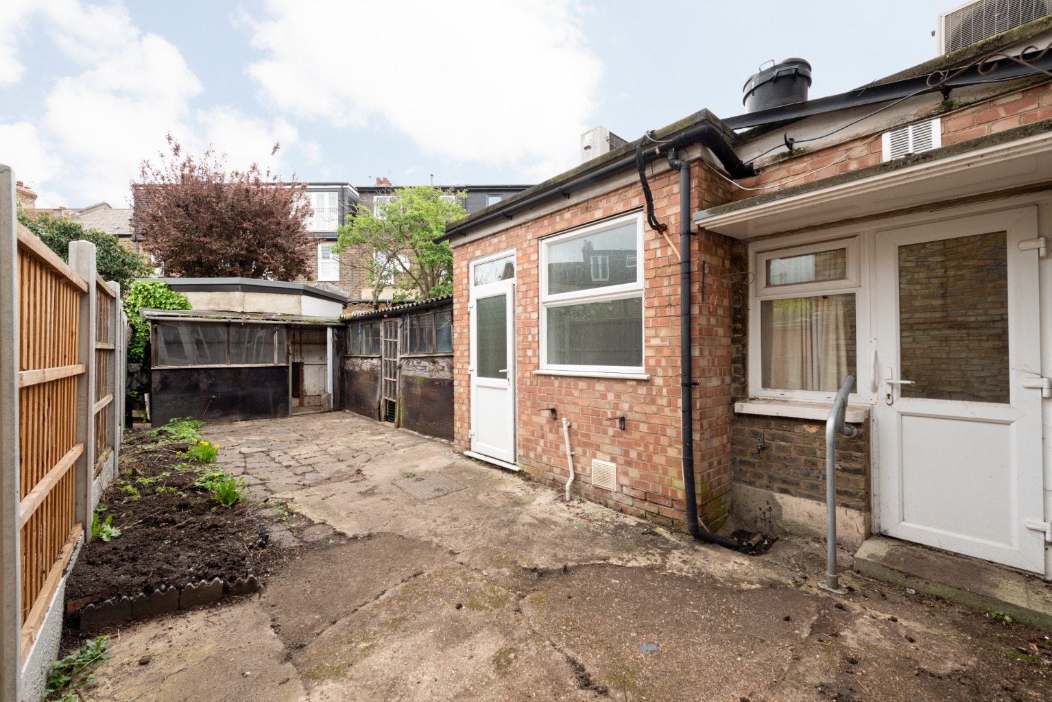 A useful downstairs shower room is accessed from the kitchen and beyond that is a lobby with a door to a separate WC and additional access to the rear garden – measuring in at a fabulous 36ft. The garden currently has a terraced area and planting border, along with a series of outbuildings, which if removed would create potential for a generous, private family garden.