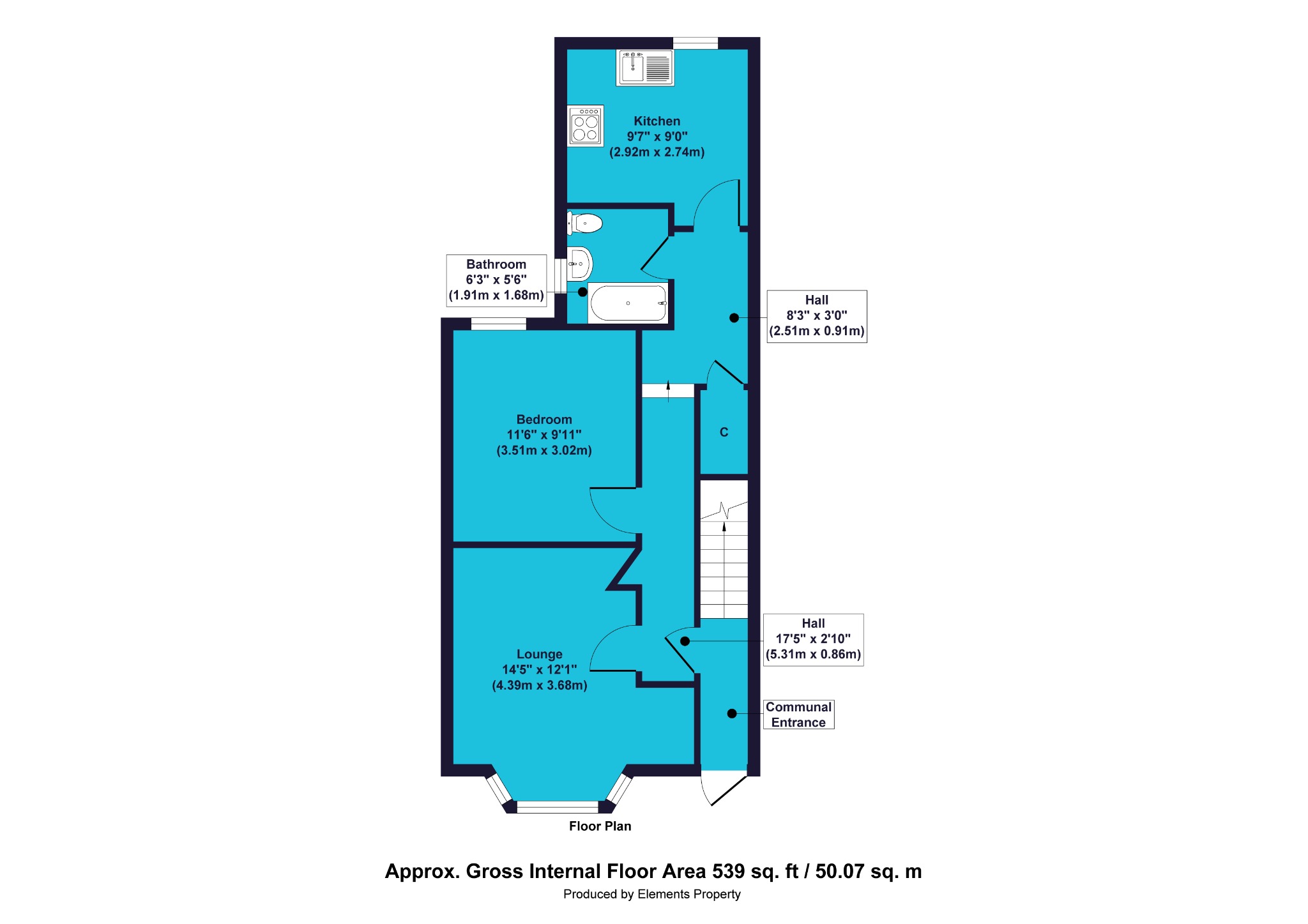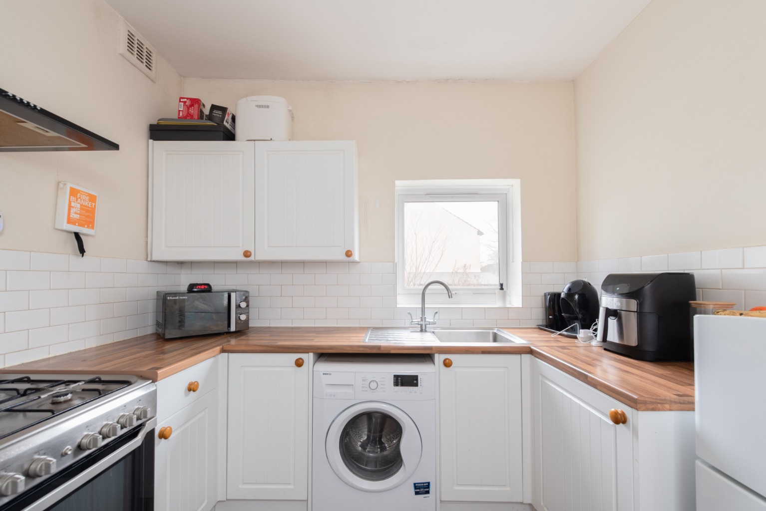 With a wide pavement and front garden positioning this property back from the road, the check-tiled stairs lead to the sheltered main door, with the flat’s entrance door to the lefthand side as you enter.
