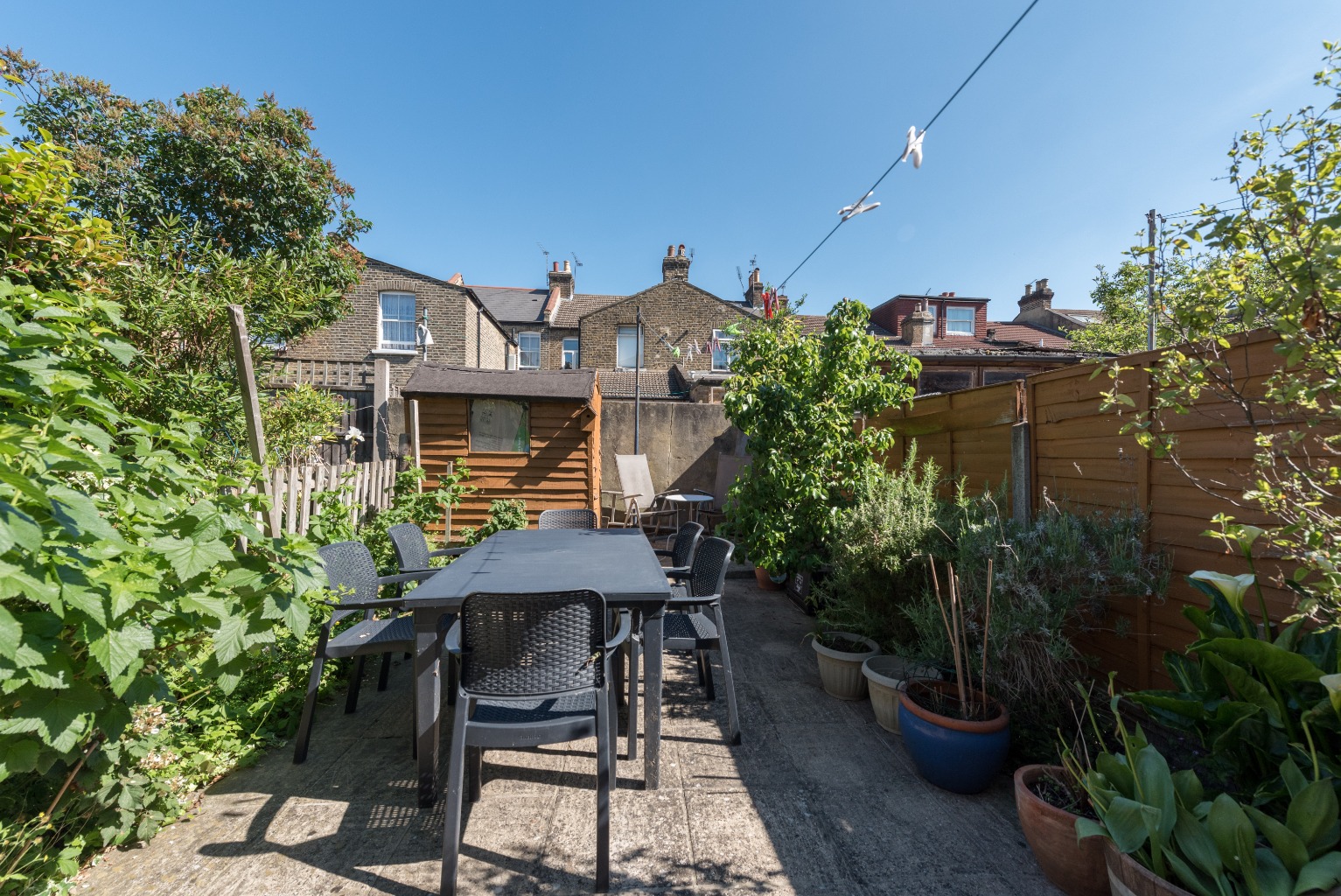 There's another door to the rear garden here, just take a left as you step outside and you'll see the beautiful combination of easy-to-maintain patio and gorgeous, established borders either side. A lovely spot to catch the sun, relax with a coffee (or something more alcoholic!), entertain or let the kids run riot! There's also a very handy outdoor WC with sink, which is perfect for parties and smaller gatherings. Finally, there's also a shed at the very end of the garden to help you store your tools and BBQ.
