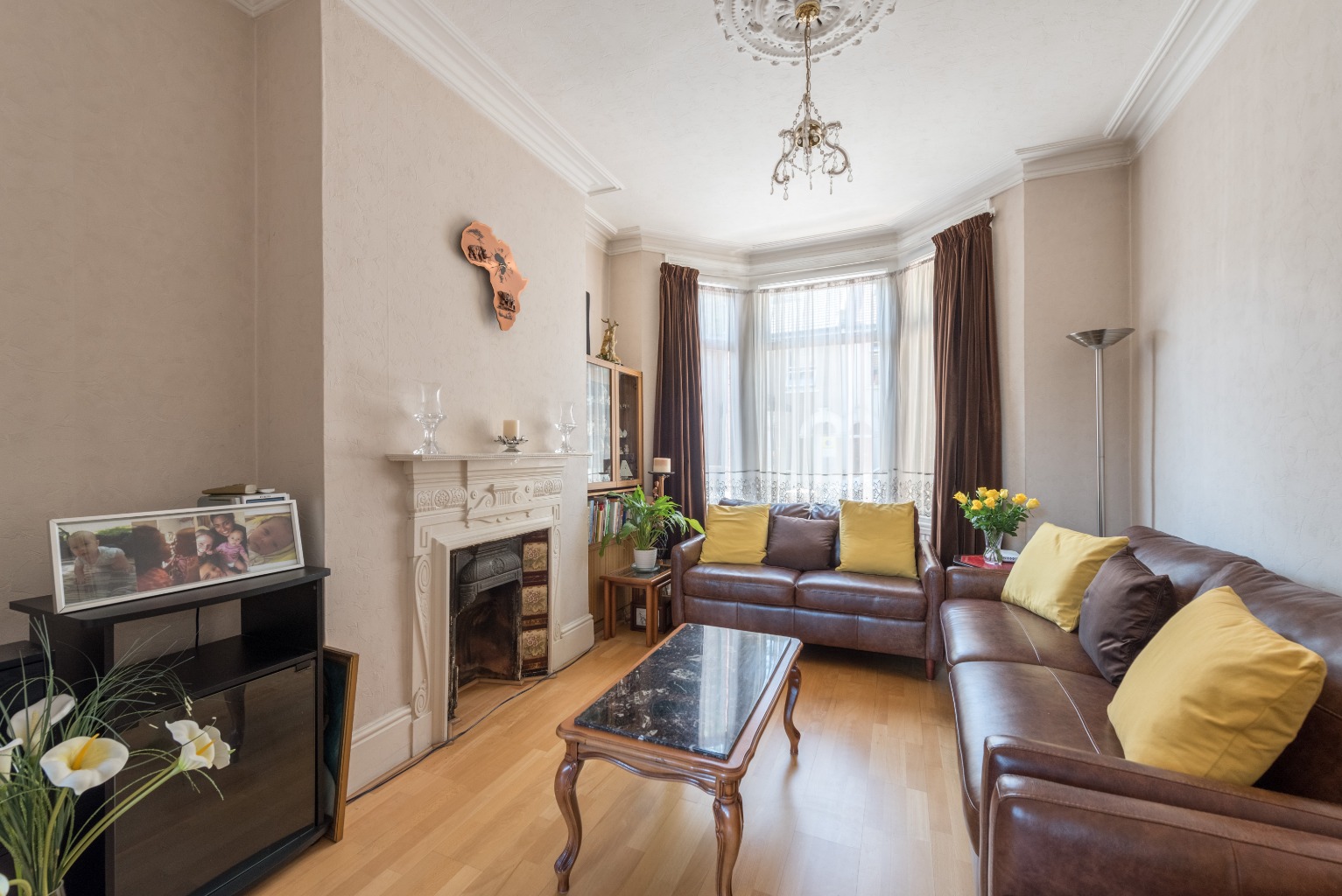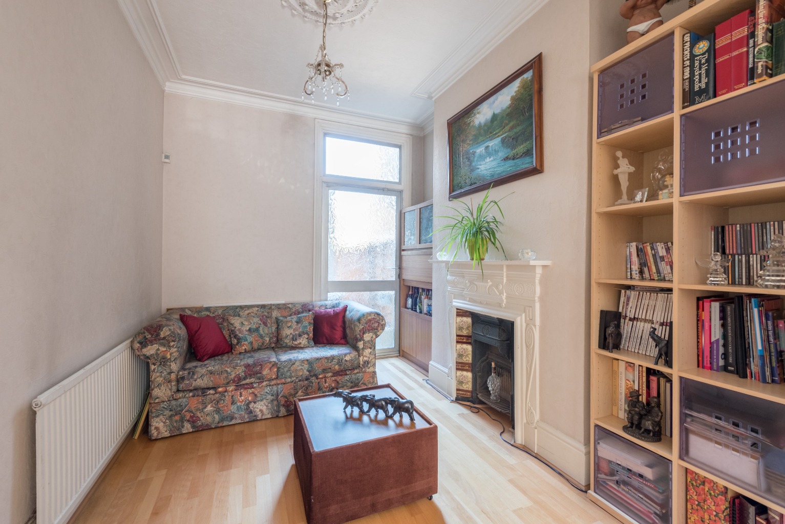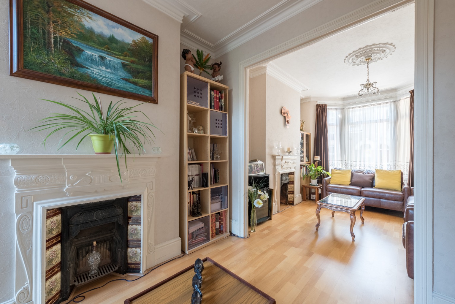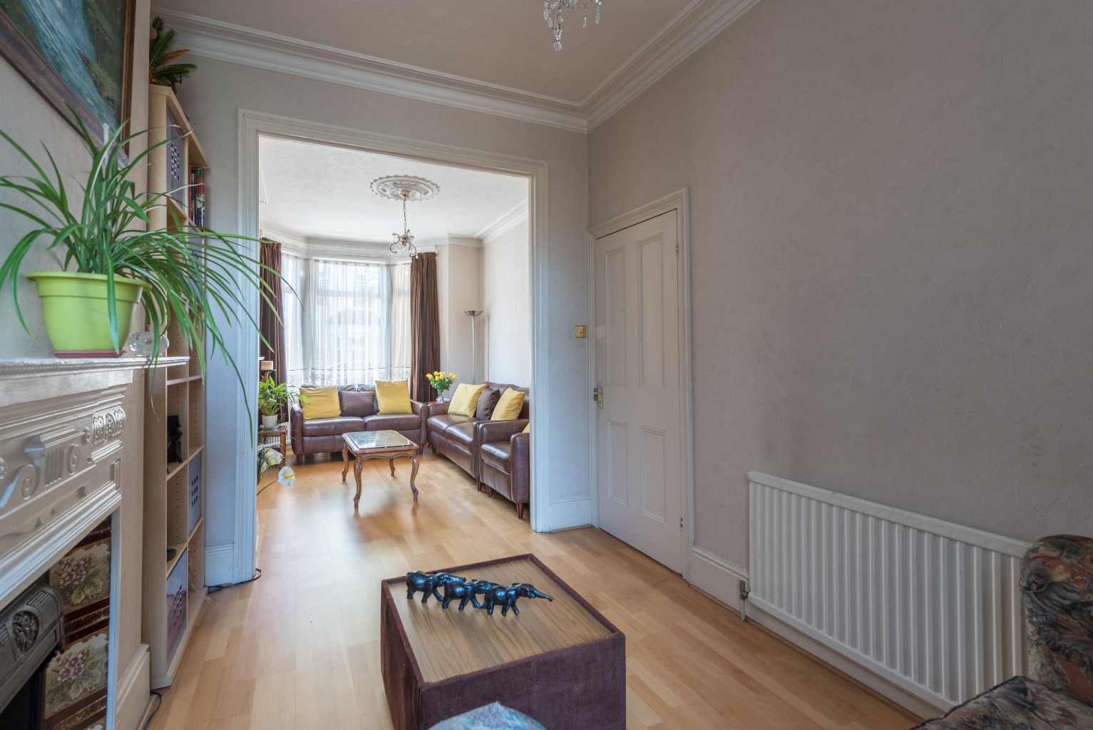 To the immediate right you'll see two doors leading into the generously sized through-lounge. The current occupiers have blocked off the first to allow more versatility within, so as you head through the second door you arrive in the rear of the space. Down to the front of this sprawling lounge, you'll notice one of the two beautifully maintained original fireplaces plus a large, sunny bay window overlooking the street. Recesses either side of the fire offer opportunity for storage, display or entertainment units, a feature mirrored to the rear – there really is room here to create any configuration of furniture, from your media, to a chill-out space and even a table and chairs.