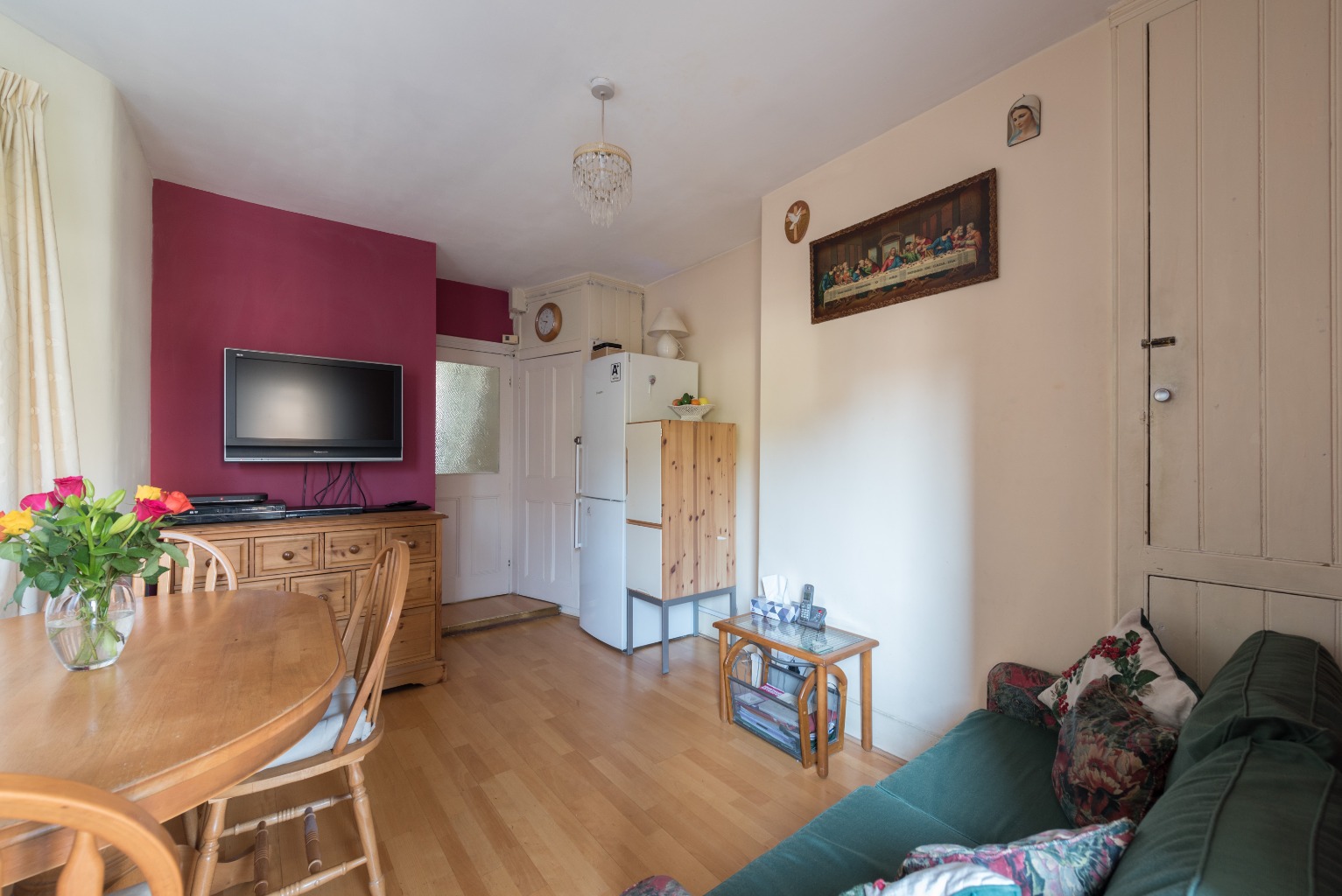 Back out in the hallway and take a right, and you'll see a handy under-stair storage cupboard for your vacuum cleaner and general clutter, and a door leading into the well-proportioned dining room, with another storage cupboard tucked just behind – plus a further cupboard to the rear of the space.