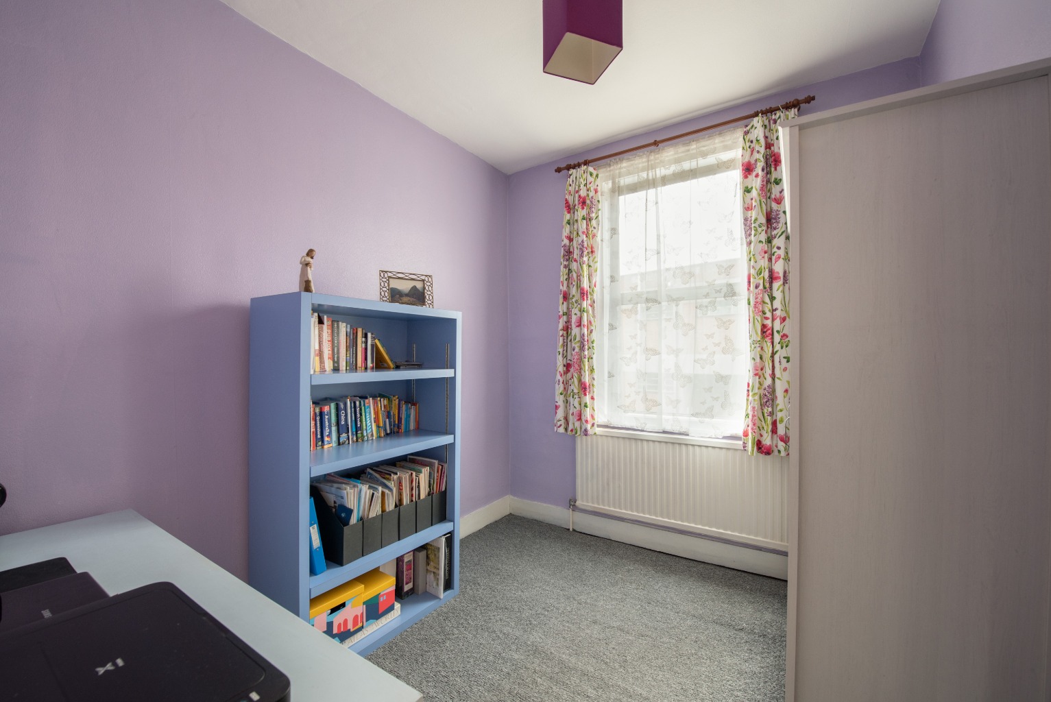 Back into the house and up the grey carpeted stairs, directly ahead of you sits the smallest of the three bedrooms currently painted in a relaxing lilac colour – but when we say smallest, you’ll be surprised at the great dimensions it actually offers. It’s the perfect size for a nursery for the growing family, or it would make a good kid’s or guest room... or a fantastic home office space or even hobby room – your house, your choice!