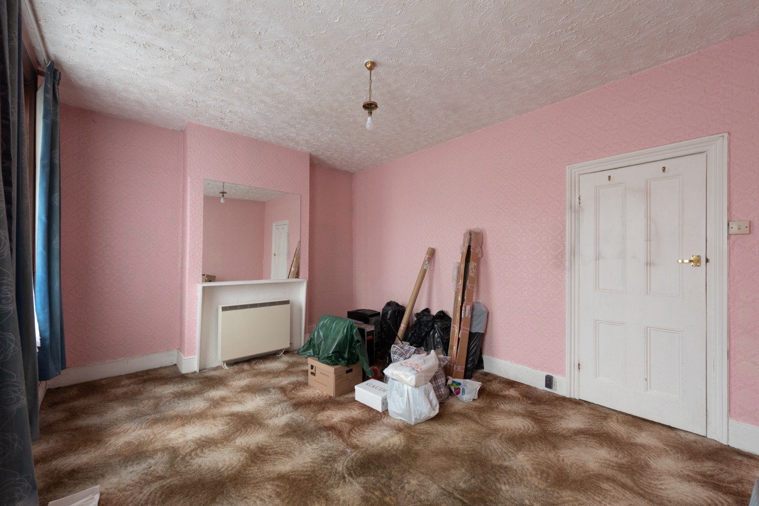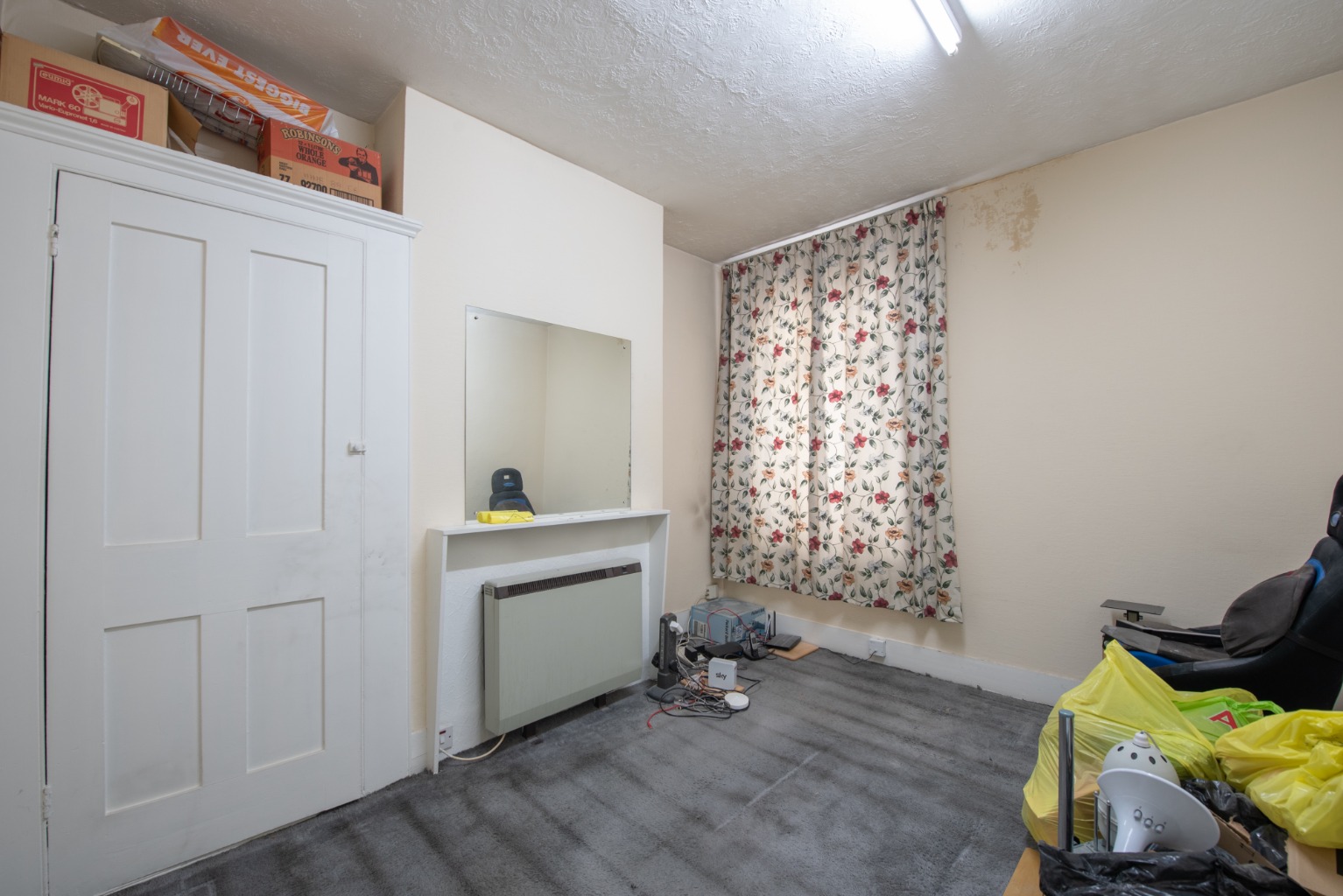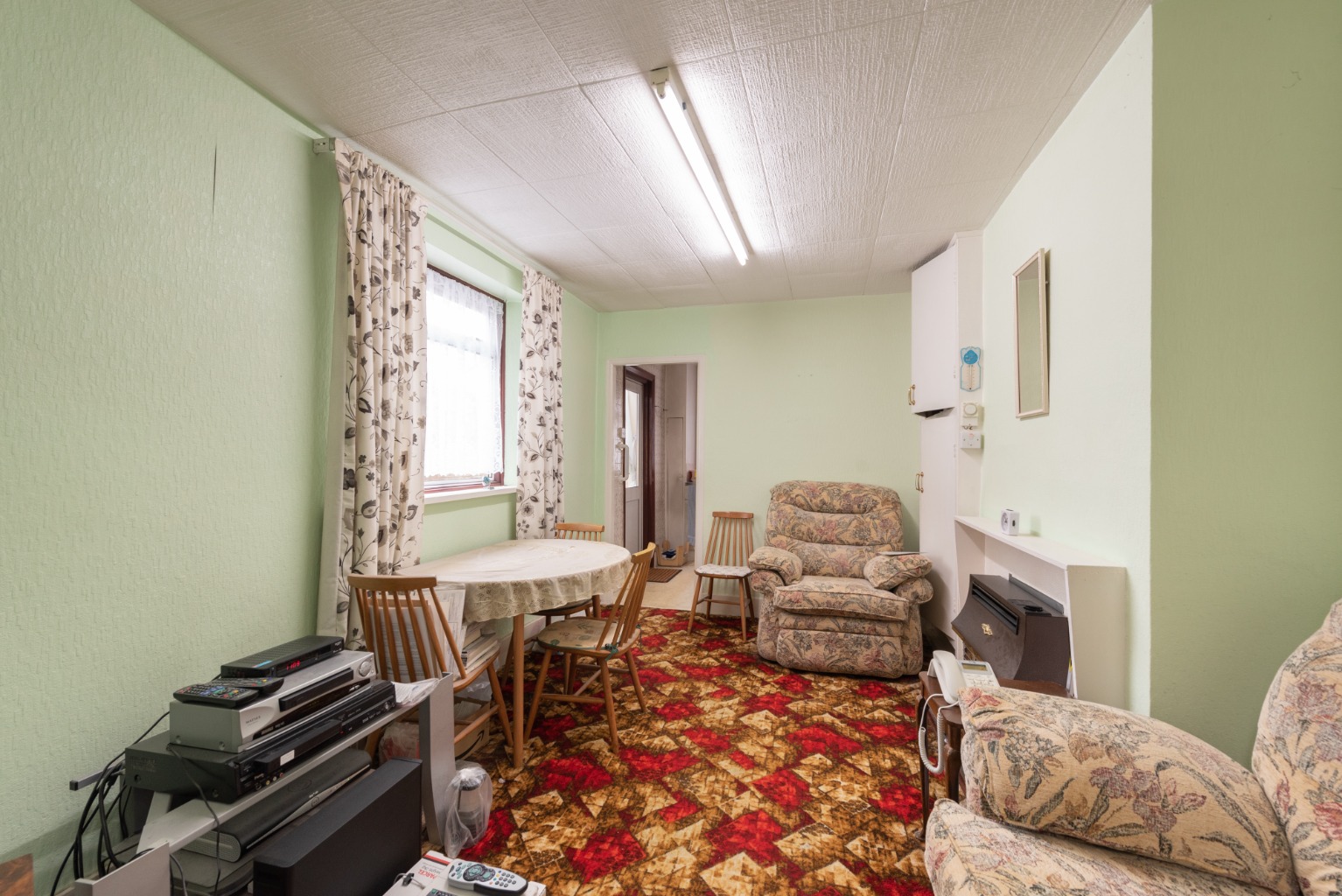 As we return to the hallway, on the right you’ll note access down to the useful cellar – before entering, straight ahead, into the next reception room. Being next to the kitchen, this would make an ideal dining room… or as part of a more extensive refurbishment, could be incorporated with the kitchen to form a spectacular kitchen/diner/family room with access to the garden. There’s a large built-in cupboard set in an alcove and a large window facing out to the side-return area of the rear garden. It really must be viewed to appreciate the potential.