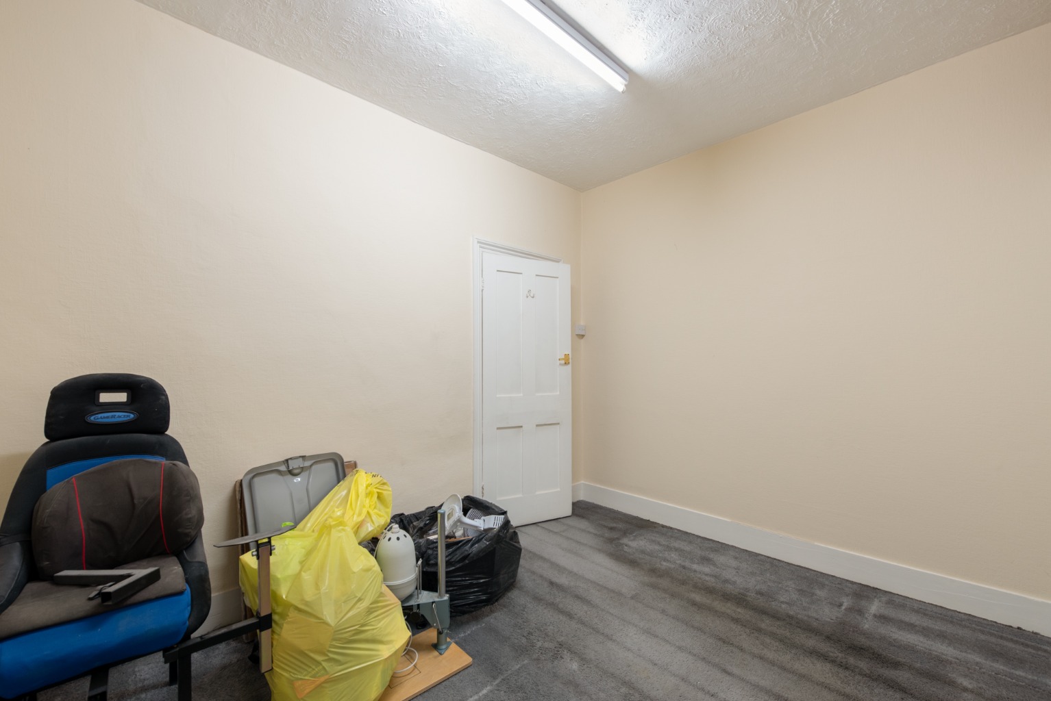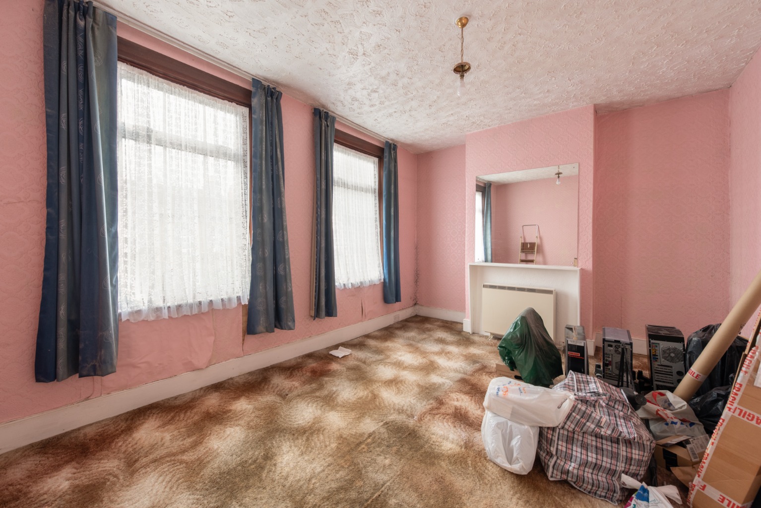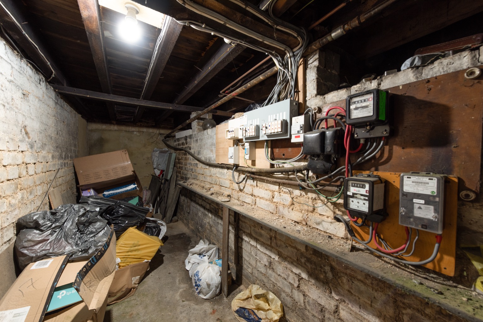 As we return to the hallway, on the right you’ll note access down to the useful cellar – before entering, straight ahead, into the next reception room. Being next to the kitchen, this would make an ideal dining room… or as part of a more extensive refurbishment, could be incorporated with the kitchen to form a spectacular kitchen/diner/family room with access to the garden. There’s a large built-in cupboard set in an alcove and a large window facing out to the side-return area of the rear garden. It really must be viewed to appreciate the potential.